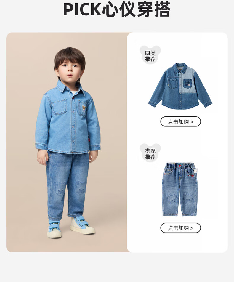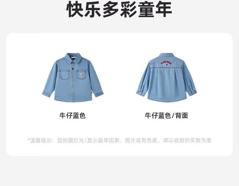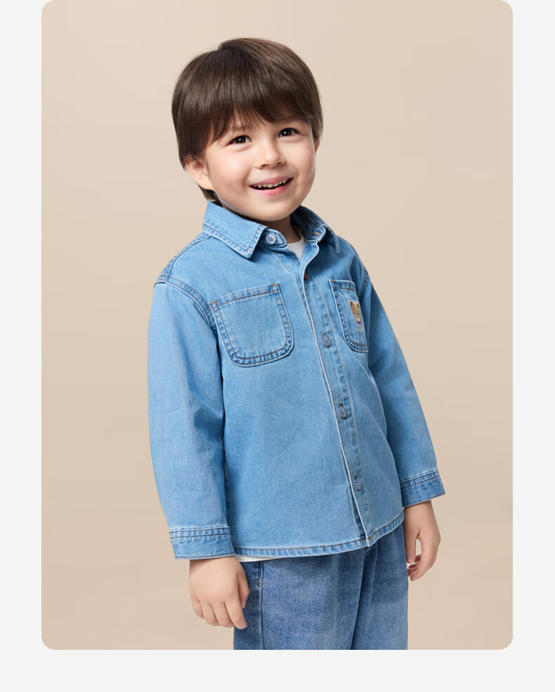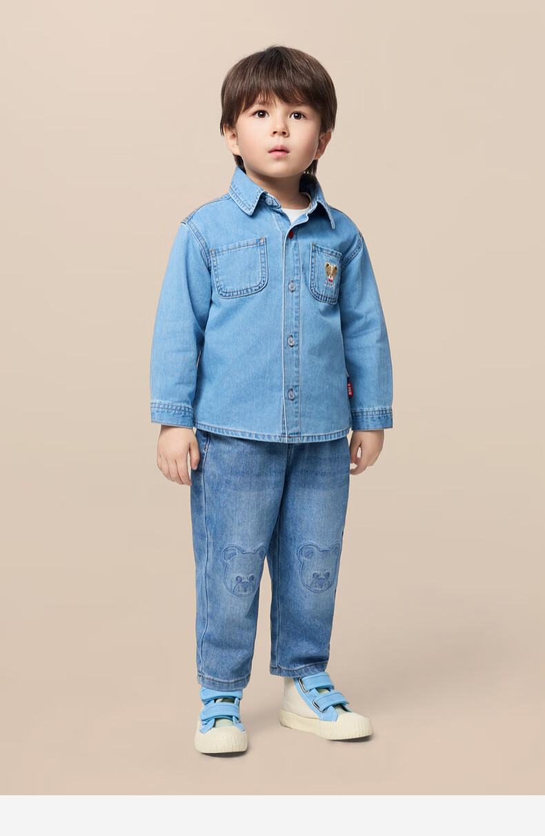 PawinPaw Cartoon Bear Children's Clothing 25th Autumn New Boy Denim Shirt Indigo Denim Blue/55 90