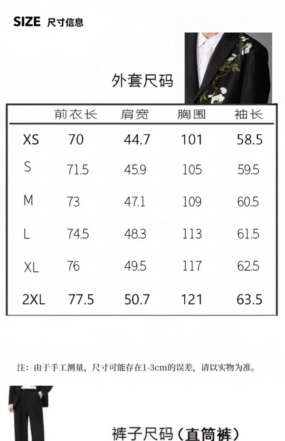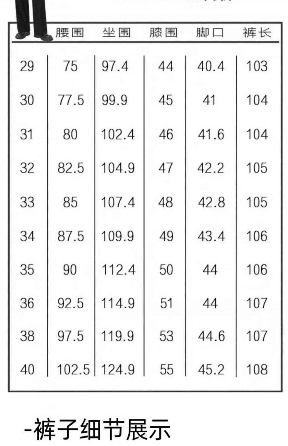 Outseam (cm) 99 cm 101.5 cm 104 cm 106.5 cm 109 cm