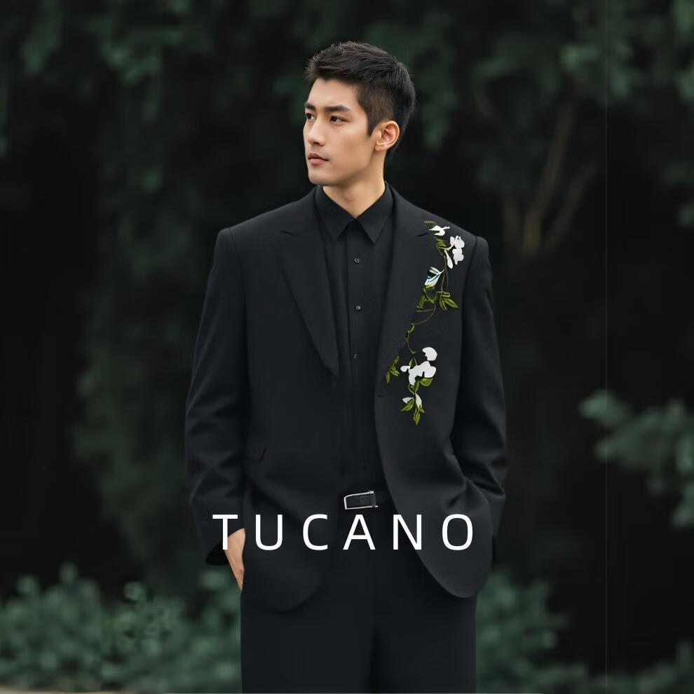 Woodpecker New Chinese Suit Camellia Embroidery Loose Chinese Style Men's Handsome Jacket Wedding Suit Obsidian Black Jacket XL