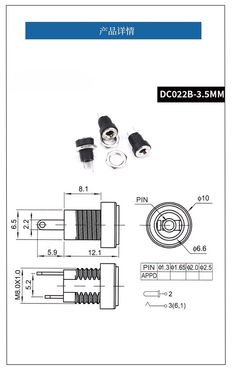 DC socket DC female socket DC-022B power socket dc022b 5.5*2.1/3.5*1.3 optional DC-022B 5.5*2.1mm (5 pieces)