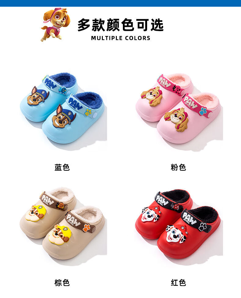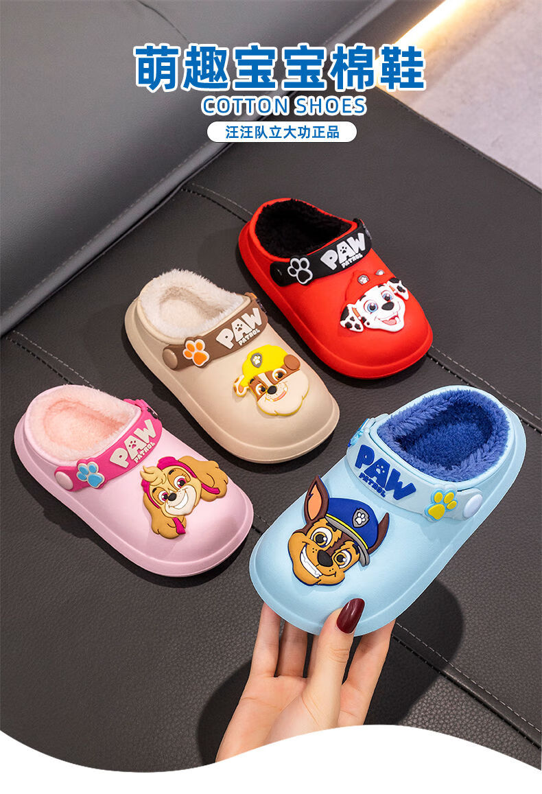 PAW PATROL PAW PATROL children's cotton slippers baby non-slip warm plus velvet winter indoor waterproof men's cute cotton shoes sky blue Archie 4476 16 inner length 16.0cm 160 size suitable for feet 15cm long