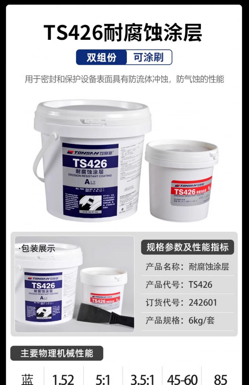 Kesaixin ts226228 wear-resistant coating silicon carbide metal anti-rust protective agent pipeline trachhole repair granular glue ts426 6kg package