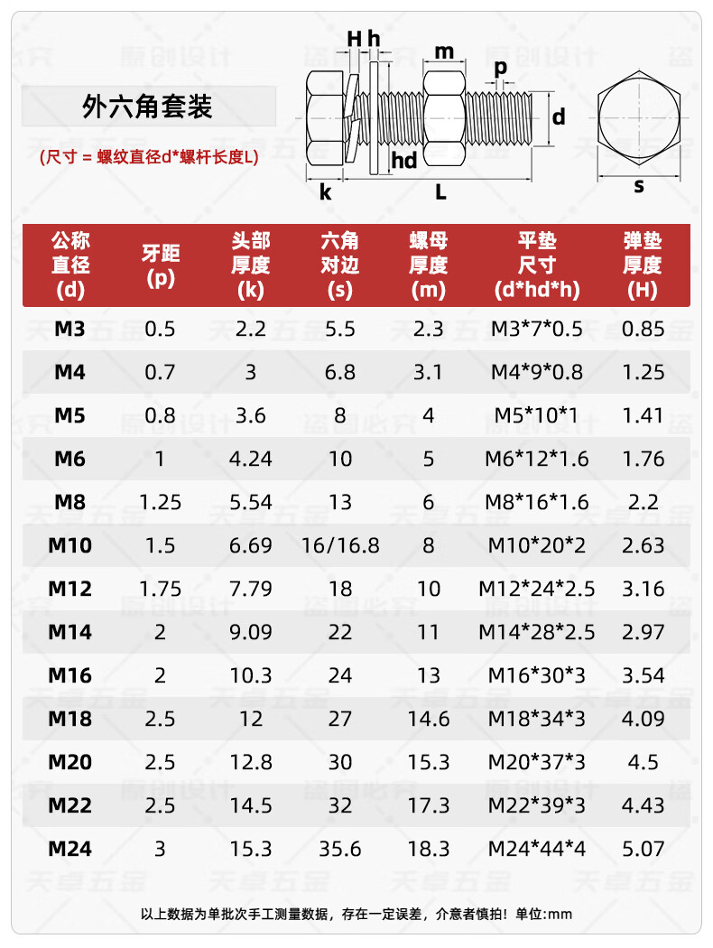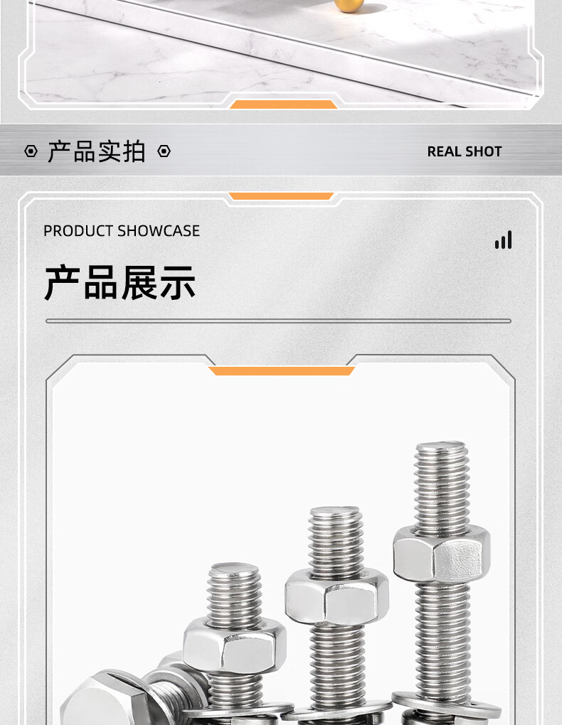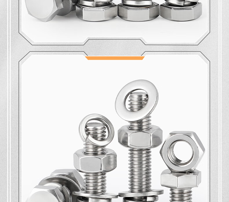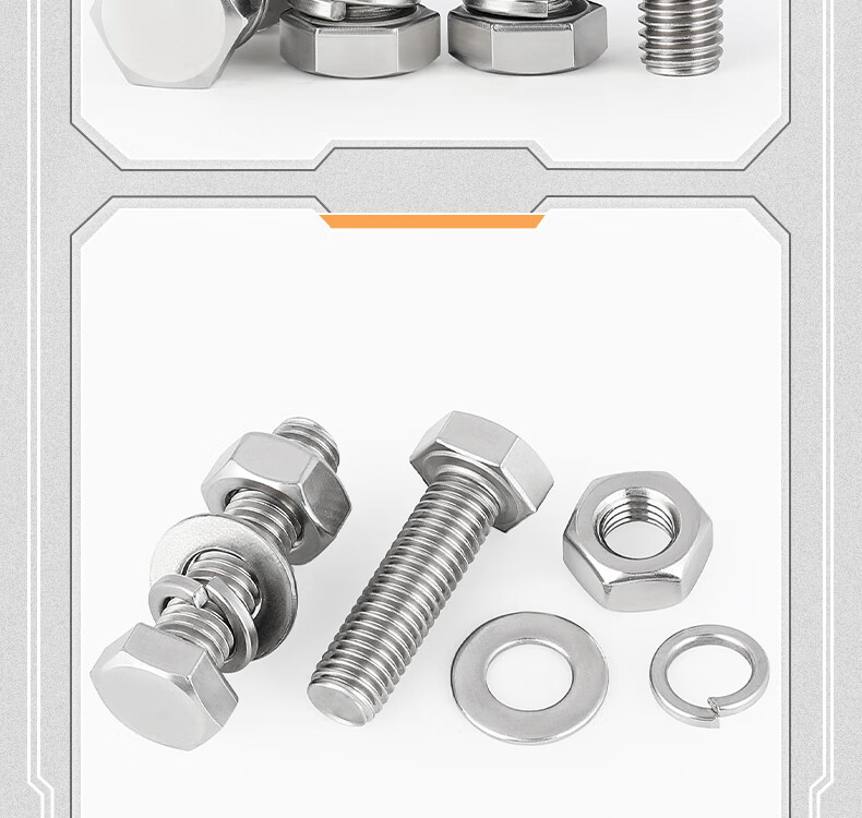 Tianzhuo Hardware 316L stainless steel external hexagonal bolts, screws and nuts set complete flat spring washer combination M6-M20 M16*70-1 set