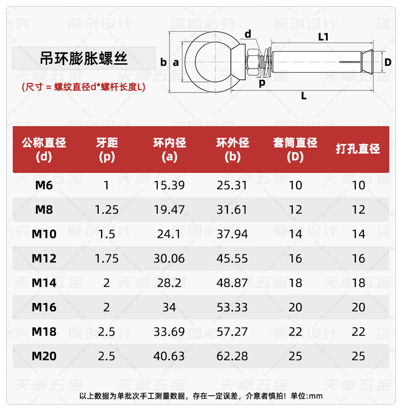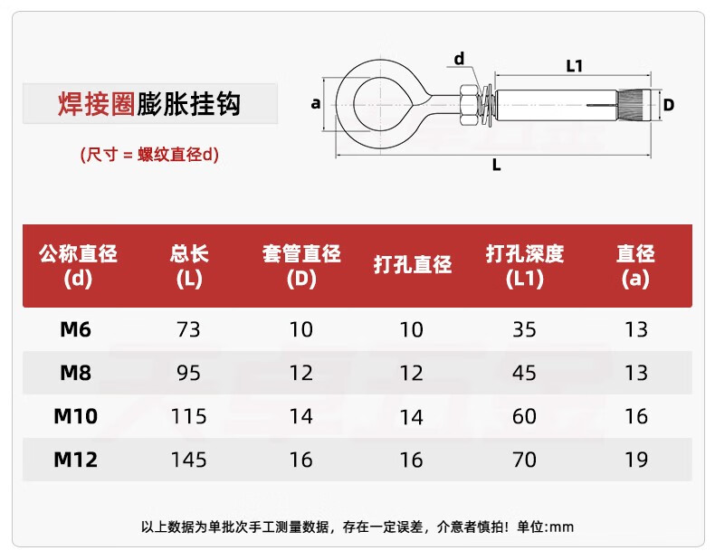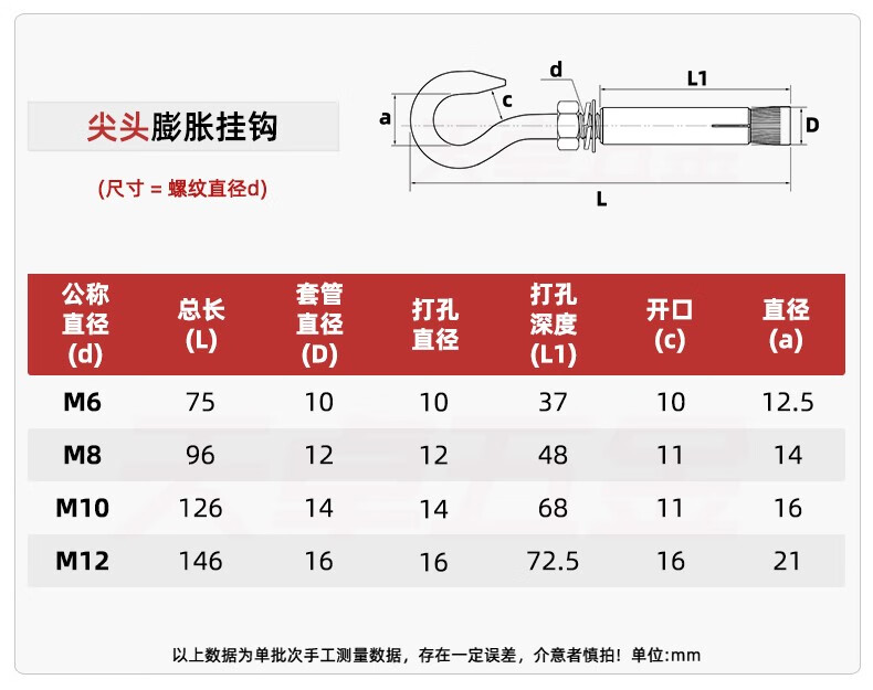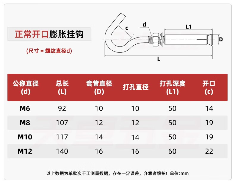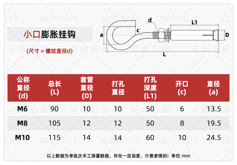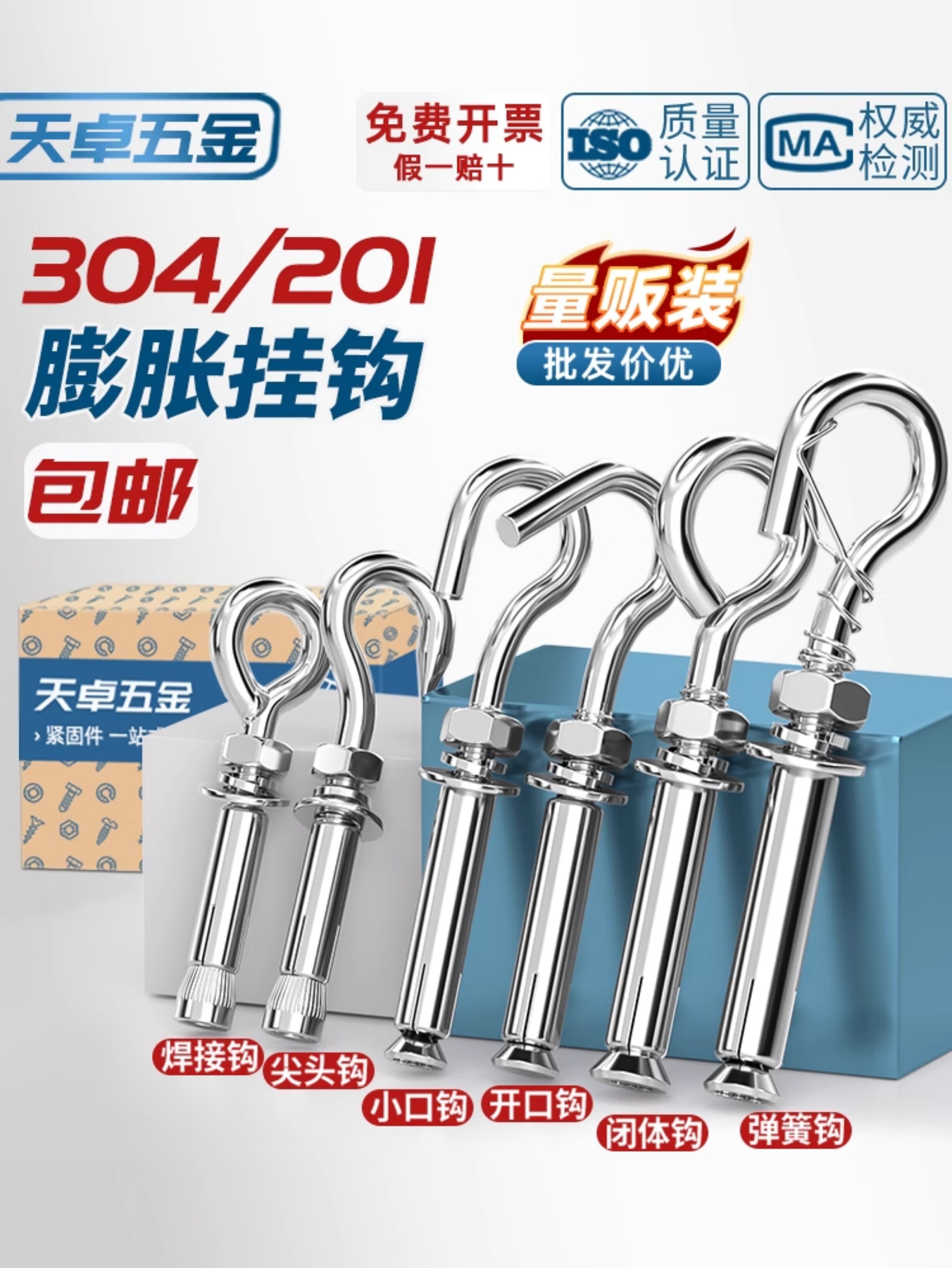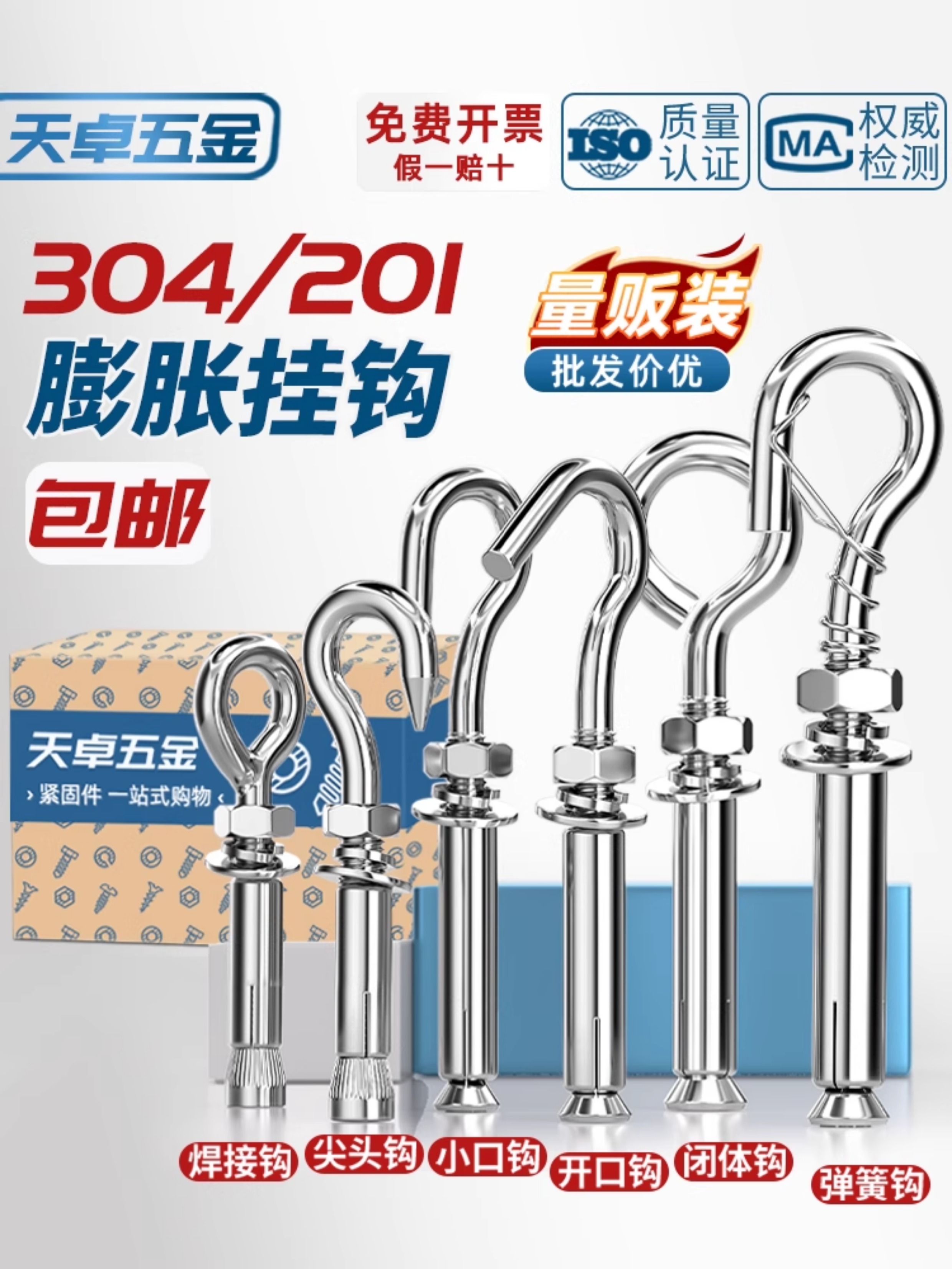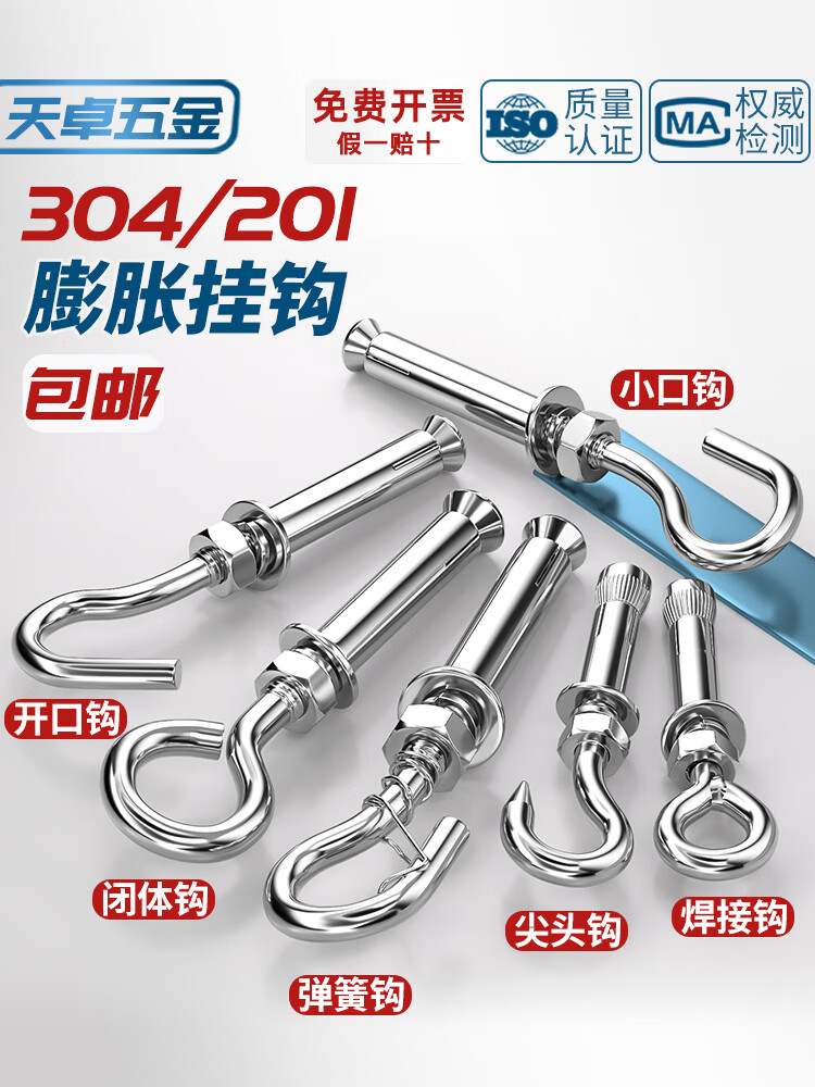 Tianzhuo Hardware 304/201 stainless steel expansion screw hook, hook, ring, pull-explosion bolt M10 M6 normal opening 304 material 8 pcs
