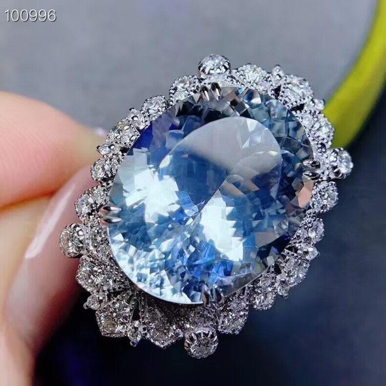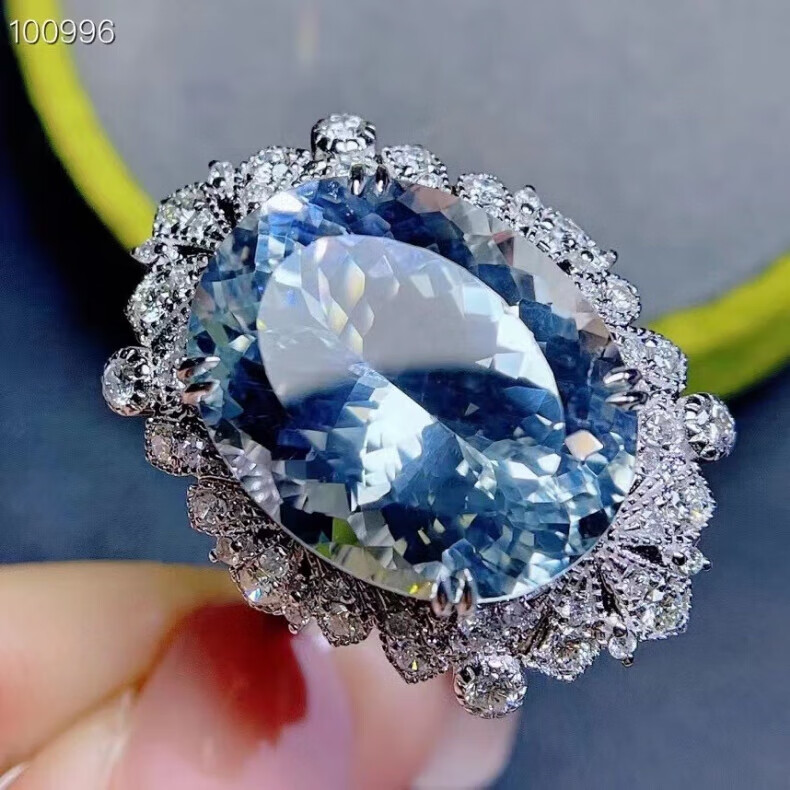 HEEKAIYI Aquamarine Ring Women's 18k Gold Diamond Ring Chinese Valentine's Day Birthday Gift for Wife and Girlfriend Selected 15 Carat/Santa Maria Color