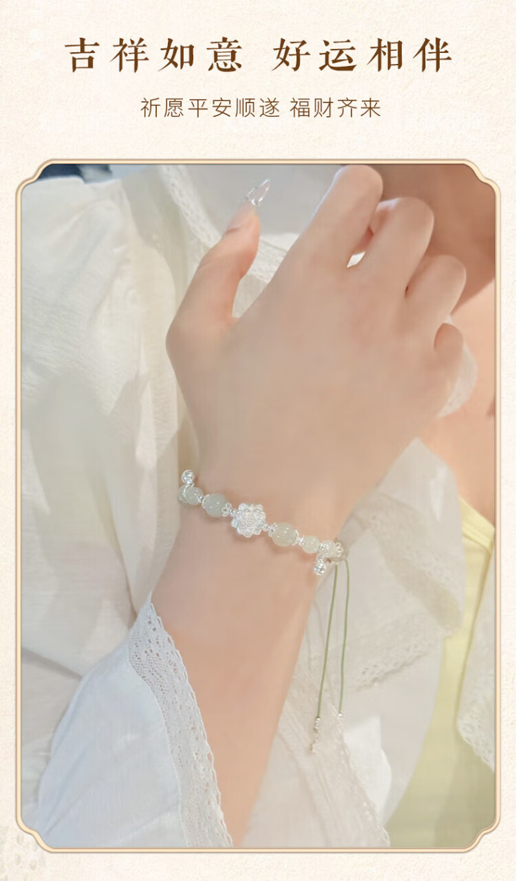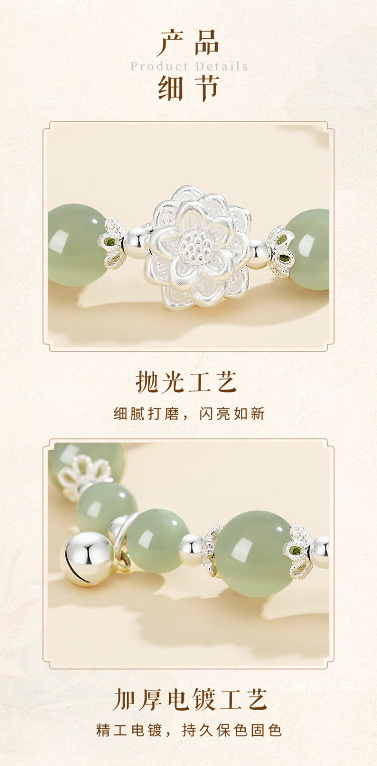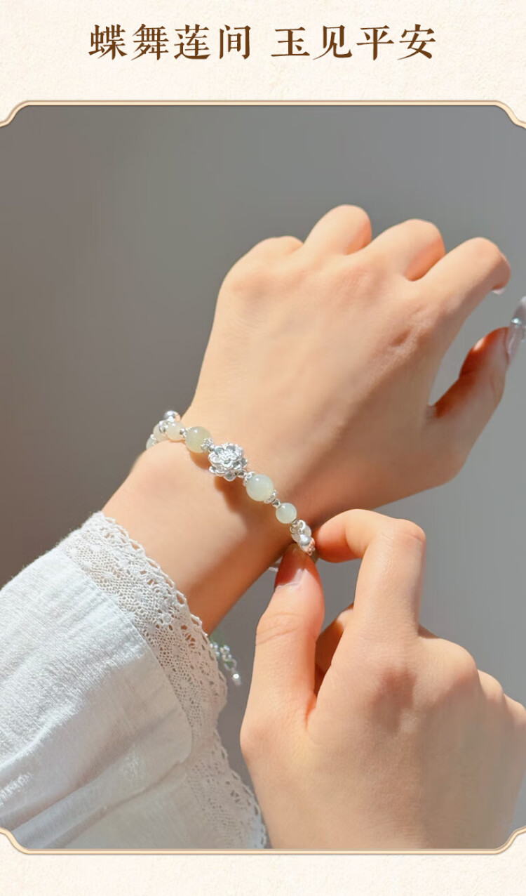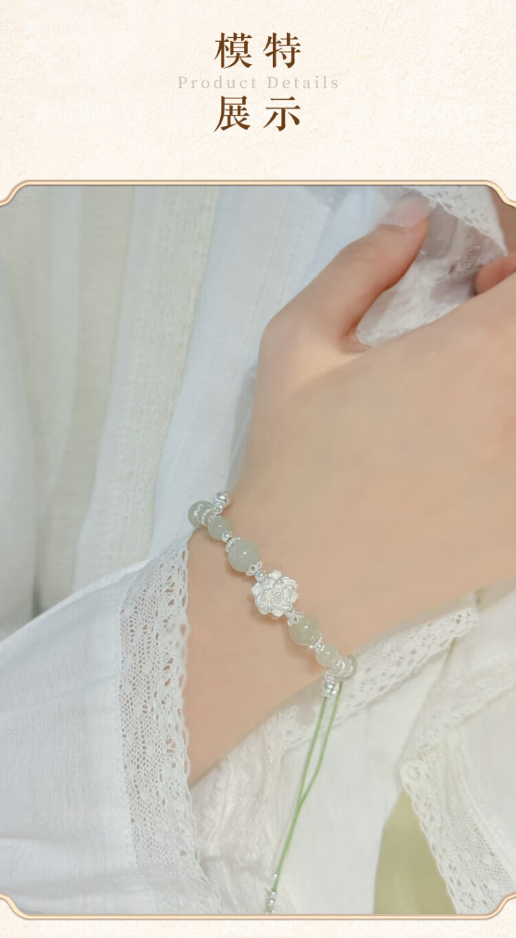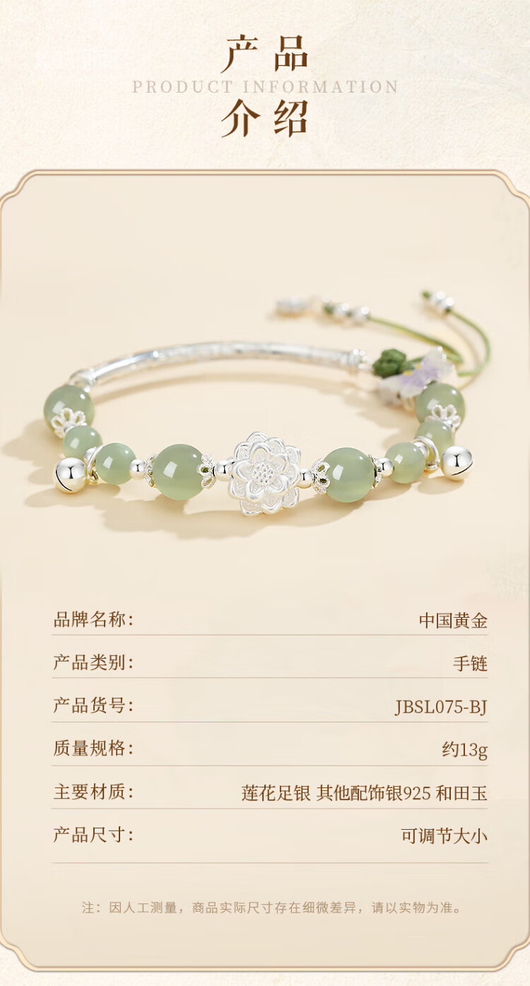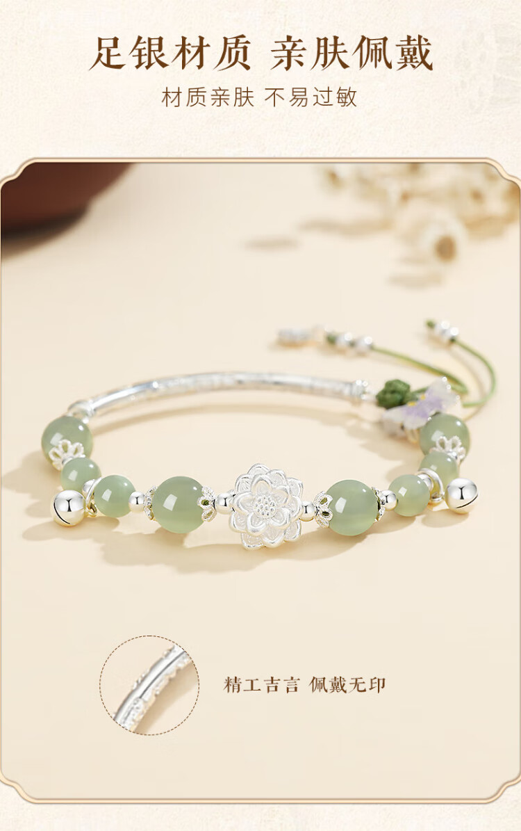 Chinese Gold Lotus Pure Silver 999 Silver Bracelet Pure Silver Bracelet Women's Hetian Jade Bracelet Birthday Gift for Girlfriend Good Luck Lotus Half Bracelet Medium Gold Gift Box Pure Silver Hetian Jade