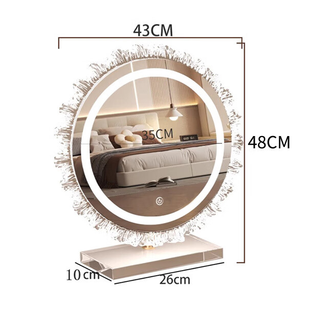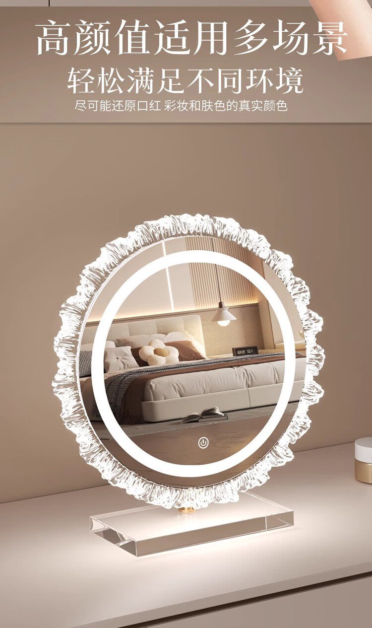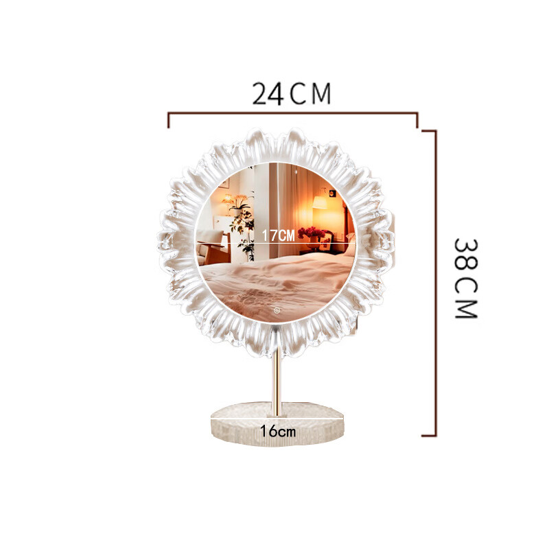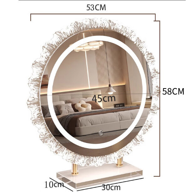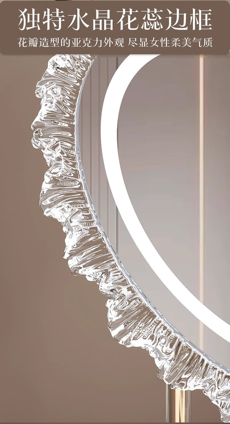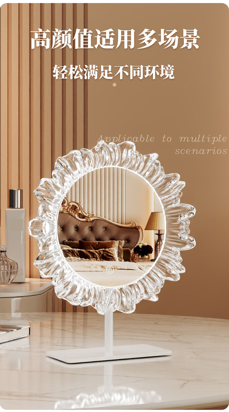 Crystal sunflower make-up mirror with light, glacier wave flower make-up mirror with front light, medium size, plug-in model 43*50CM, mirror available
