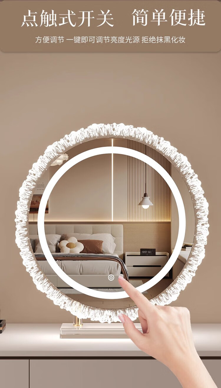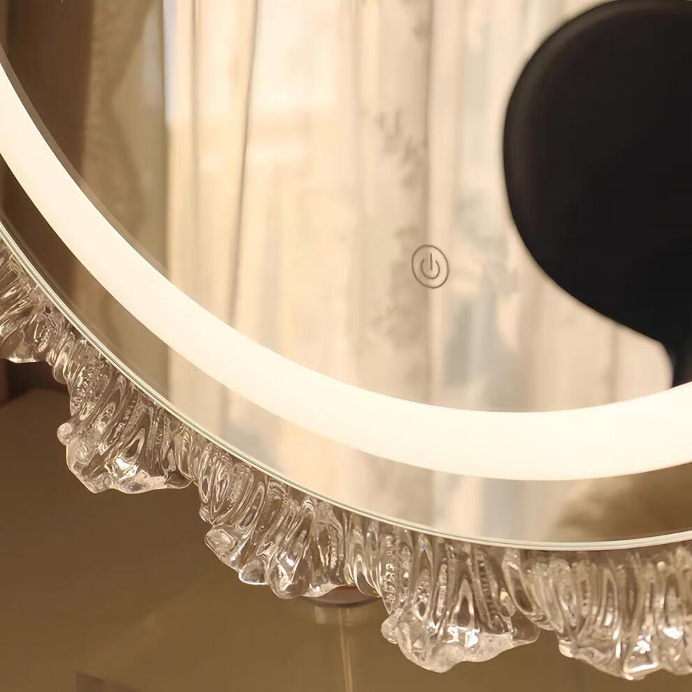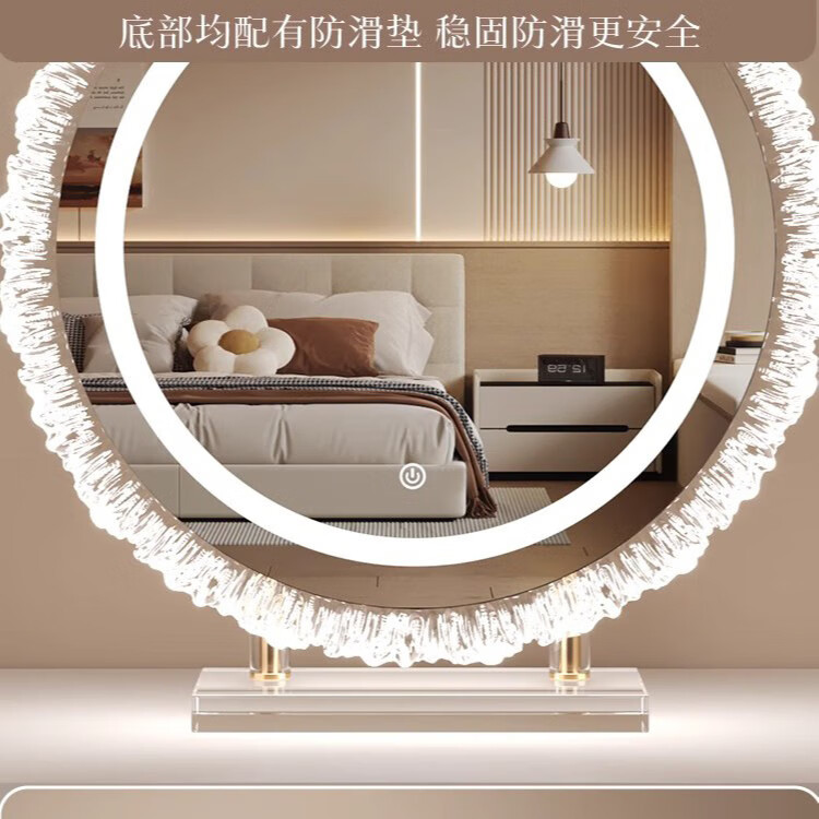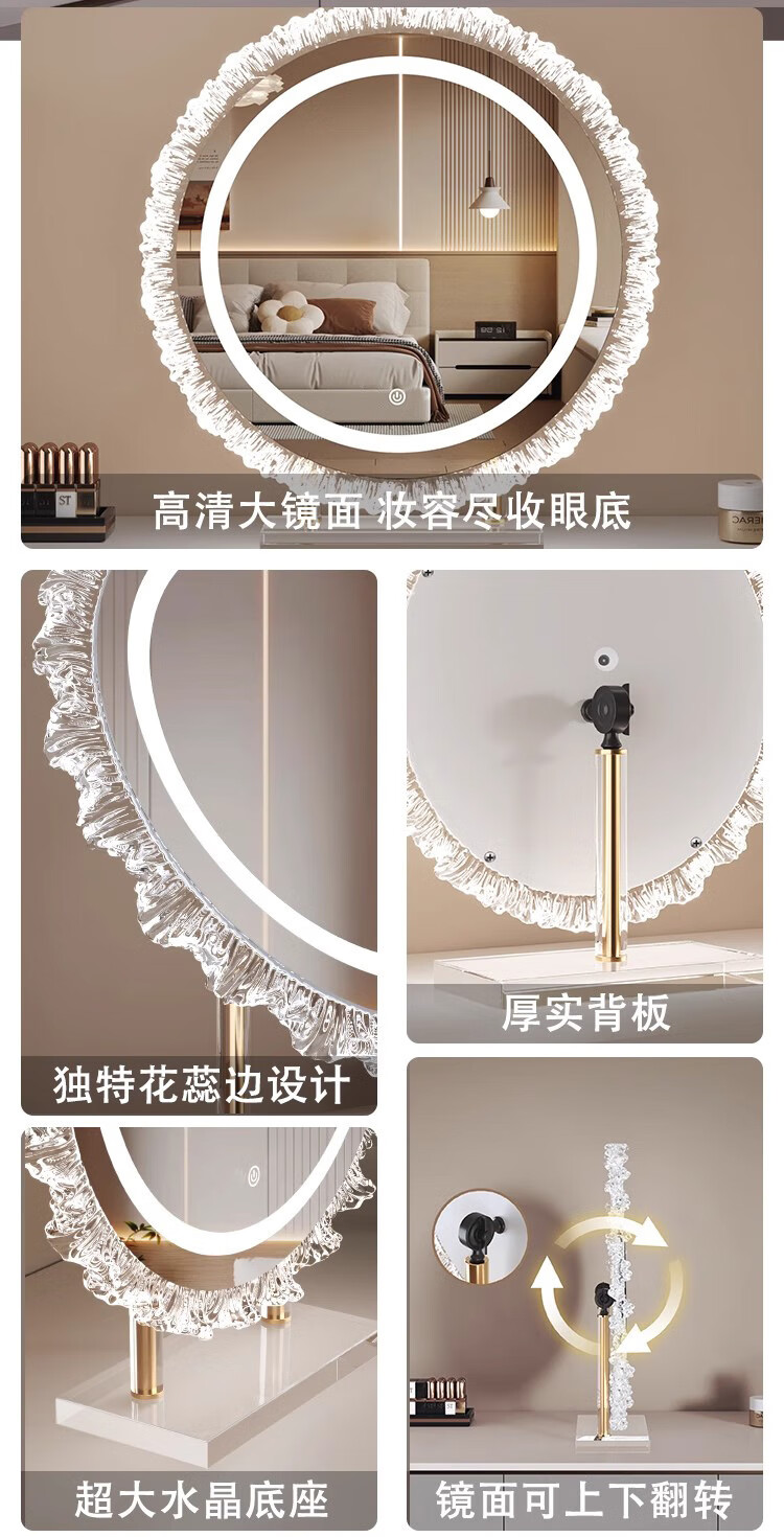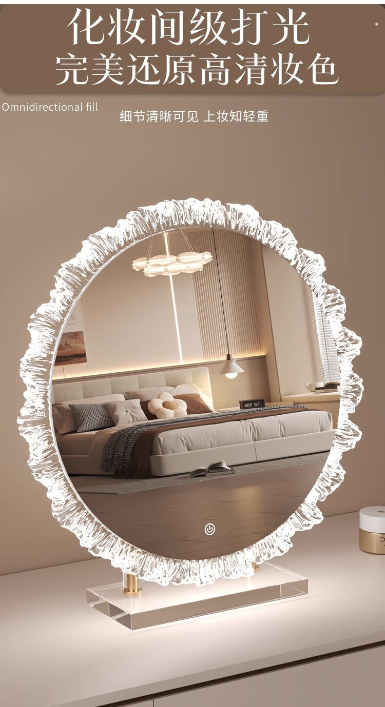 Crystal sunflower make-up mirror with light, glacier wave flower make-up mirror with front light, medium size, plug-in model 43*50CM, mirror available