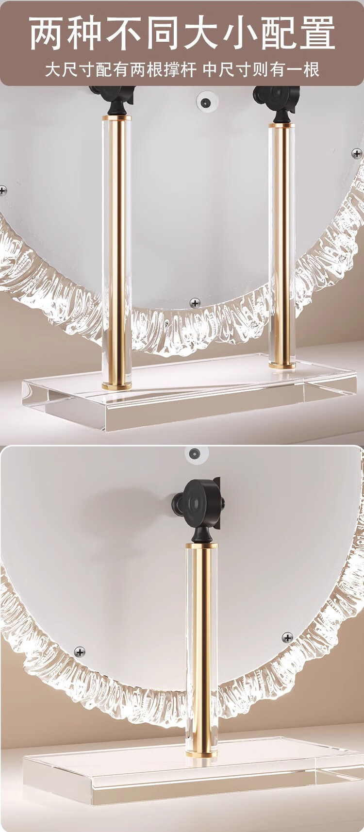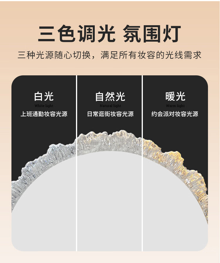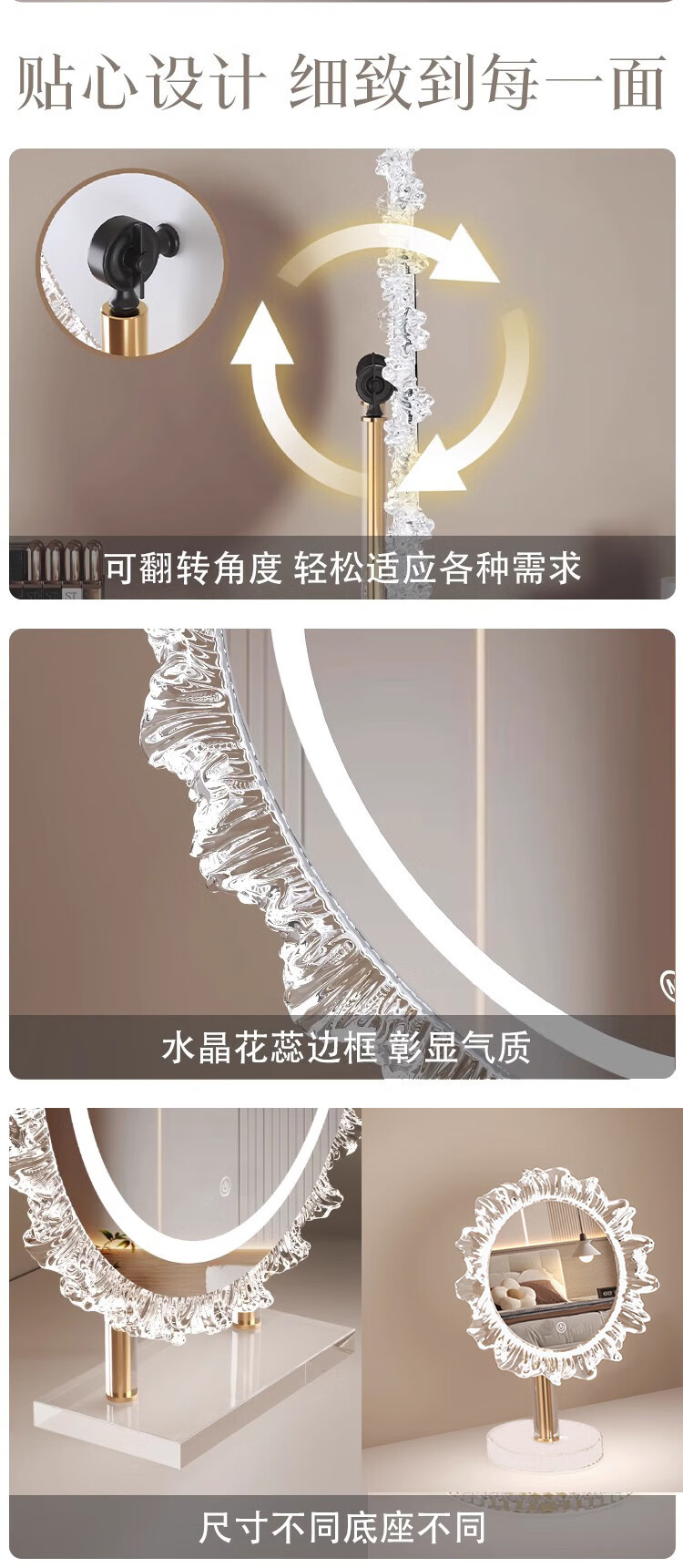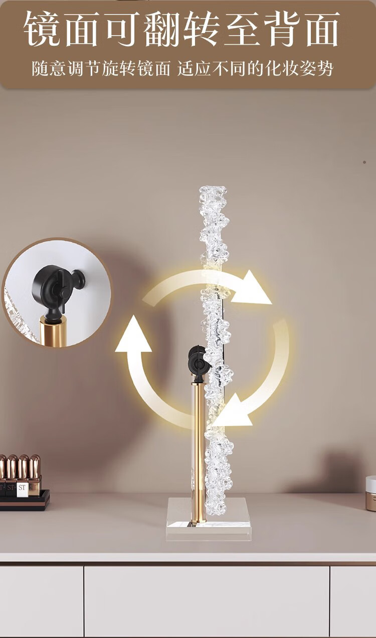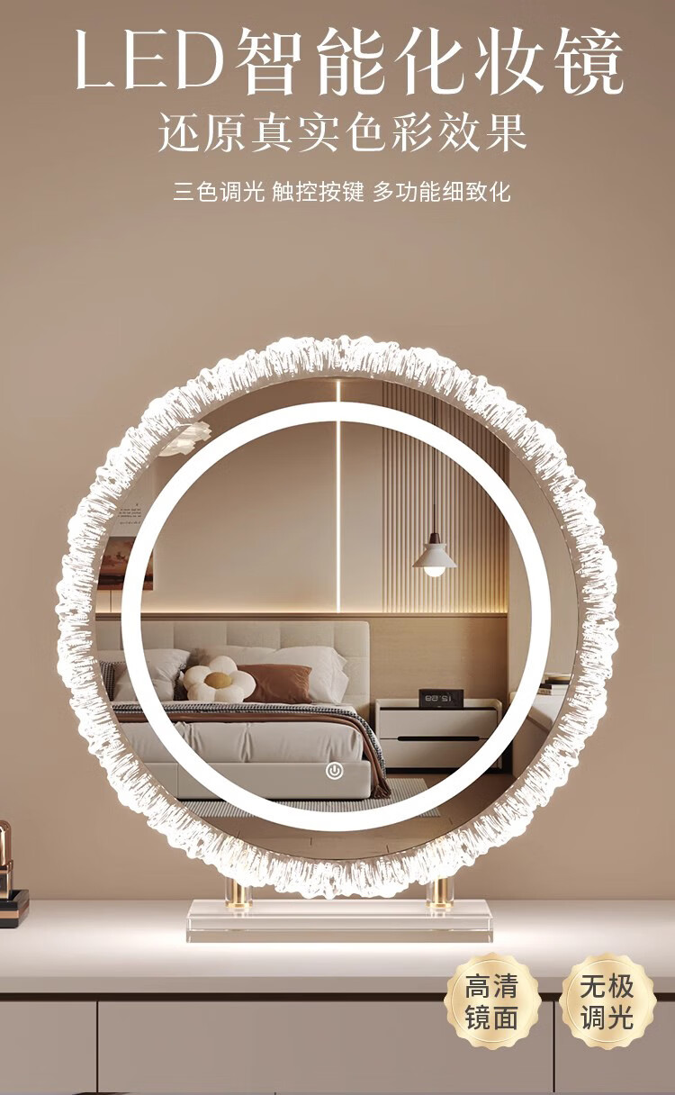 Crystal sunflower make-up mirror with light, glacier wave flower make-up mirror with front light, medium size, plug-in model 43*50CM, mirror available