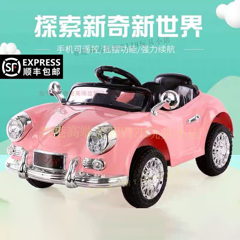 HTI children's electric car remote control car four-wheel car charging toy car can sit a child remote control stroller princess car pink