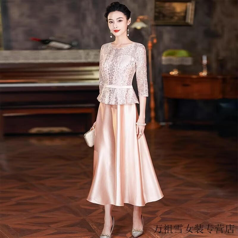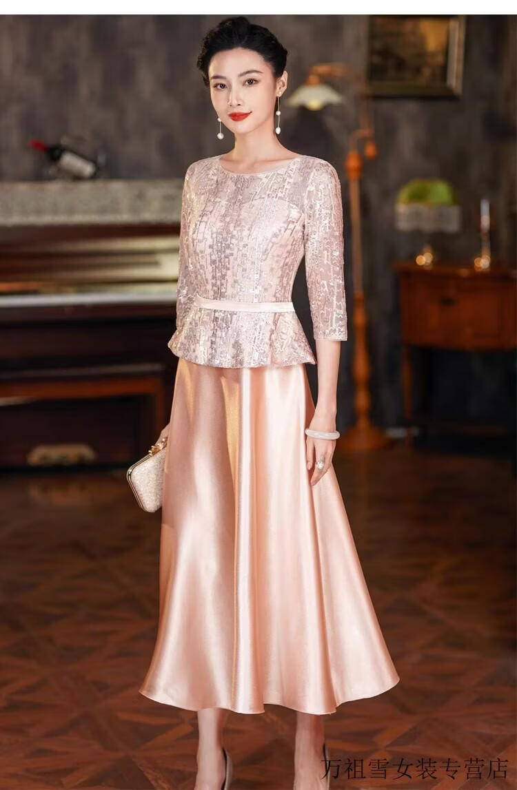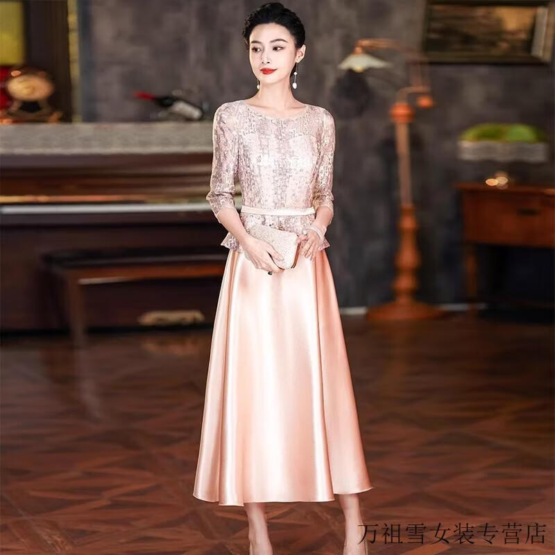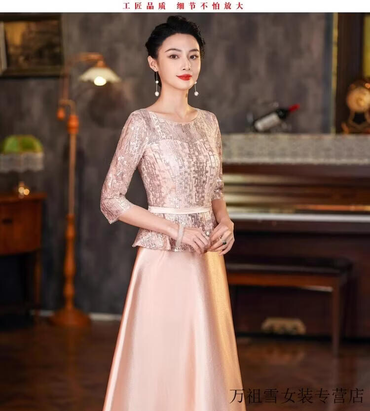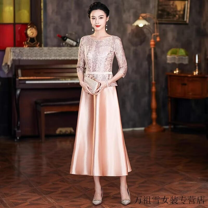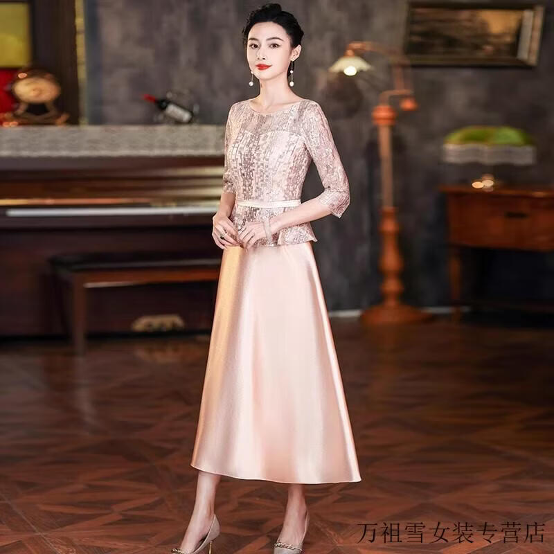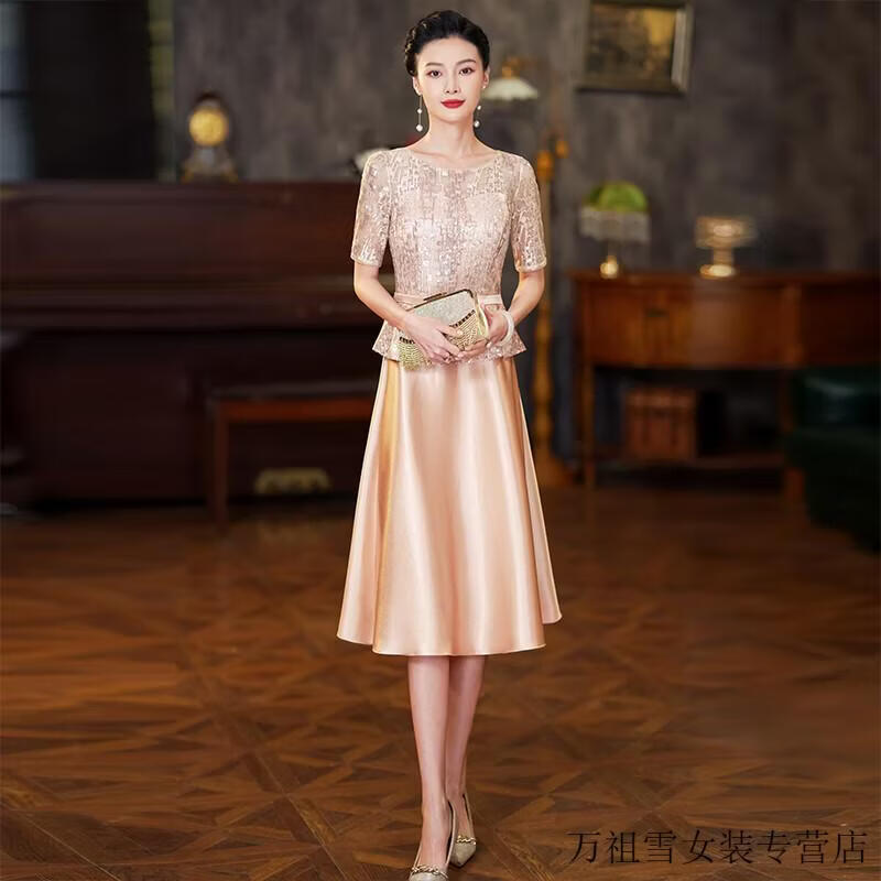 Hengyuanxiang champagne color happy mother-in-law wedding banquet dress 2025 summer new retro wedding noble young mother high-end dress champagne color M