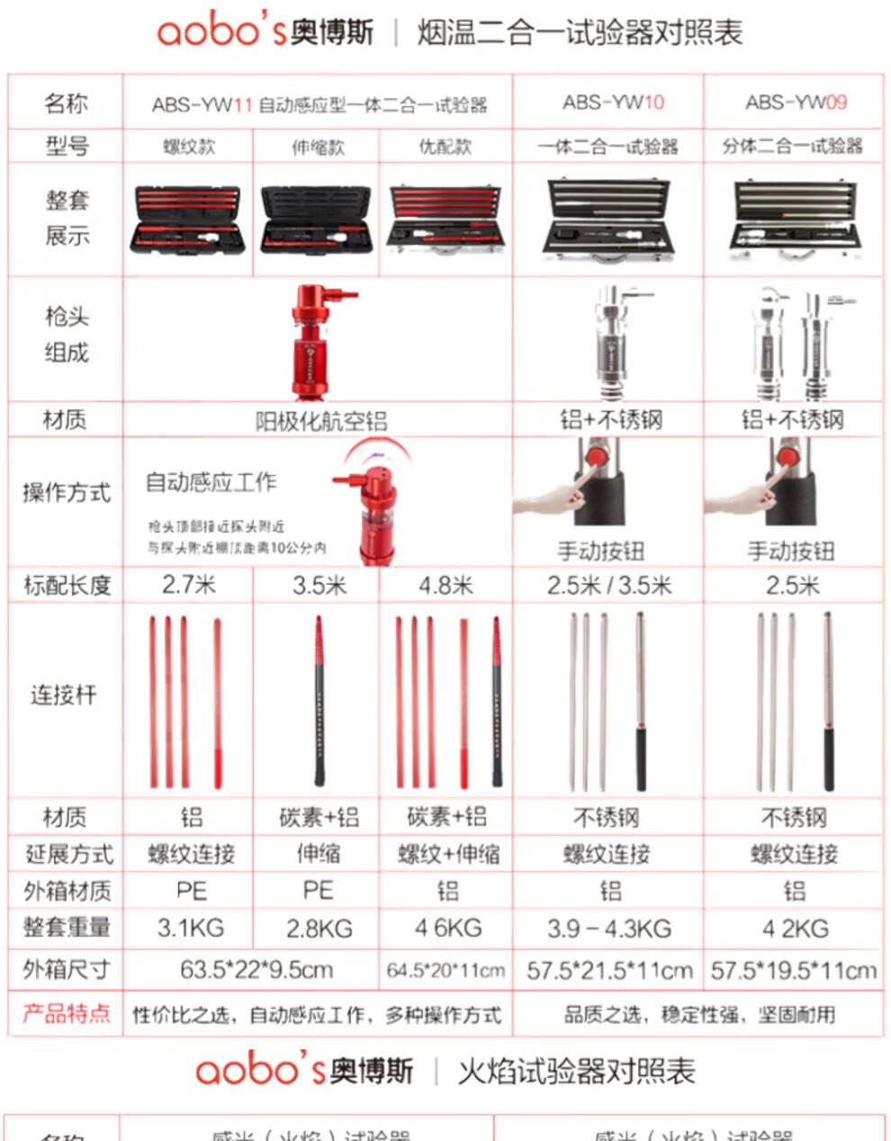 Aobos fire smoke gun detects fire smoke and temperature two-in-one electronic smoke detector maintenance ABS-Q02 all-in-one four-in-one no open flame 2.5 meters four-in-one
