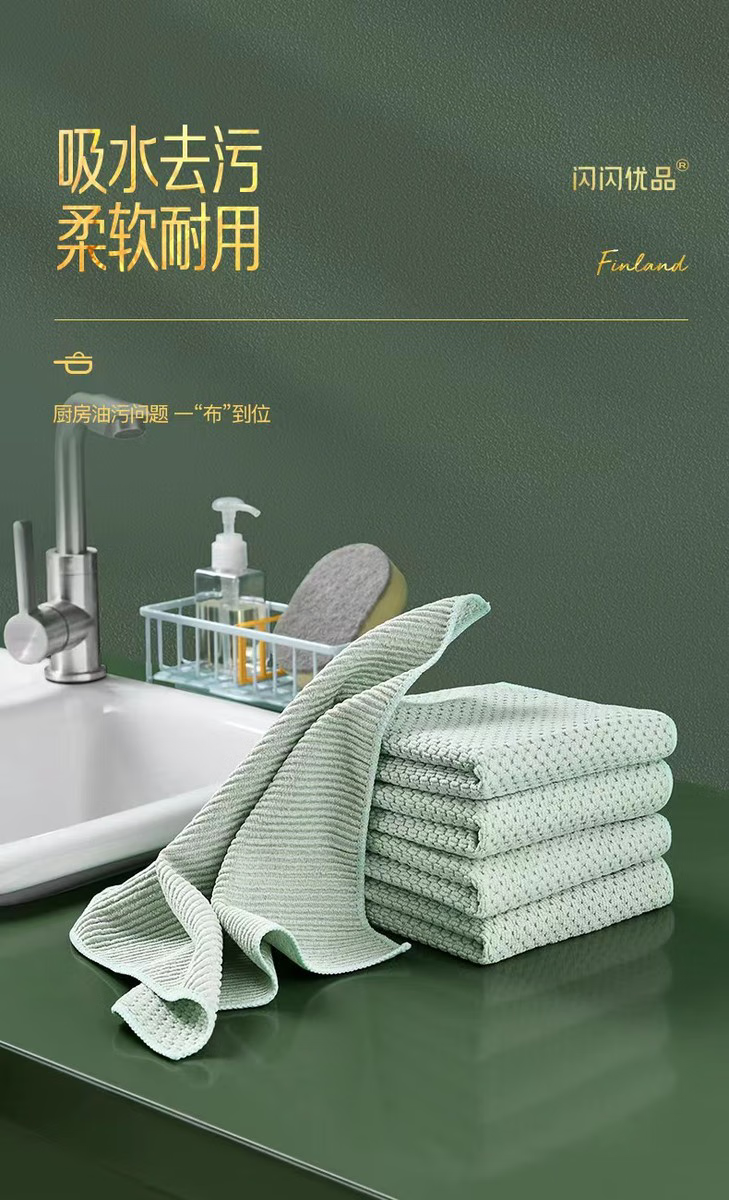 Shiny high-quality kitchen rags, non-stick, oil-absorbent, strong housekeeping cleaning cloths, table towels, fish scales, dishwashing cloths, thickened, waffle gray rags, 5 pieces