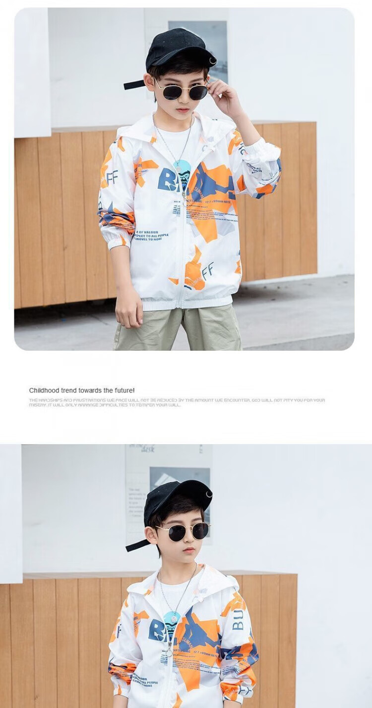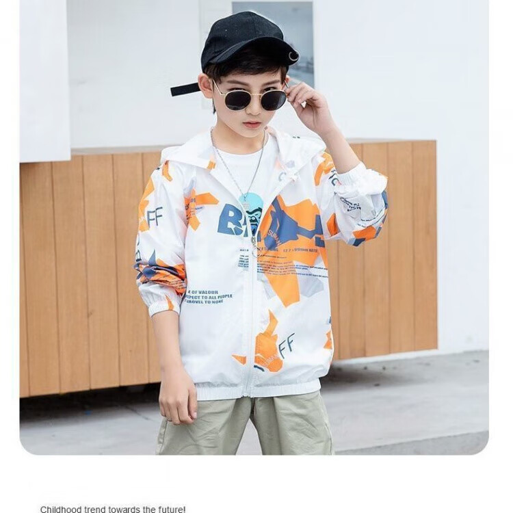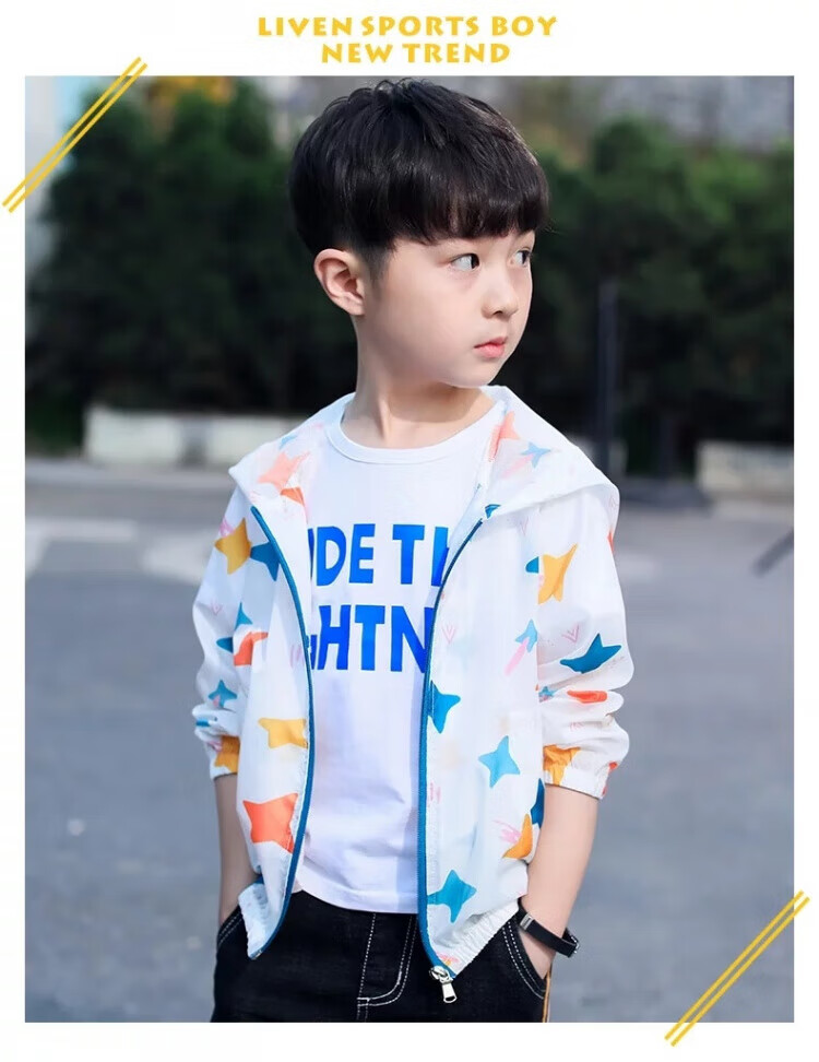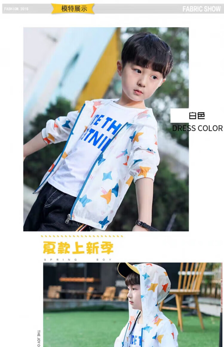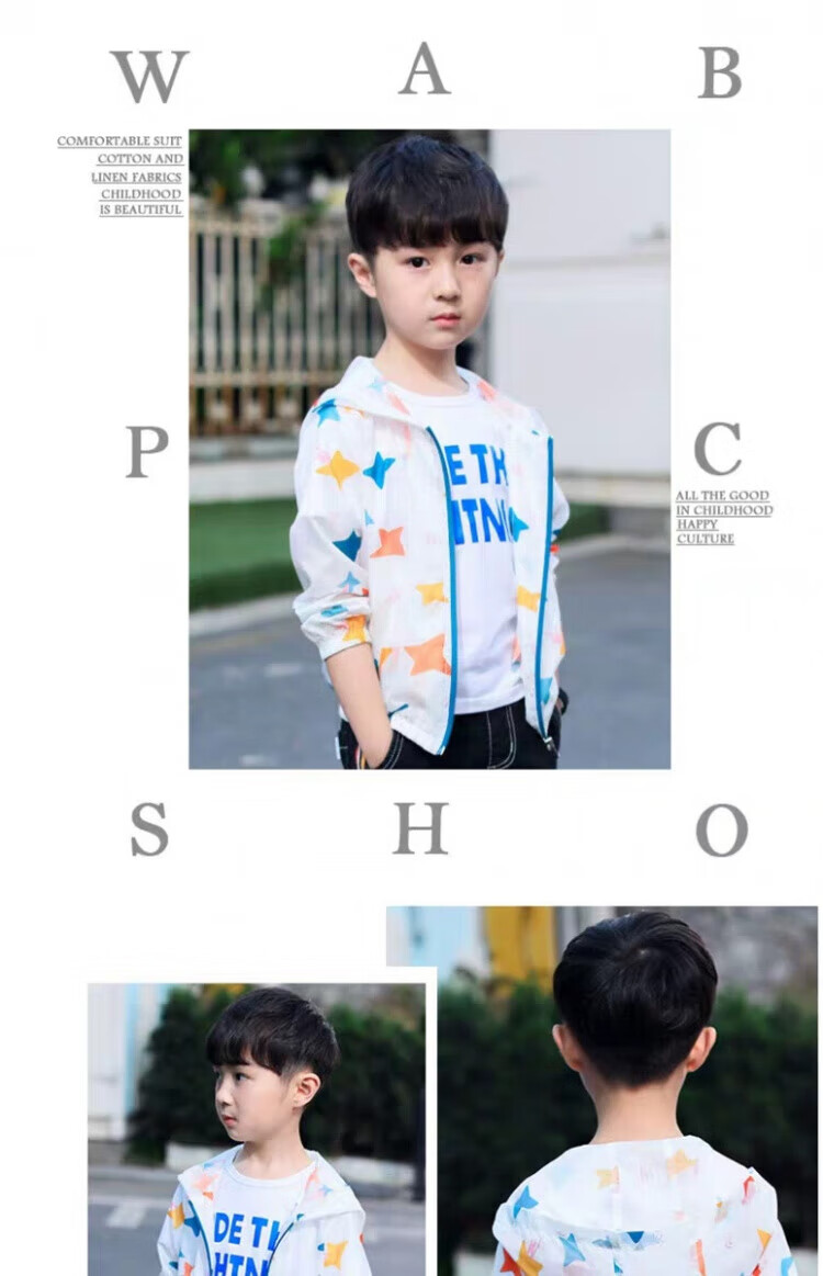 Ouhuangxiong children's sun protection clothing, children's summer clothing, new children's clothing, breathable skin clothing, air-conditioning clothing for middle and large children, orange five-pointed star 150, height 140~150cm