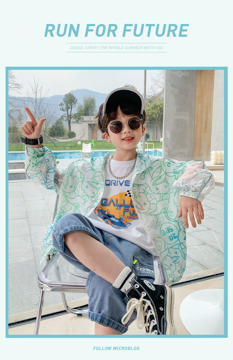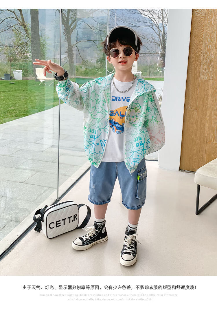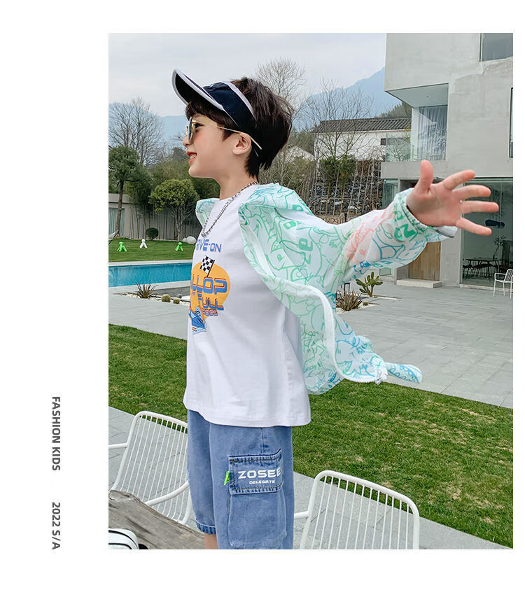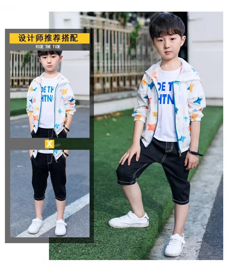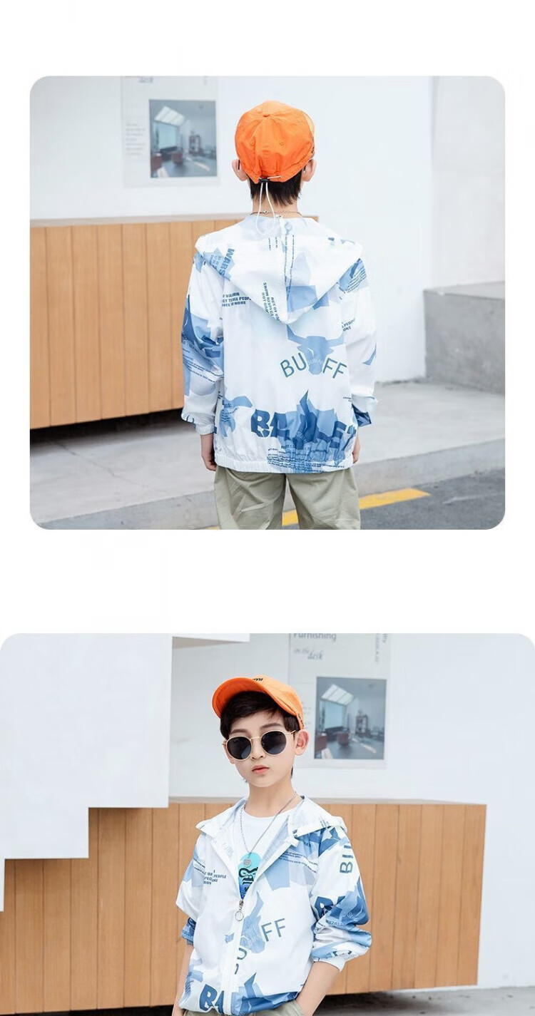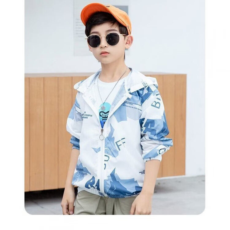 Ouhuangxiong children's sun protection clothing, children's summer clothing, new children's clothing, breathable skin clothing, air-conditioning clothing for middle and large children, orange five-pointed star 150, height 140~150cm