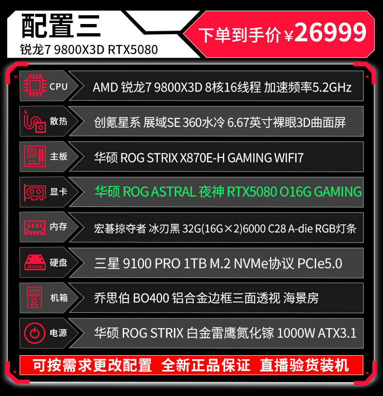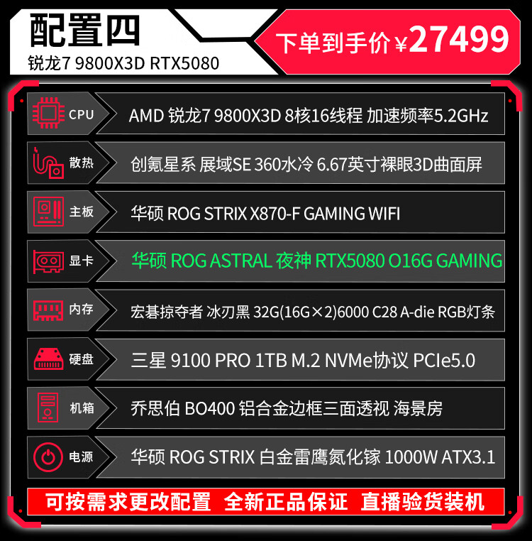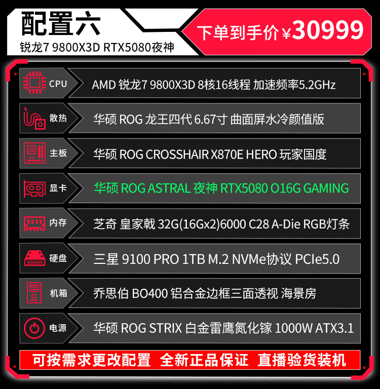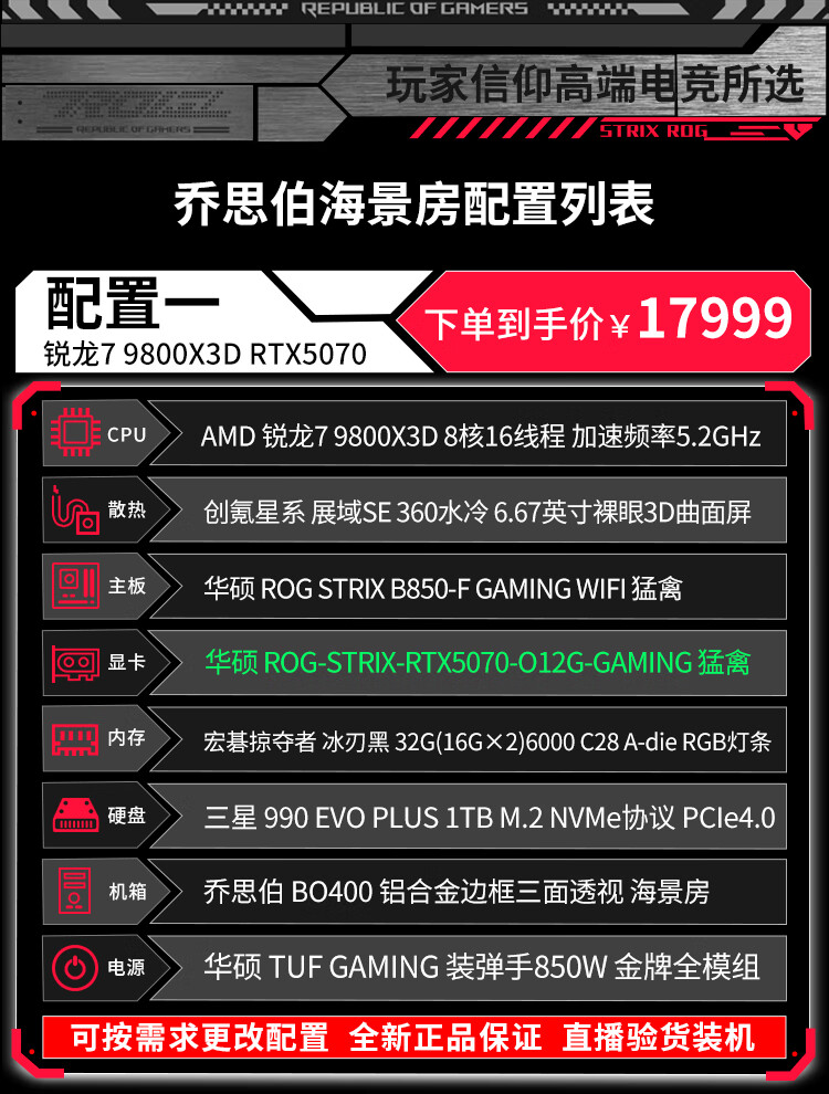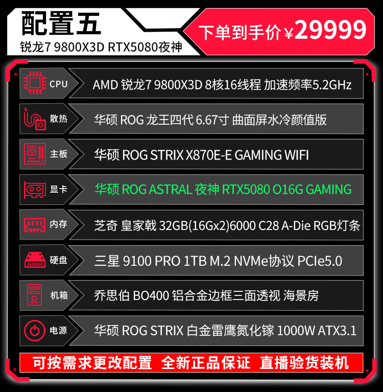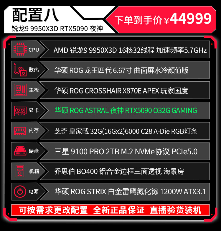 ASUS 5080 5090 Night God 5070 Raptor thousand frame e-sports game live broadcast DIY assembly computer 9950X3D 9800X3D Qiao Sibo BO400 sea view room host seven R9 9950X3D+RTX5090 Night God