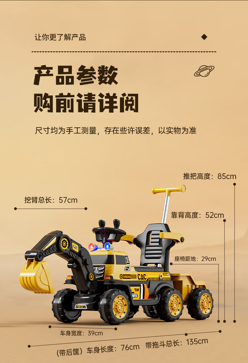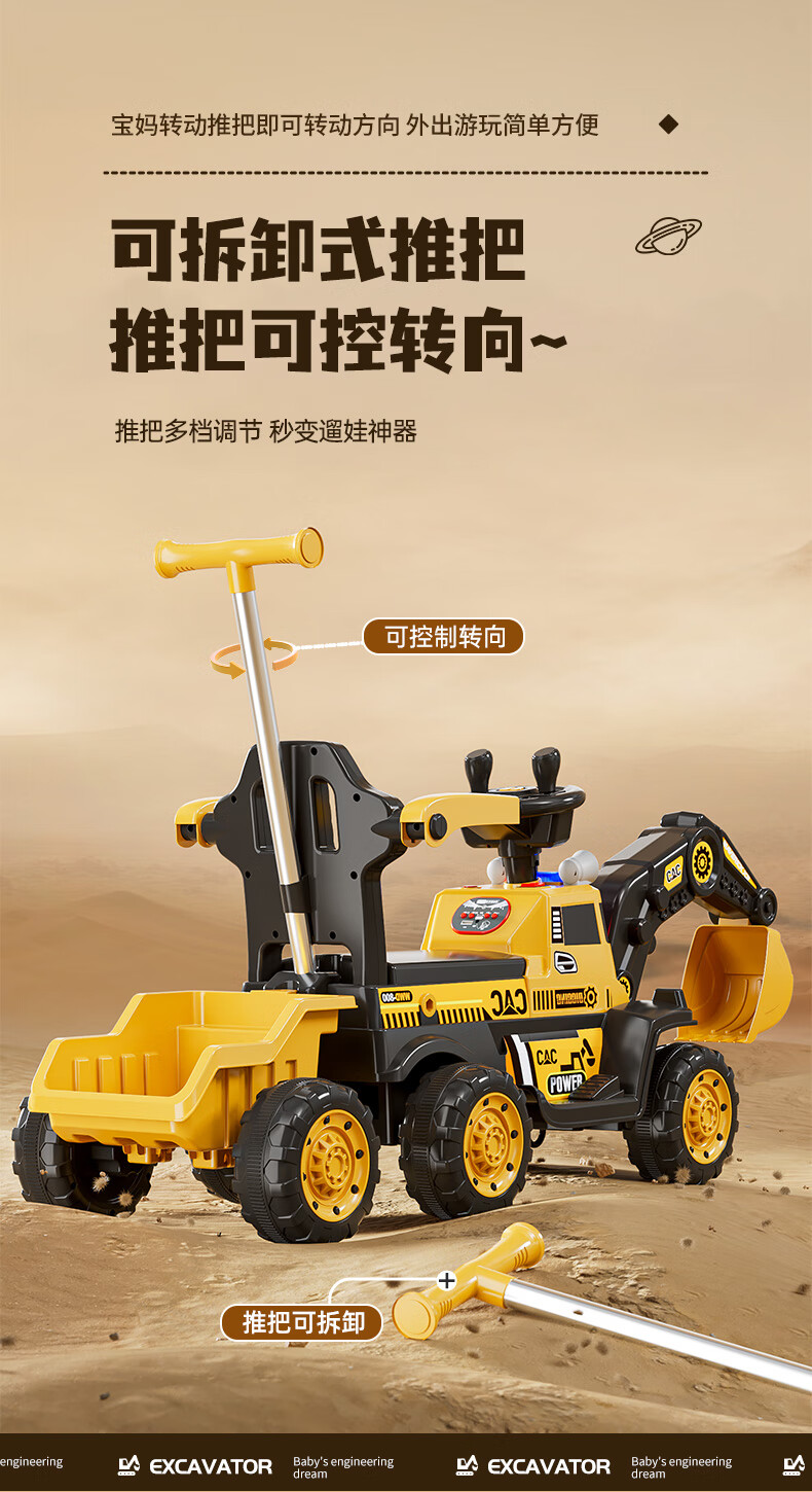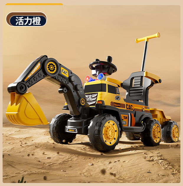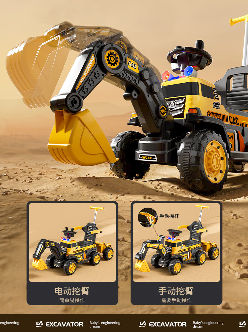 Feige children's electric excavator can sit on a person to dig soil, engineering vehicle for boys aged 1-3-6, baby remote control oversized toy car, all-electric, electric digging arm, push handle, music and lighting, free gift bag, birthday gift