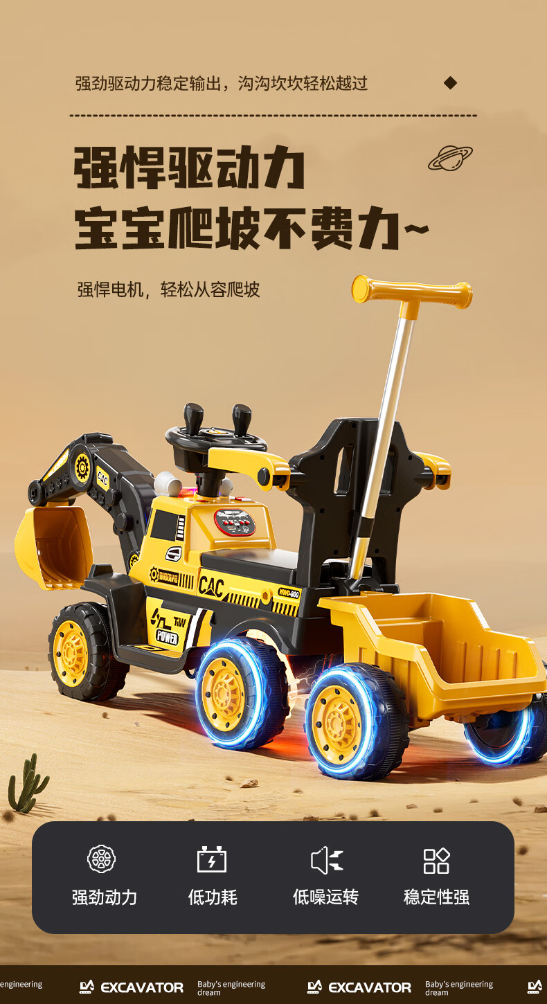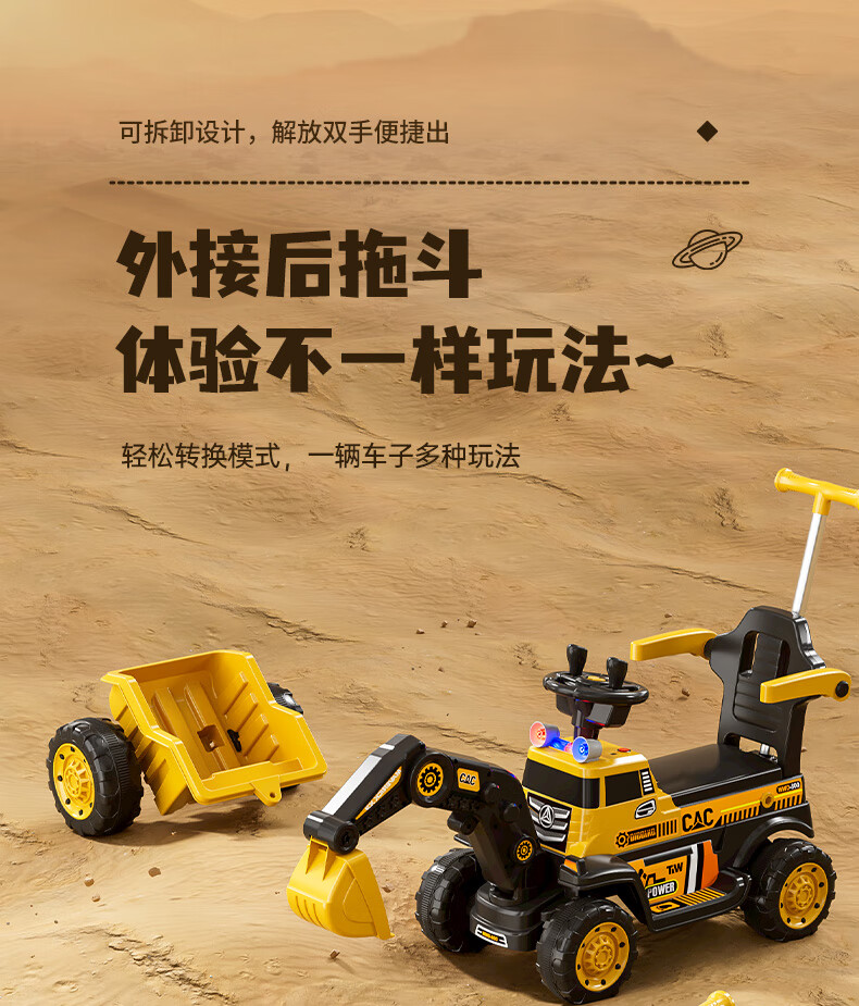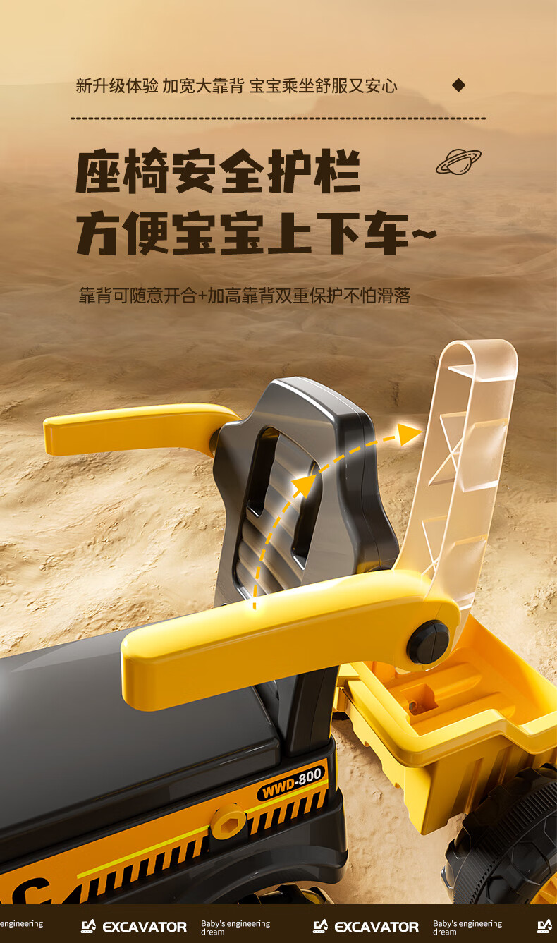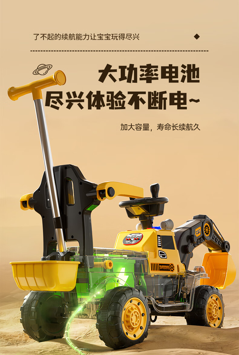 Feige children's electric excavator can sit on a person to dig soil, engineering vehicle for boys aged 1-3-6, baby remote control oversized toy car, all-electric, electric digging arm, push handle, music and lighting, free gift bag, birthday gift