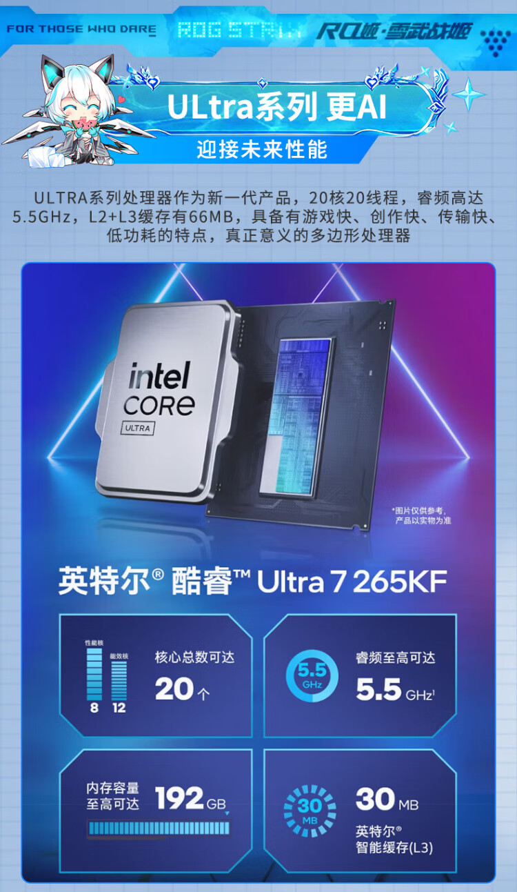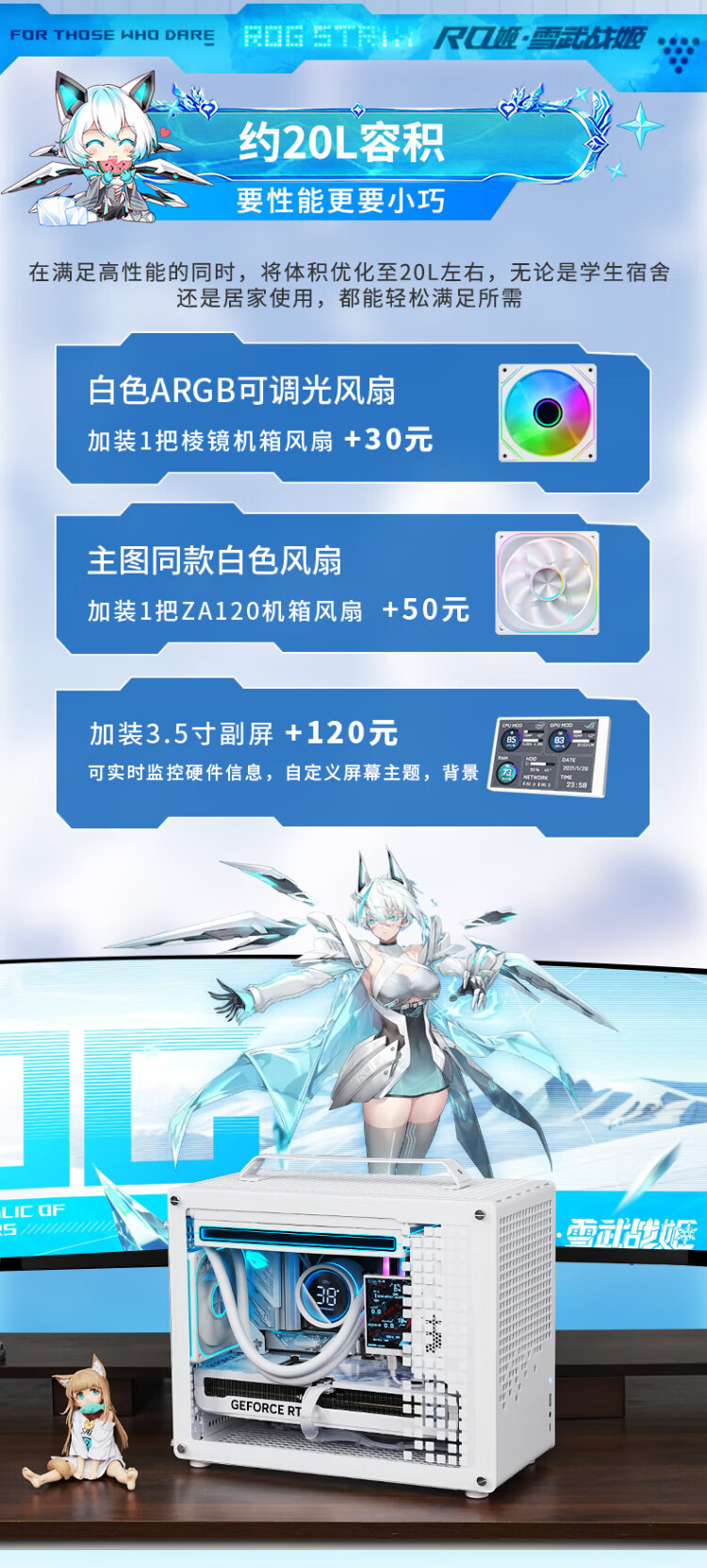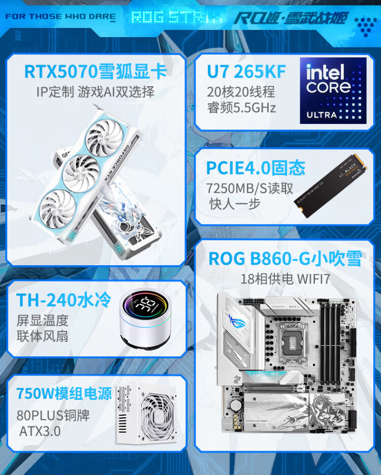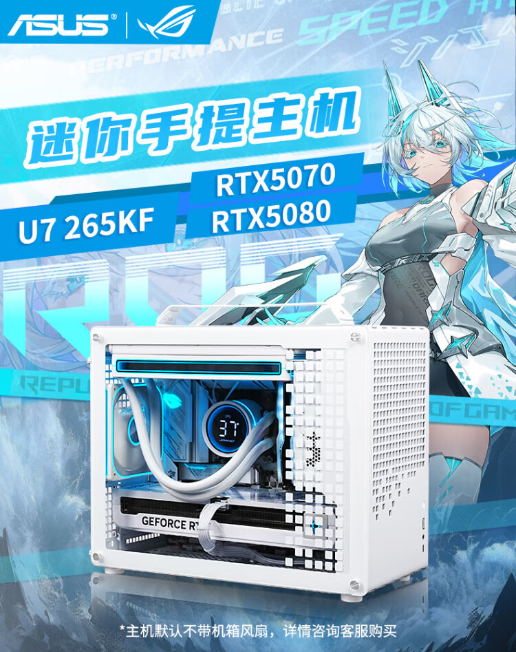 ASUS ROG Kobuki Snow intel Ultra7 265KF/RTX5080/5070TI/5060TI pure white mini ITX desktop assembly computer game console Qiao Sibo Z20 with six丨U7 265KF丨RTX5080