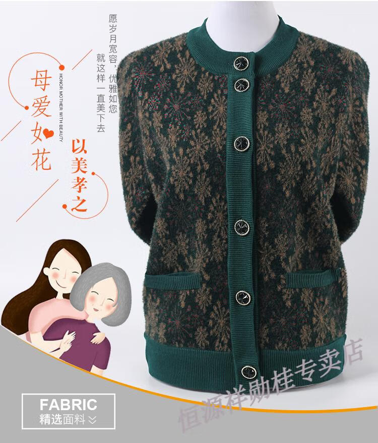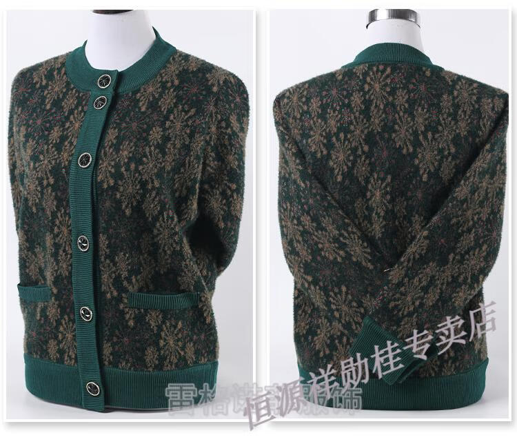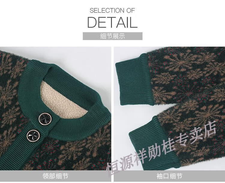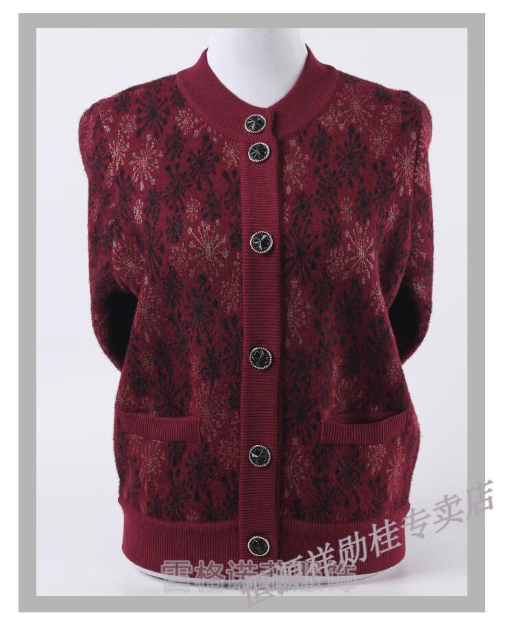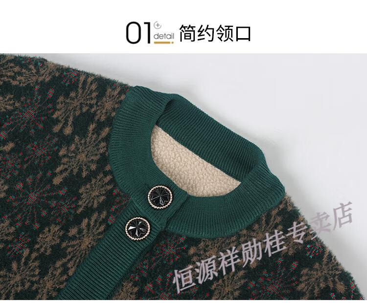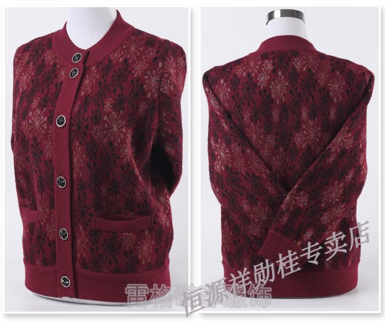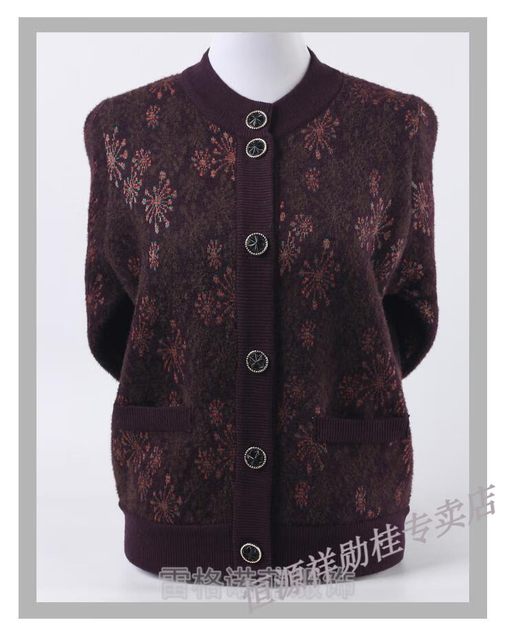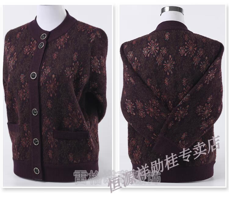 Hengyuanxiang middle-aged and elderly winter clothes for women 60 years old and 70 years old knitted cardigan mother round neck plus velvet thickened warm jacket grandma clothes purple (thick) plus velvet 3XL recommended 130-145Jin Jin equals 0.5 kg
