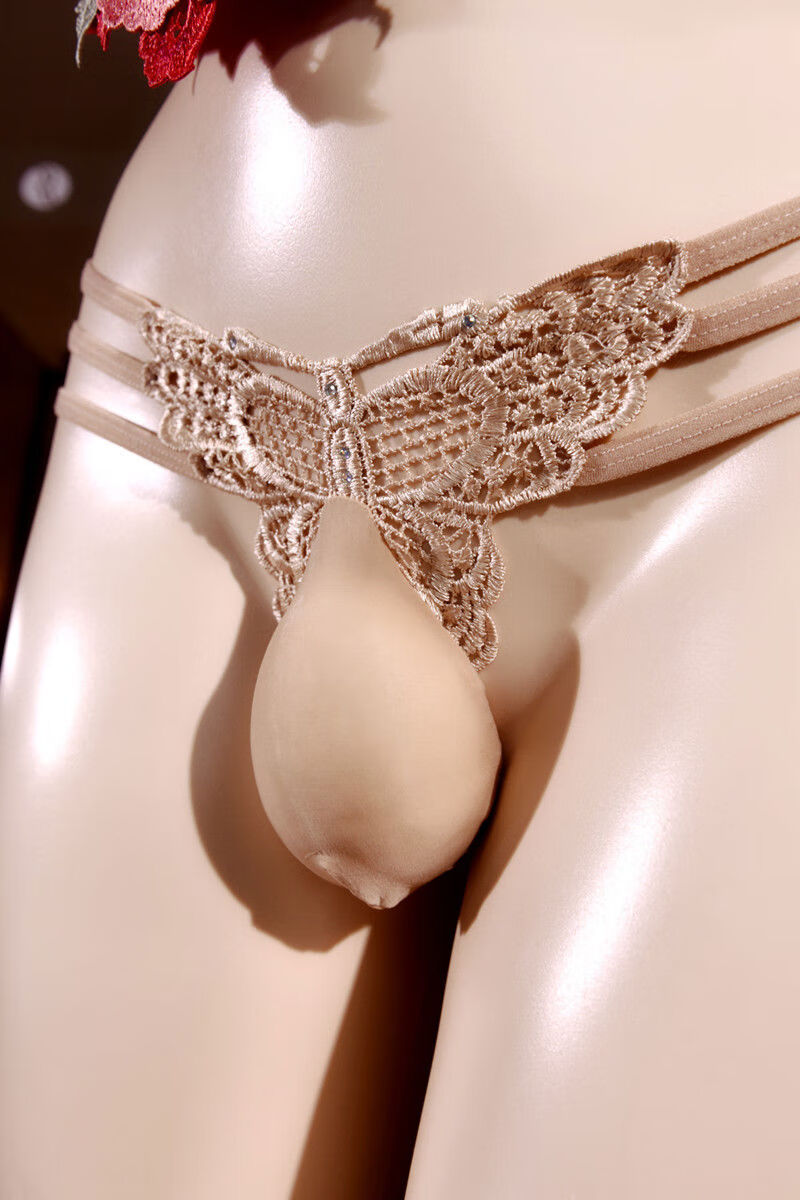 Men's sexy butterfly hollow thong lace sexy large size seamless thin straps passionate jj set of underwear black butterfly-thong opening
