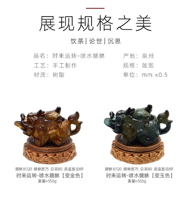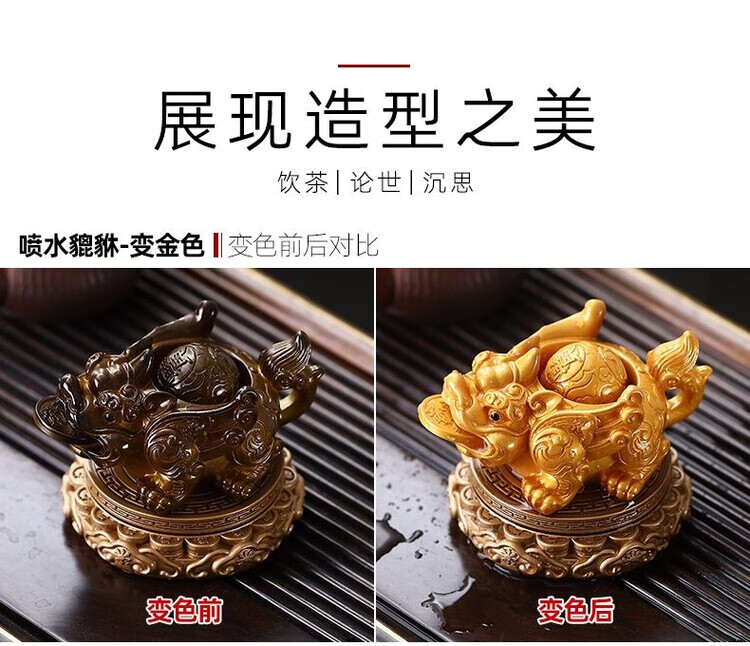 Bonison Color Changing Tea Pet Spraying Water Pixiu Decoration Household Creative Personalized Large Decoration Tea Play Auspicious Beast Chinese Boutique Tea Set Water Spraying Pixiu Turns Green