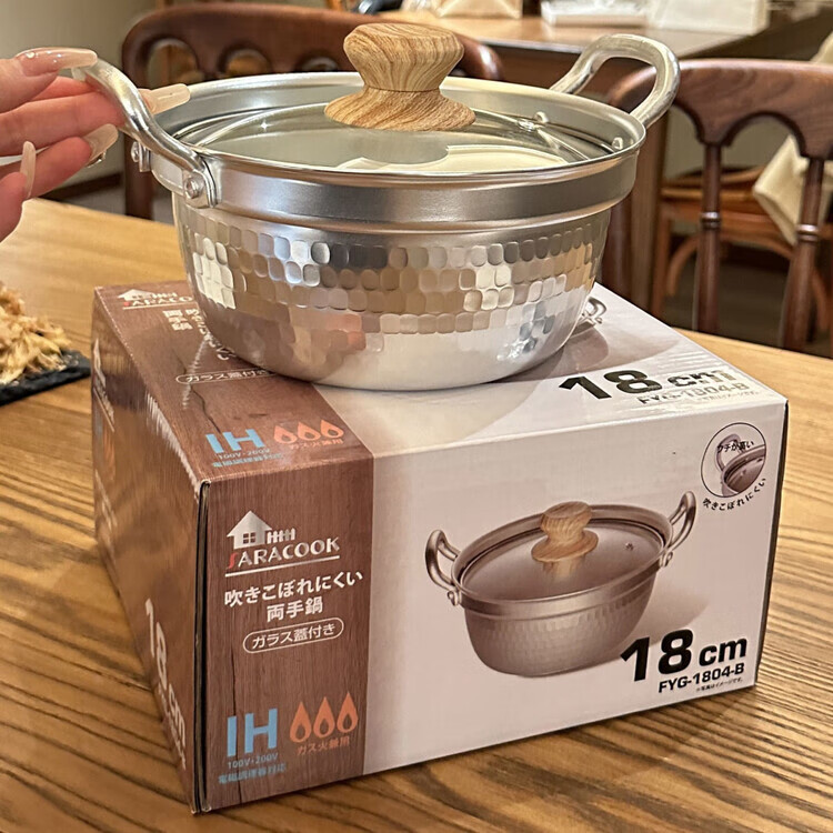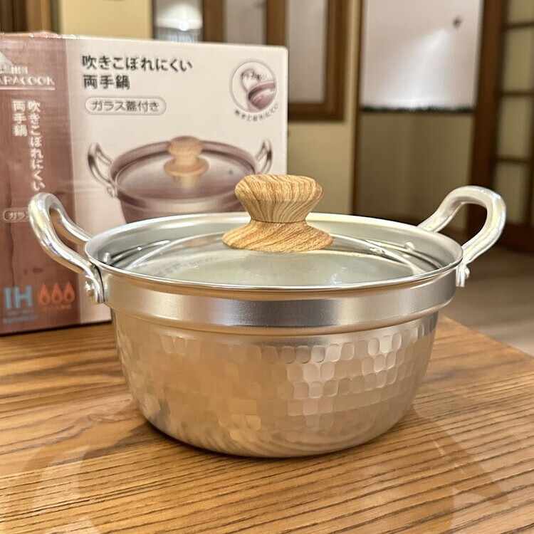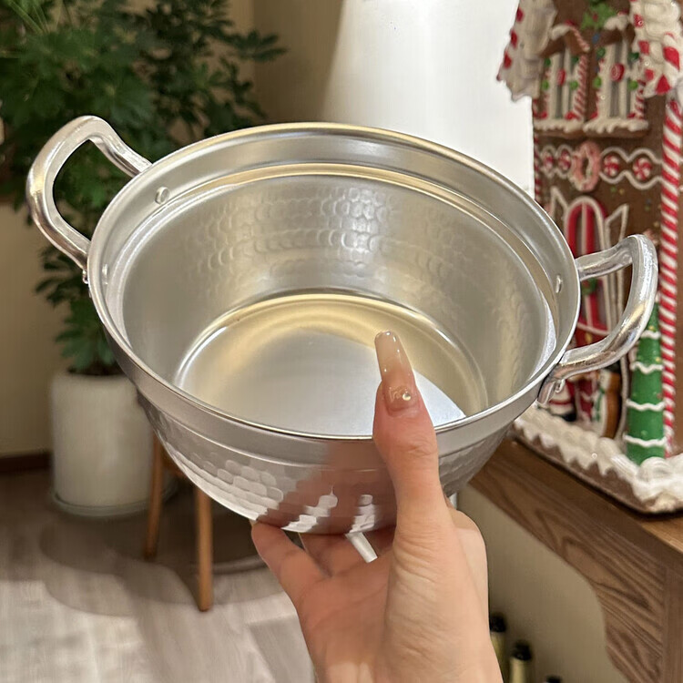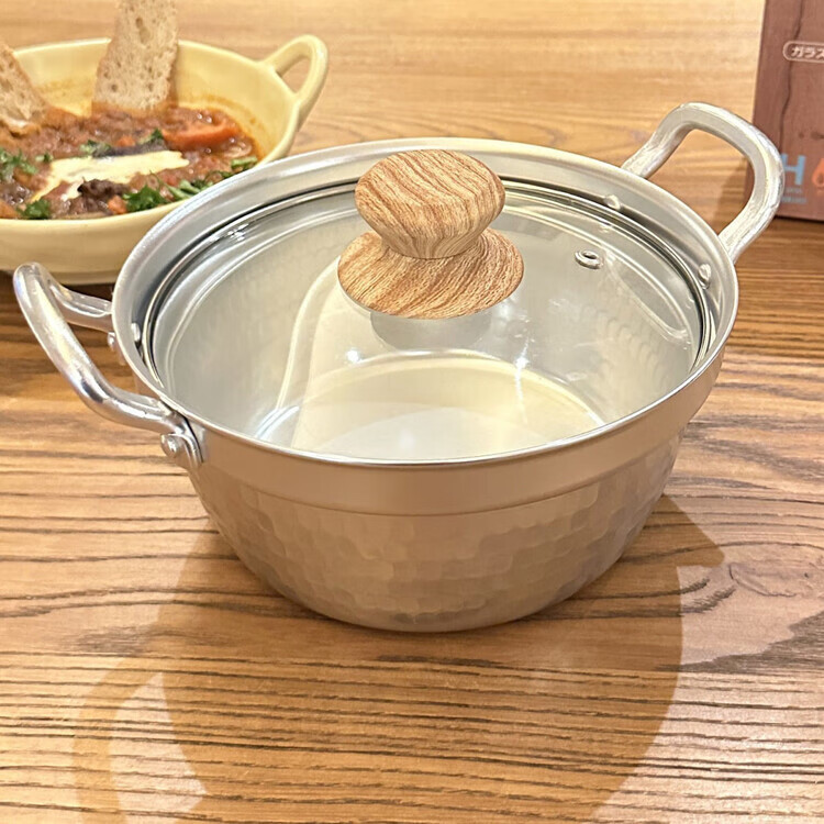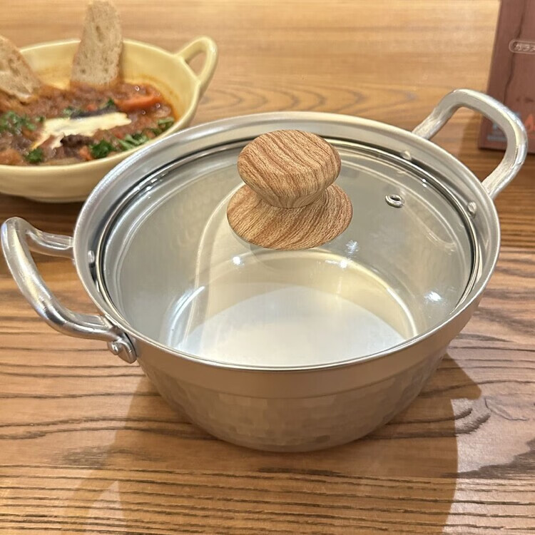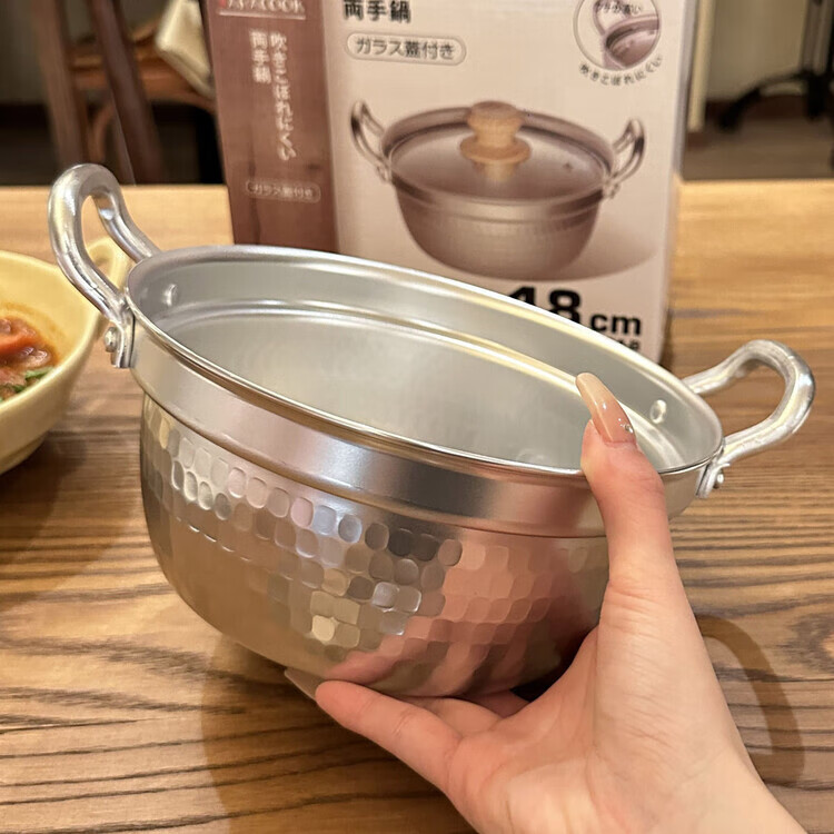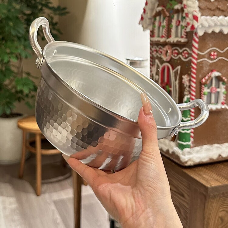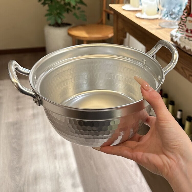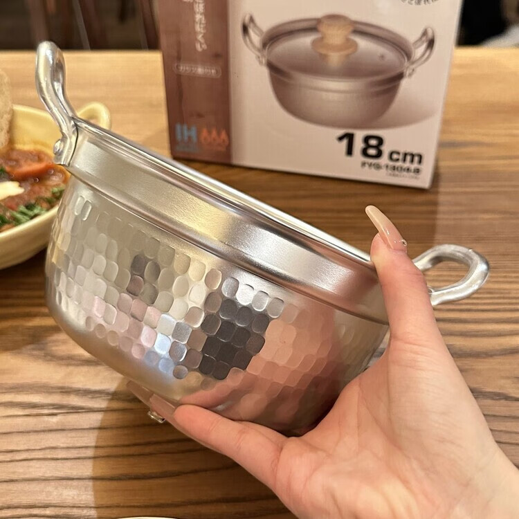 Burnison Japanese desktop small hot pot ramen pot soup pot double-eared snow pan export quality small hot pot silver induction cooker open flame 1 inch