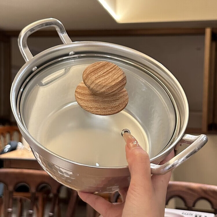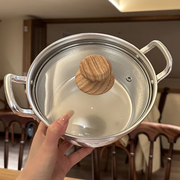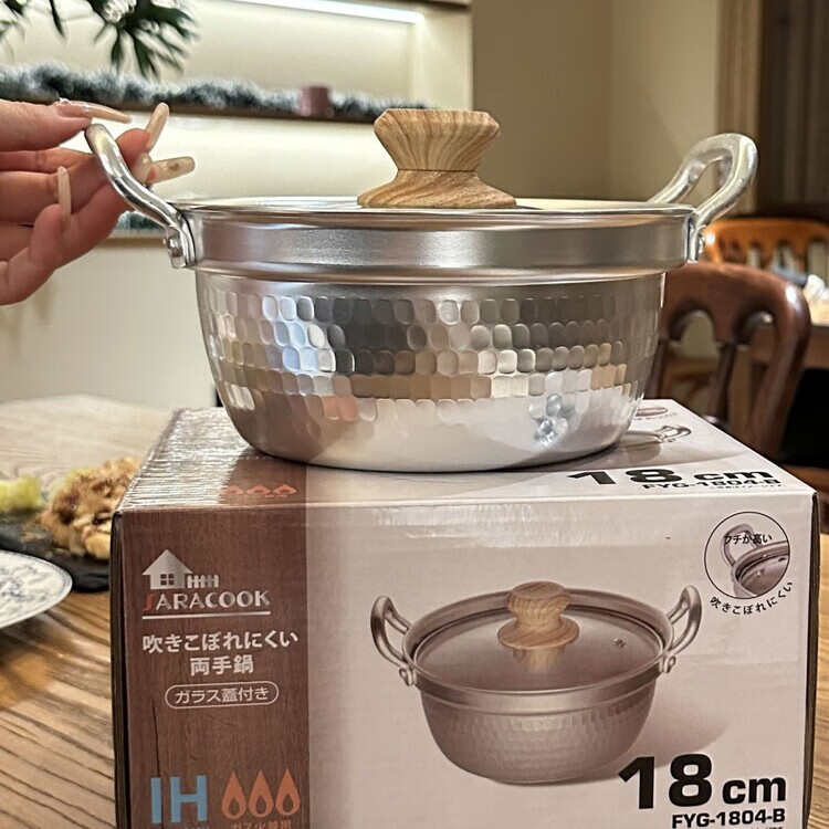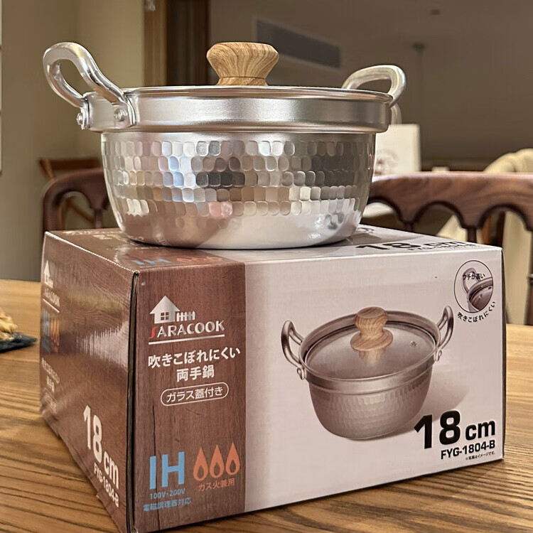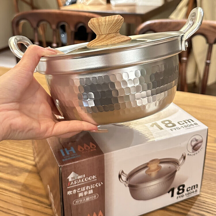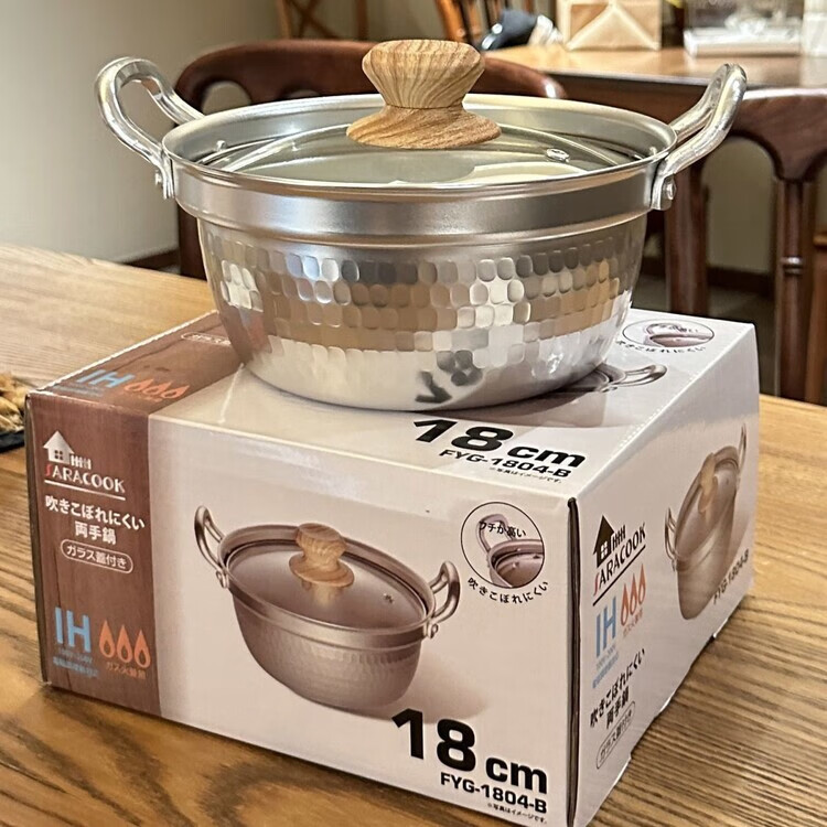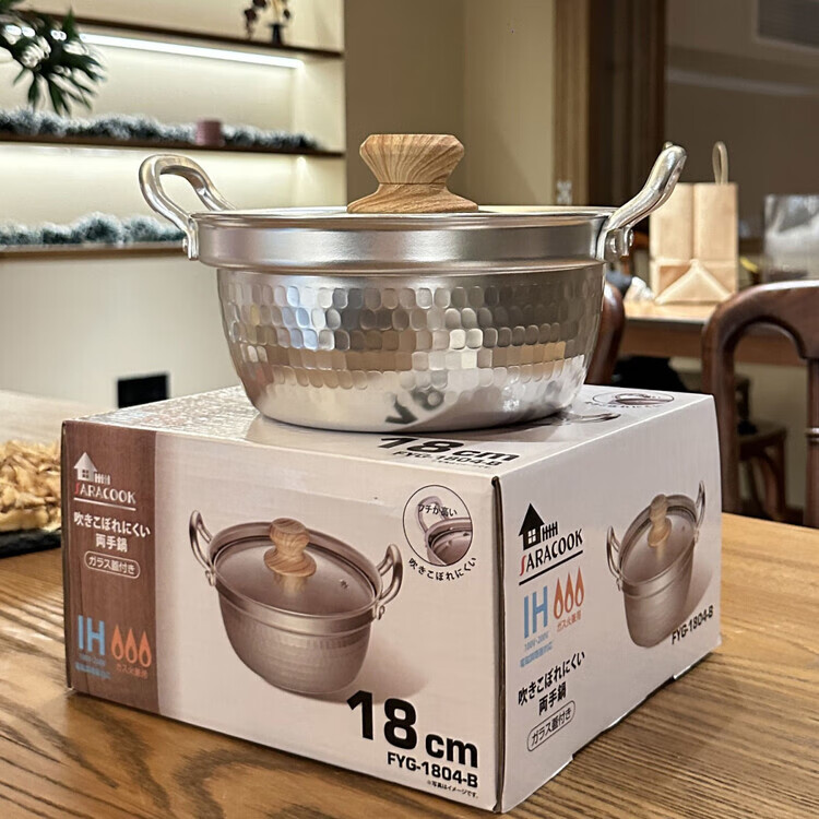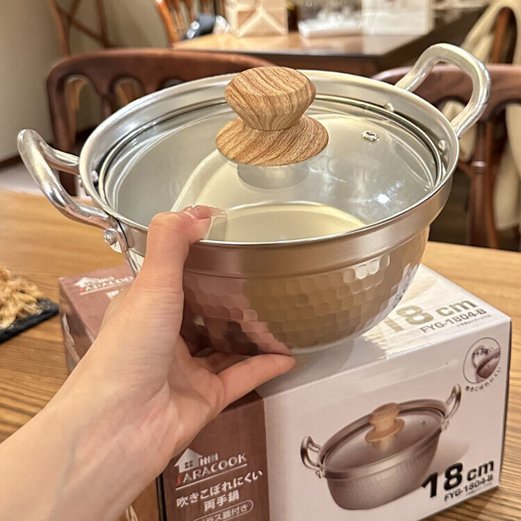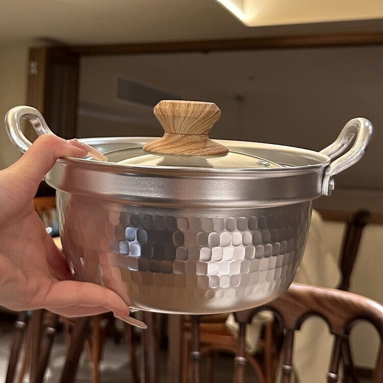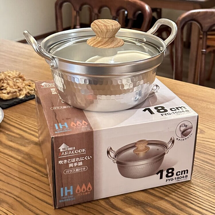 Burnison Japanese desktop small hot pot ramen pot soup pot double-eared snow pan export quality small hot pot silver induction cooker open flame 1 inch