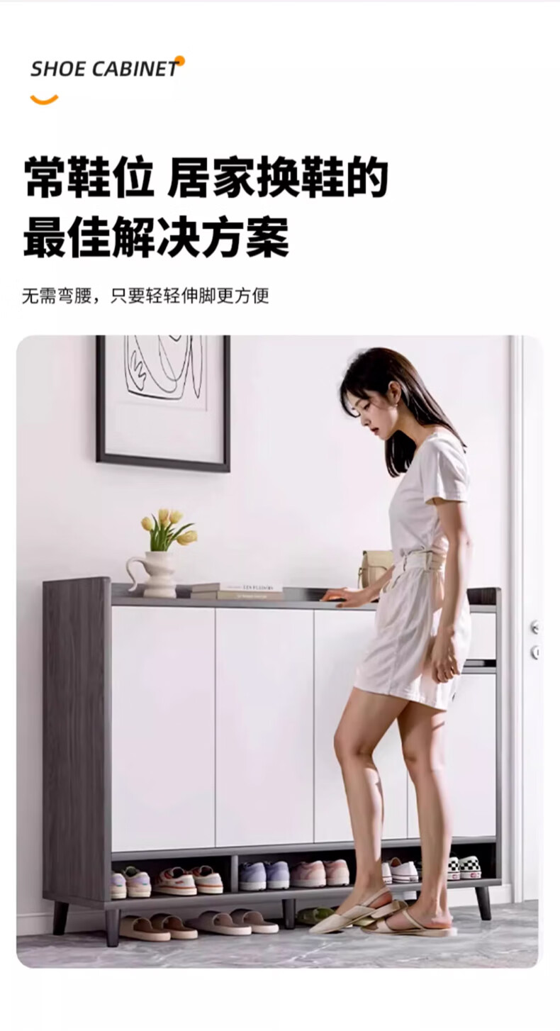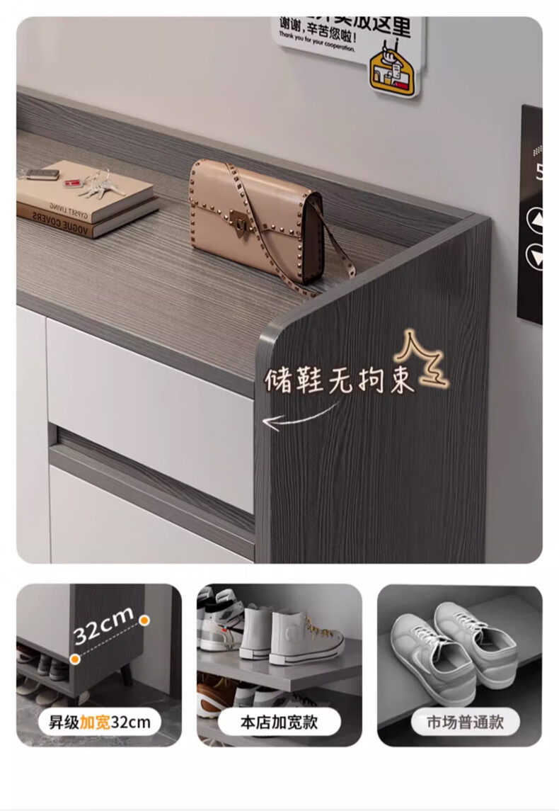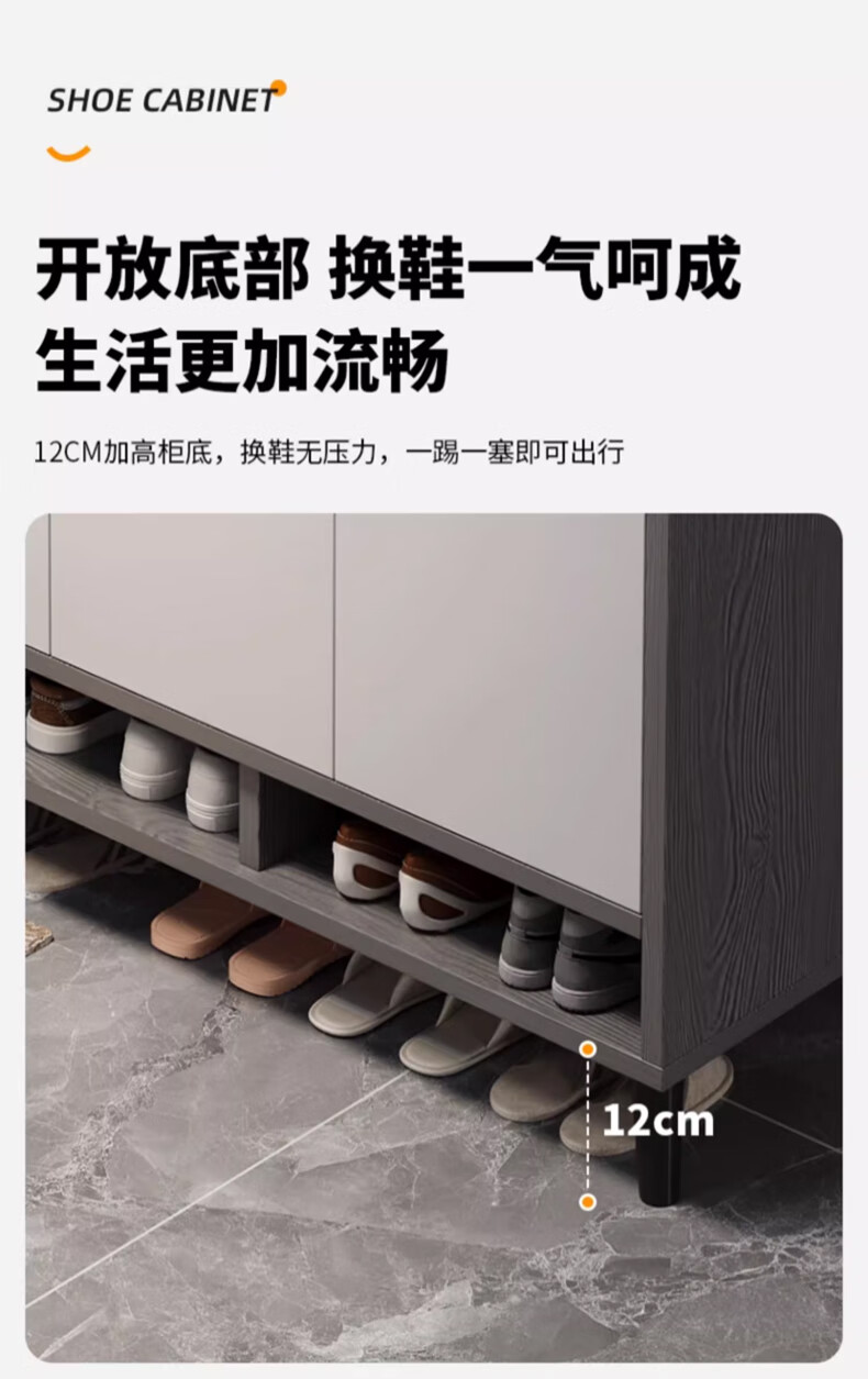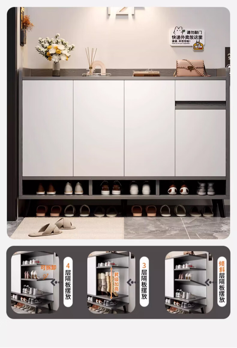 Zuodu Shoe Cabinet Entrance Cabinet Integrated Wall Entrance Cabinet 2025 New Storage Cabinet Home Large Capacity Shoe Cabinet Highly Recommended Four Doors and One Pull Morandi Gray 120cm