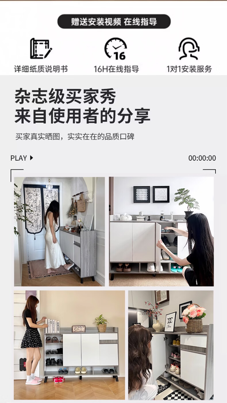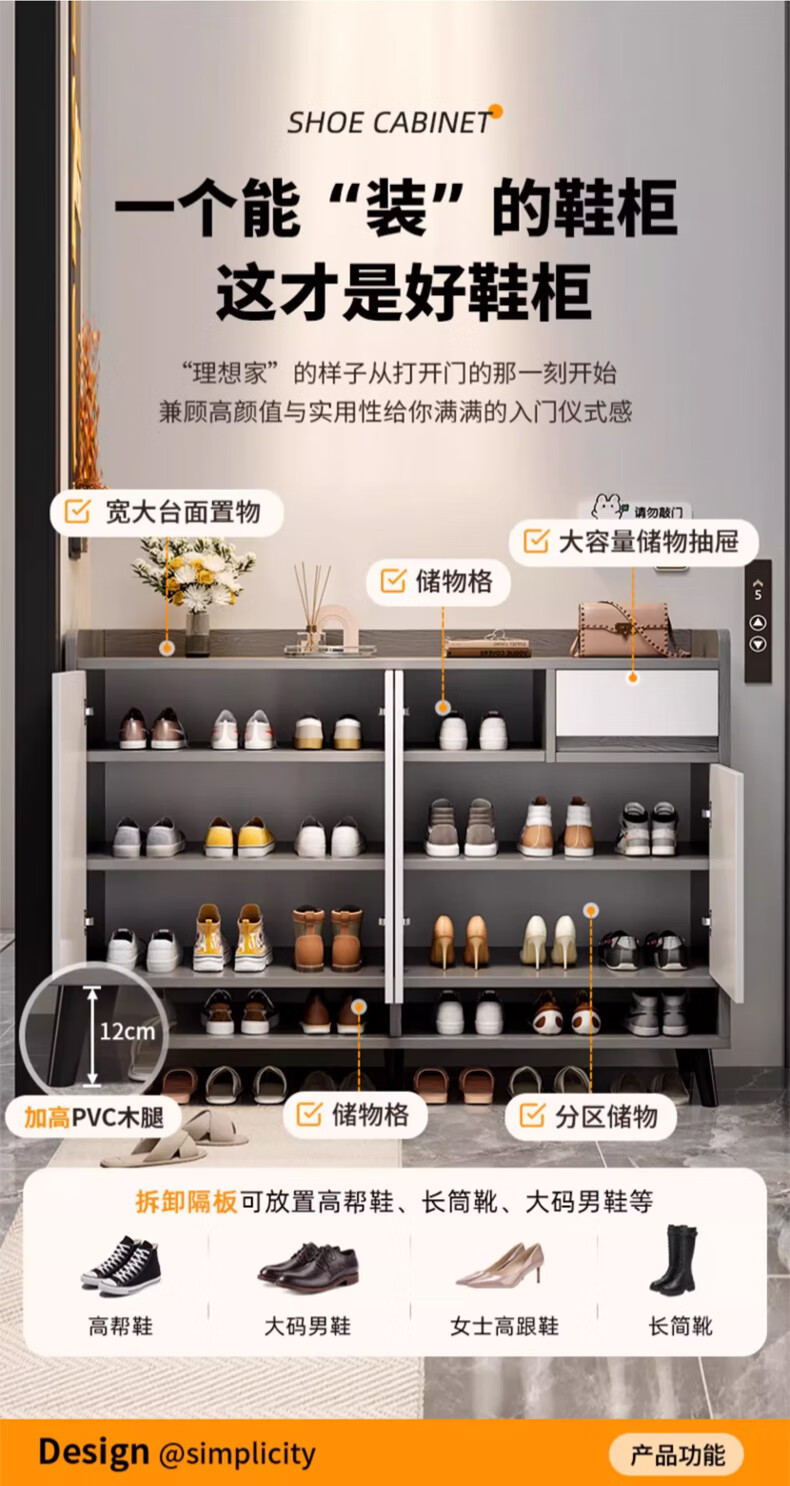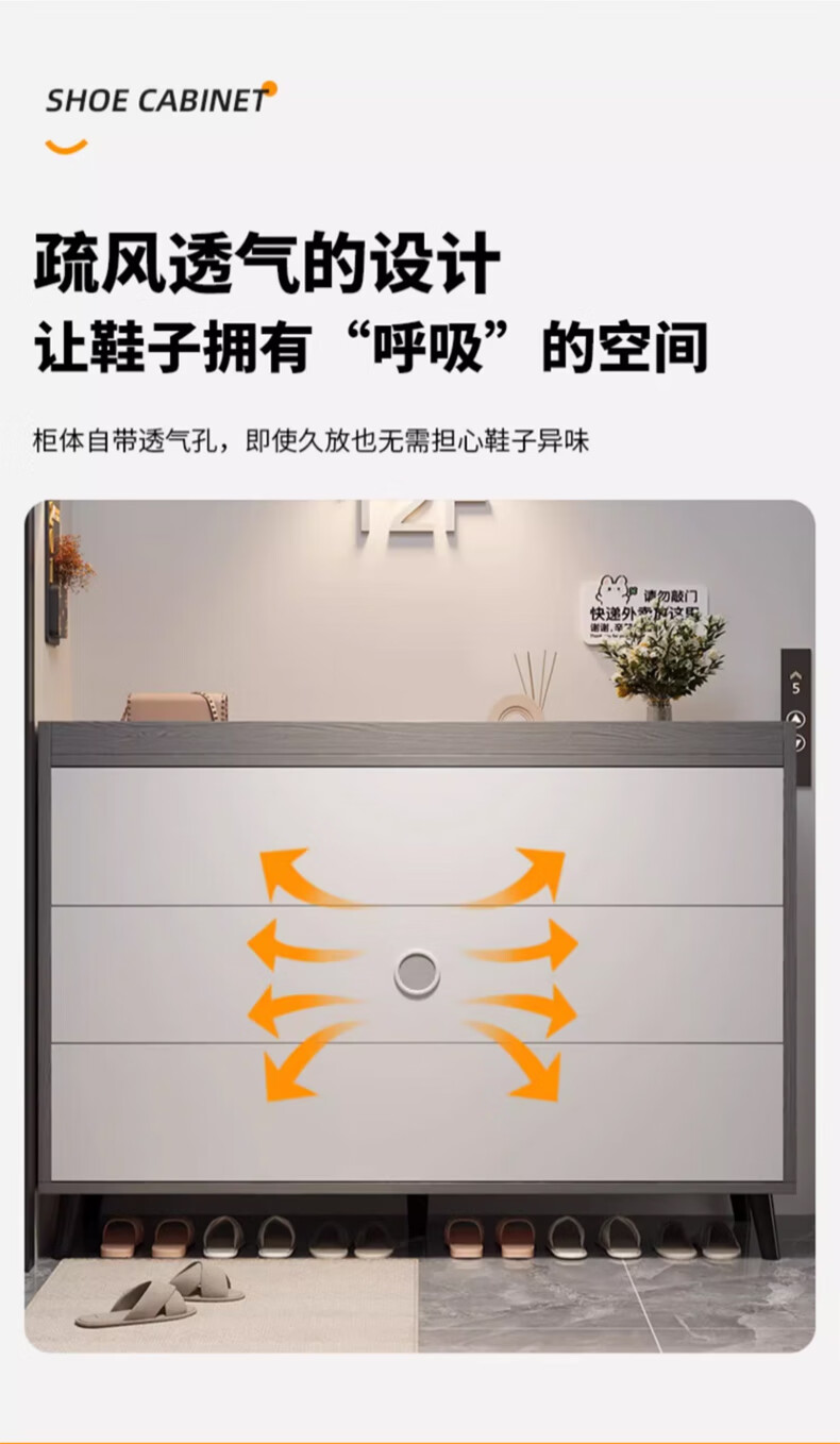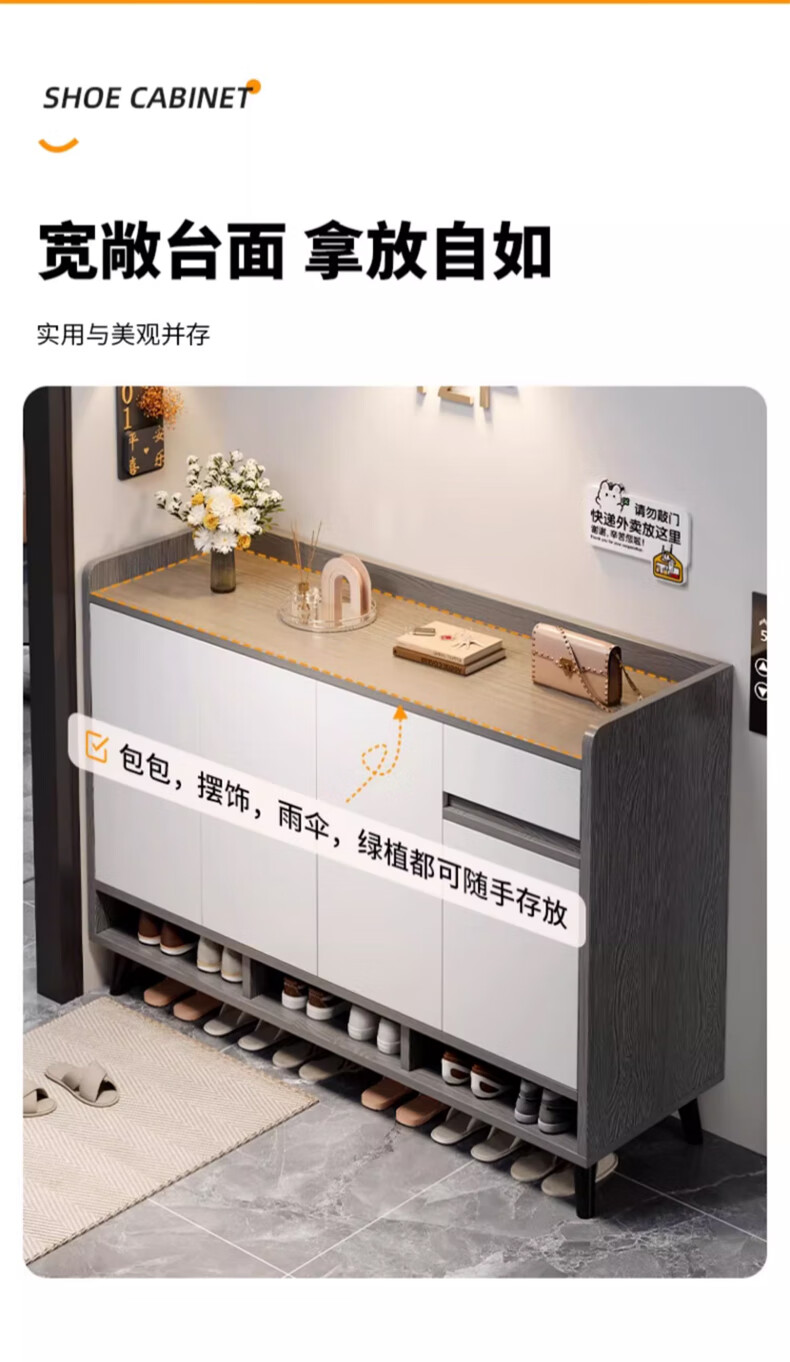 Zuodu Shoe Cabinet Entrance Cabinet Integrated Wall Entrance Cabinet 2025 New Storage Cabinet Home Large Capacity Shoe Cabinet Highly Recommended Four Doors and One Pull Morandi Gray 120cm