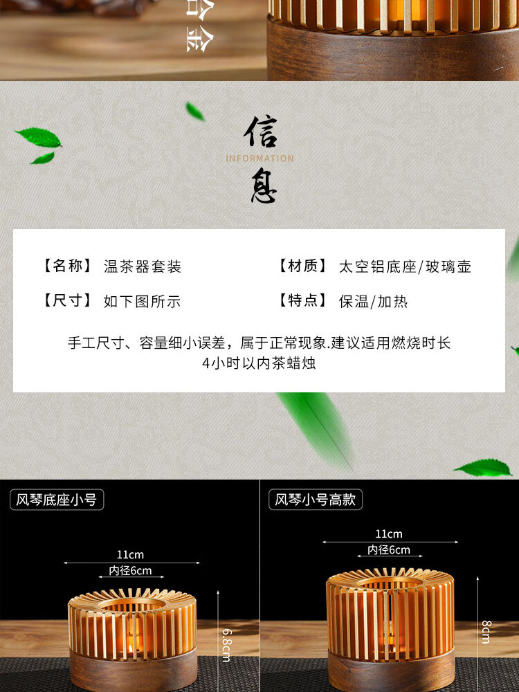 ZXQ tea warmer, warm tea stove, glass teapot insulation base, household candle heating, tea making, tea warmer, organ tea warmer - small and short model, diameter 11cm