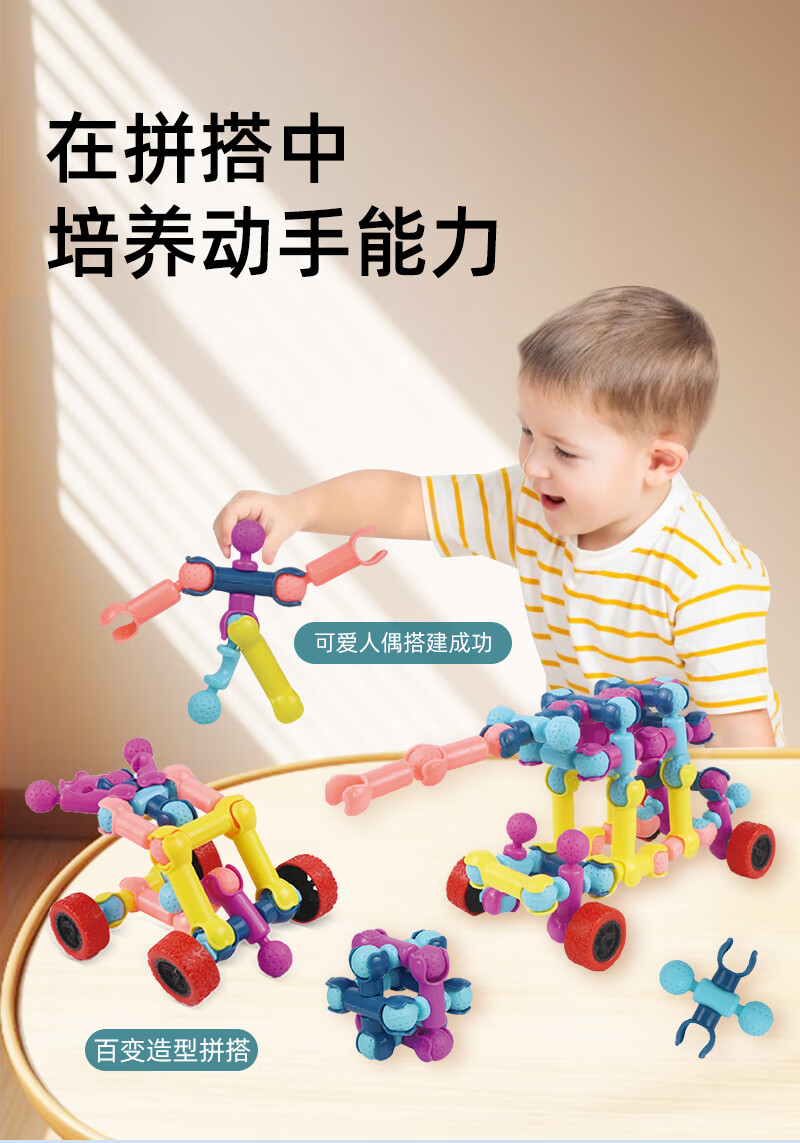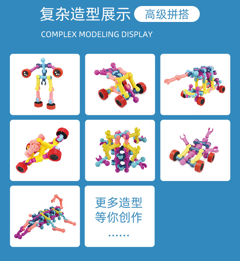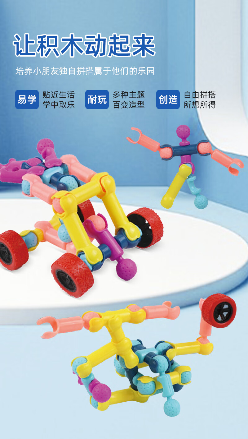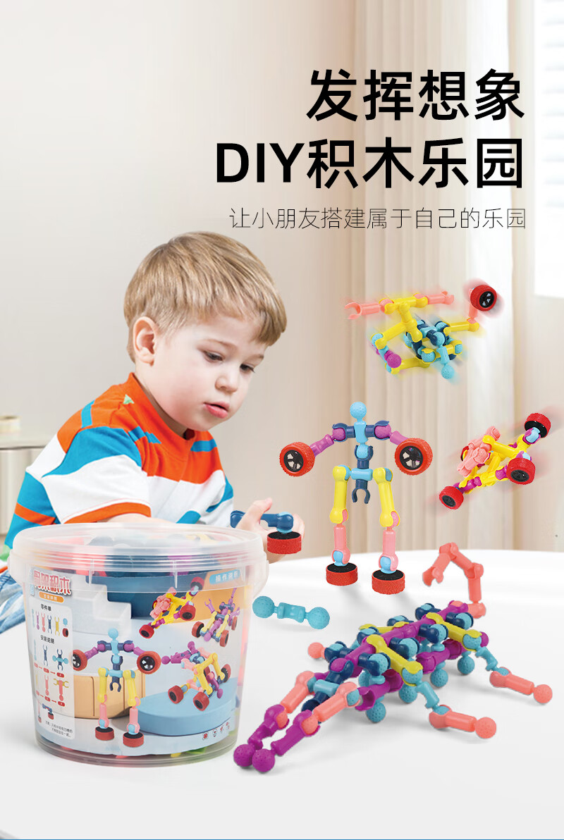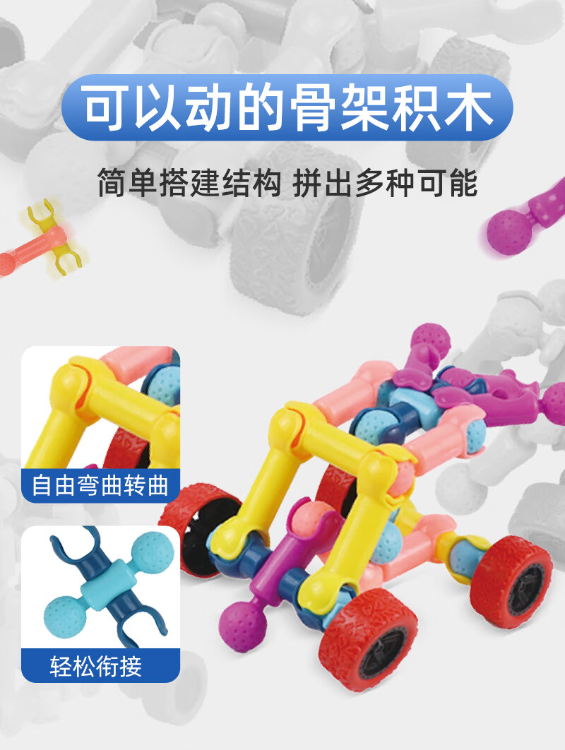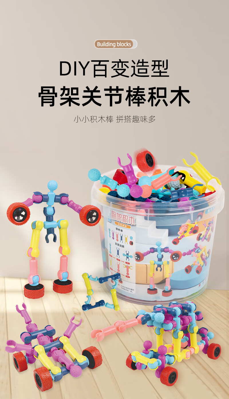 Skeleton Joint Rod Assembling Building Block Toy Children's Intellectual Development Puzzle Assembling Toy Boy Building Block Kindergarten 170-piece Set Storage Box + Wheel + Drawing