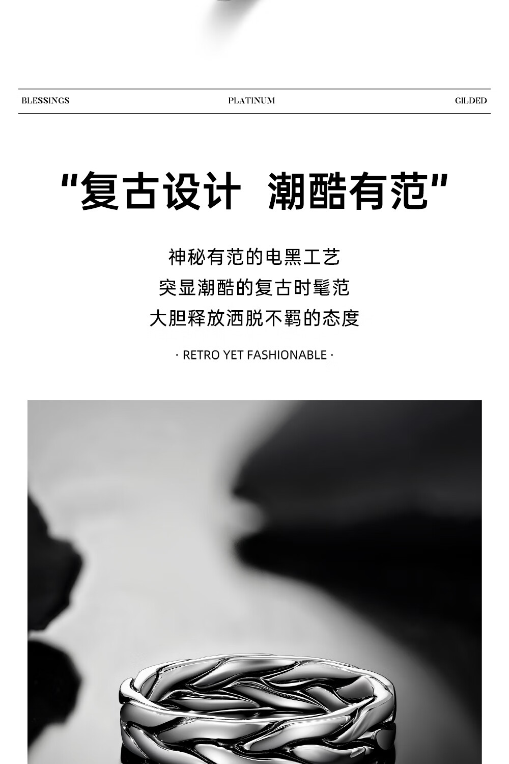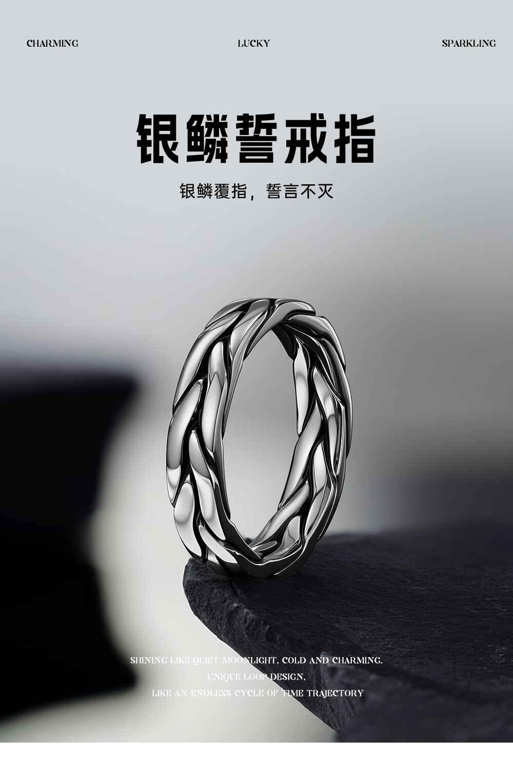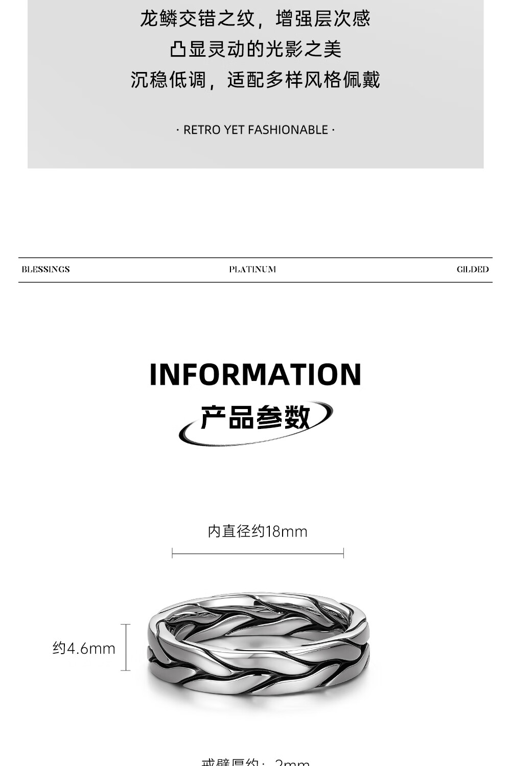 Zhongxin Jewelry platinum dragon scale men's fashion ring pt950 electric black craft retro interlaced rattan ring for men and women gift #15