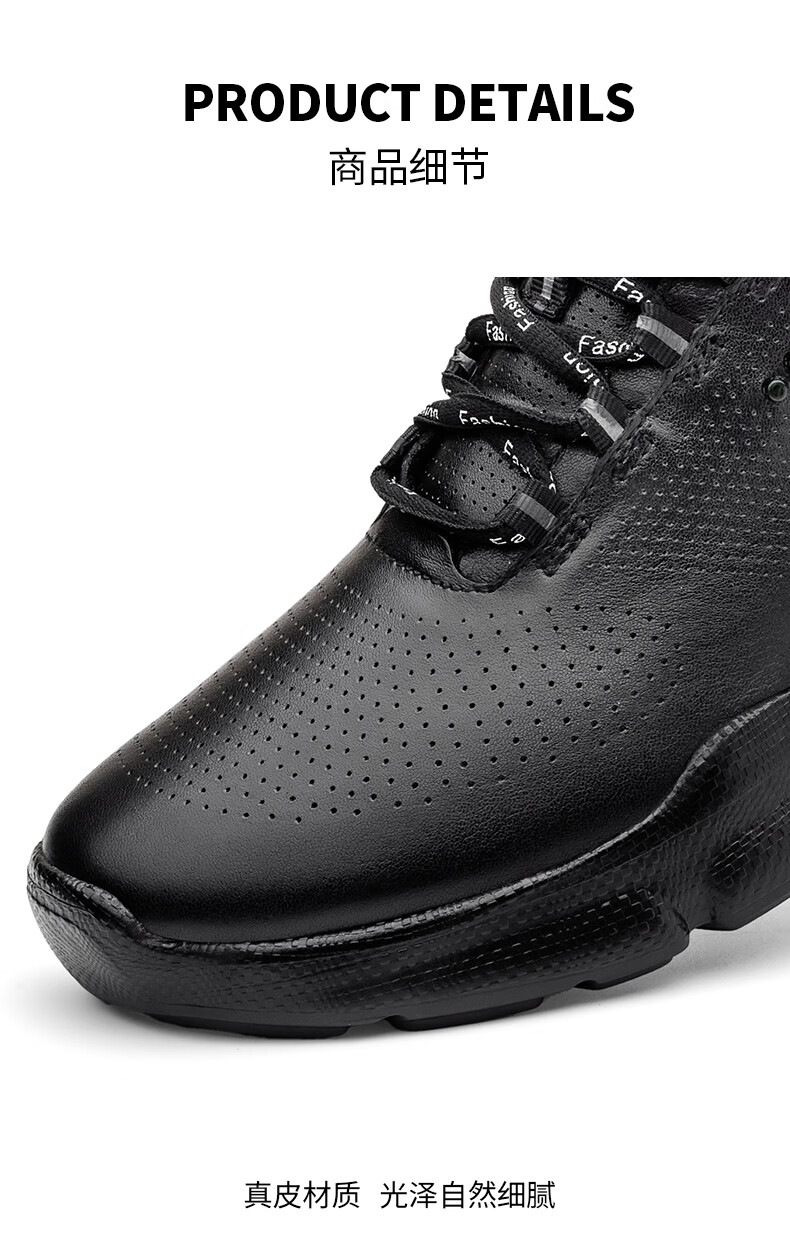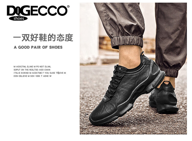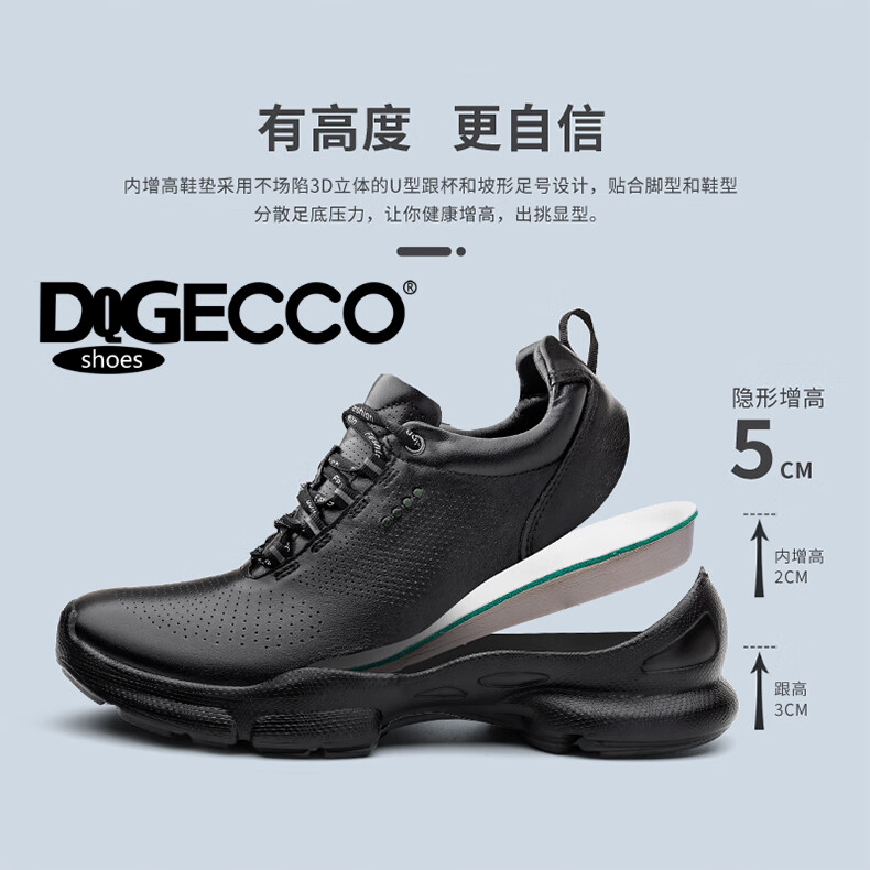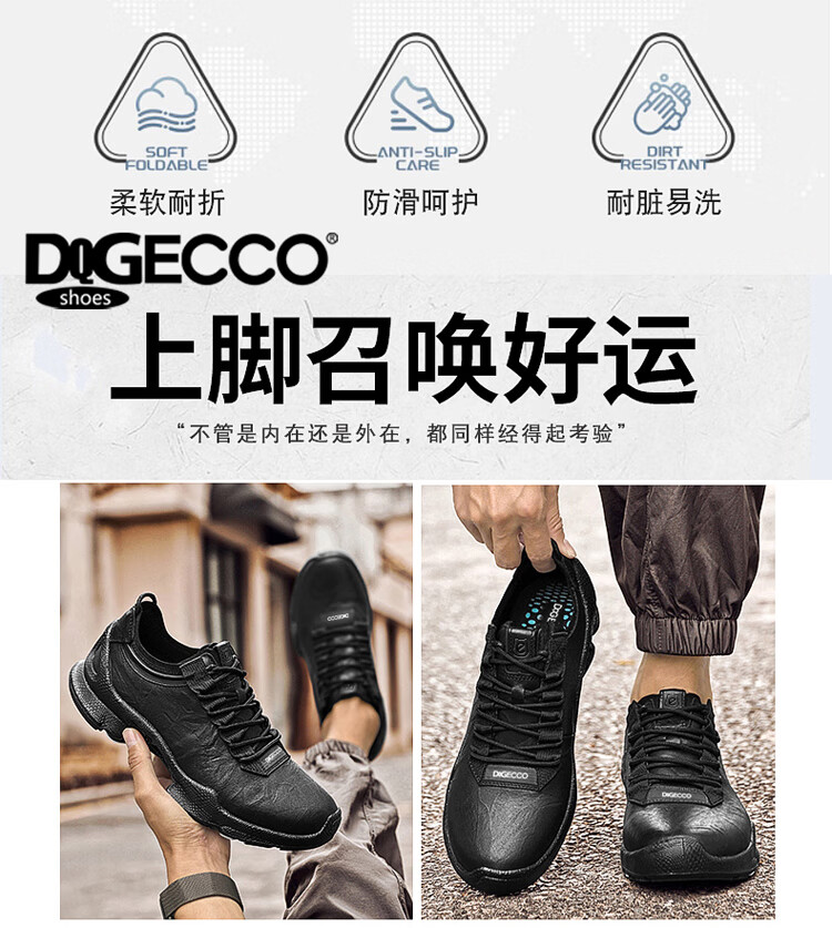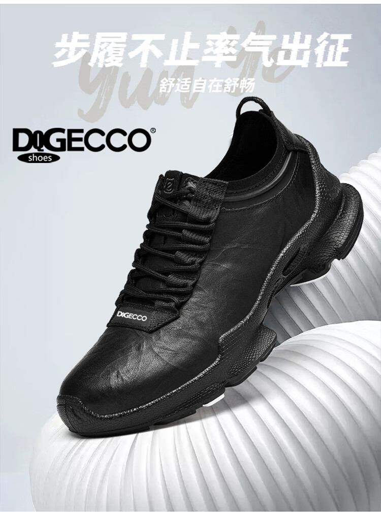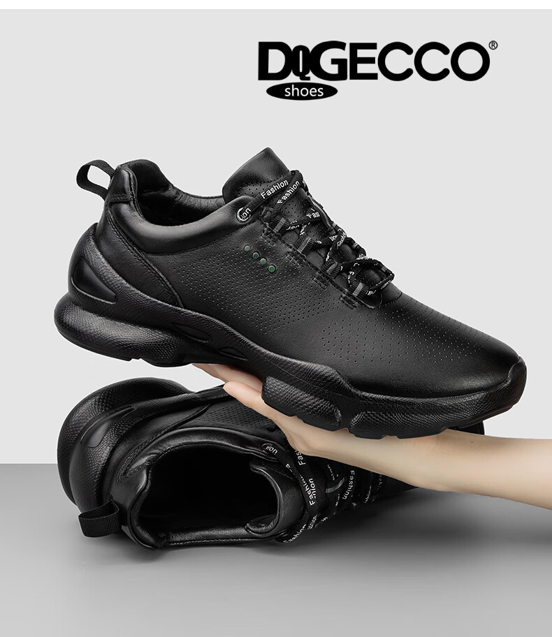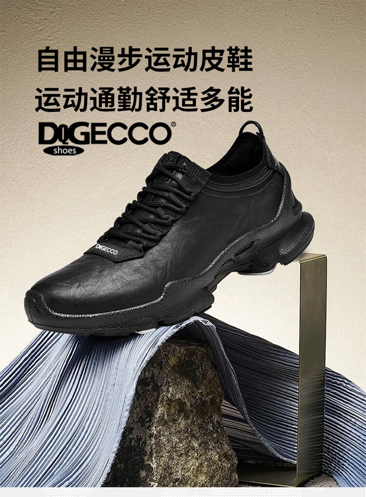Aibotron DQG ECCO men's shoes spring and autumn breathable casual sports shoes 15th anniversary thick-soled cushioning lightweight soft-soled business leather shoes 1977 black 40