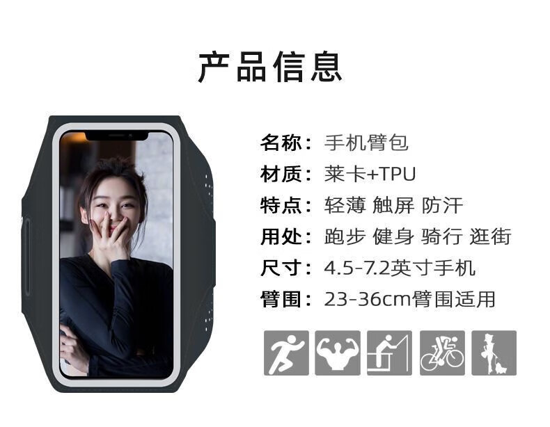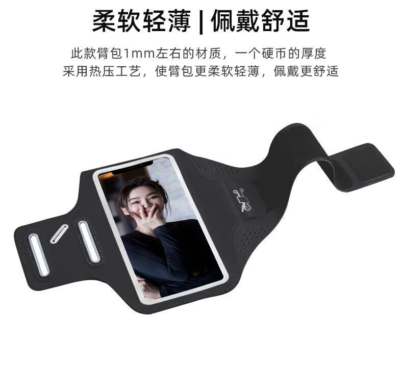 Shantou Lincun Japanese quality thin and light running mobile phone arm bag touch screen wrist bag waterproof arm arm strap men's and women's sports arm bag black enlarged (within 6.8 inches mobile phone) - thin and light -