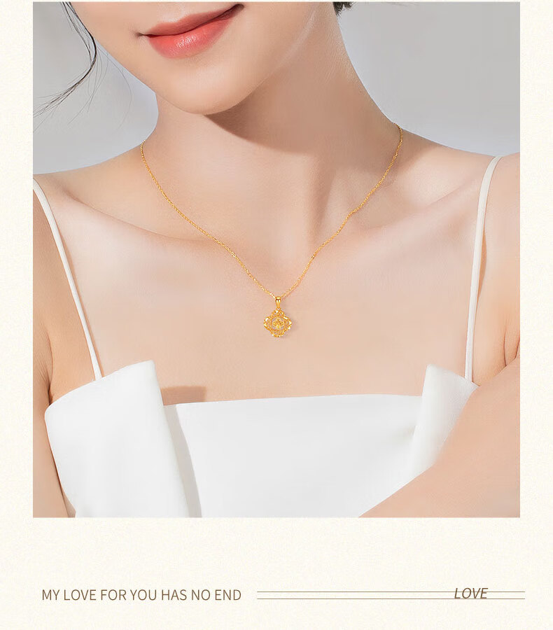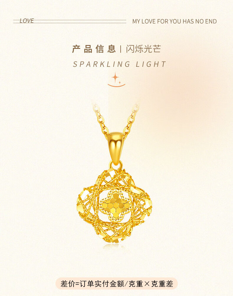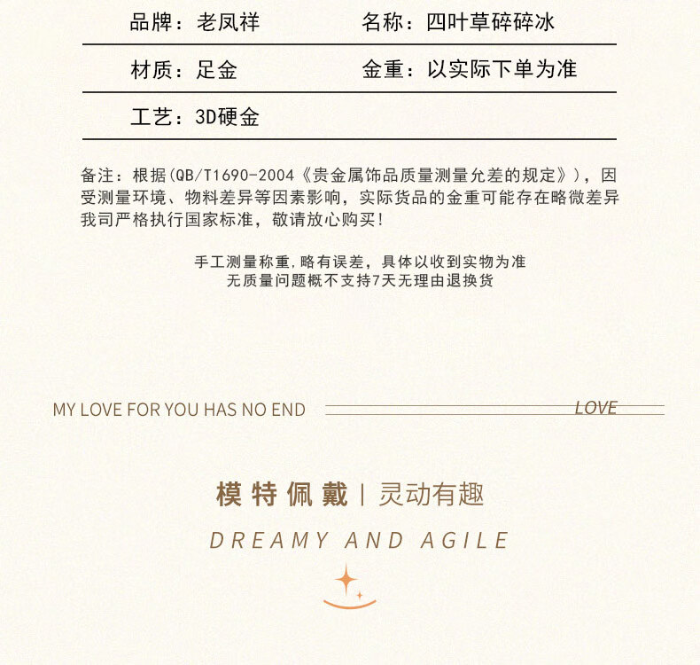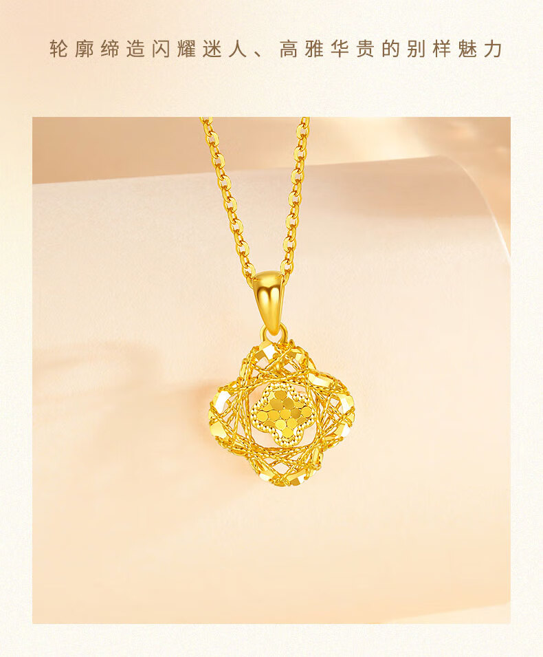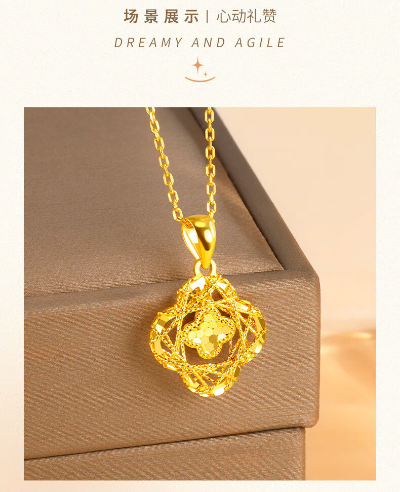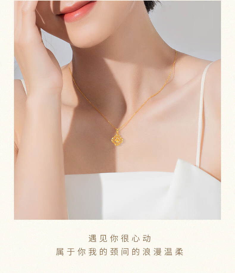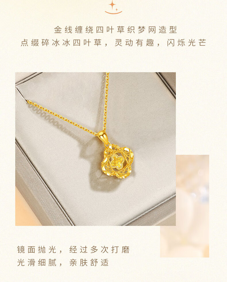 Lao Fengxiang Gold Crushed Ice Four-leaf Clover Pendant Women's Pure Gold Clavicle Necklace Valentine's Day Birthday Gift for Girlfriend and Love Crushed Ice Four-leaf Clover Pendant with S925 Silver Chain Approximately 1.4g