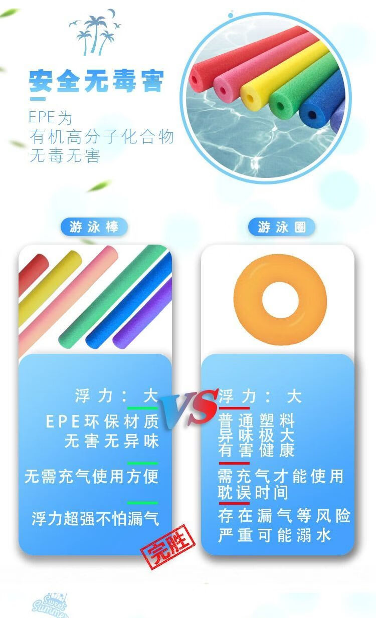 Wen Yijia free diving breathing stick, learning swimming buoyancy stick, floating chair, children's water play equipment, foam floating, small buoyancy stick, blue, with nose clip and earplugs