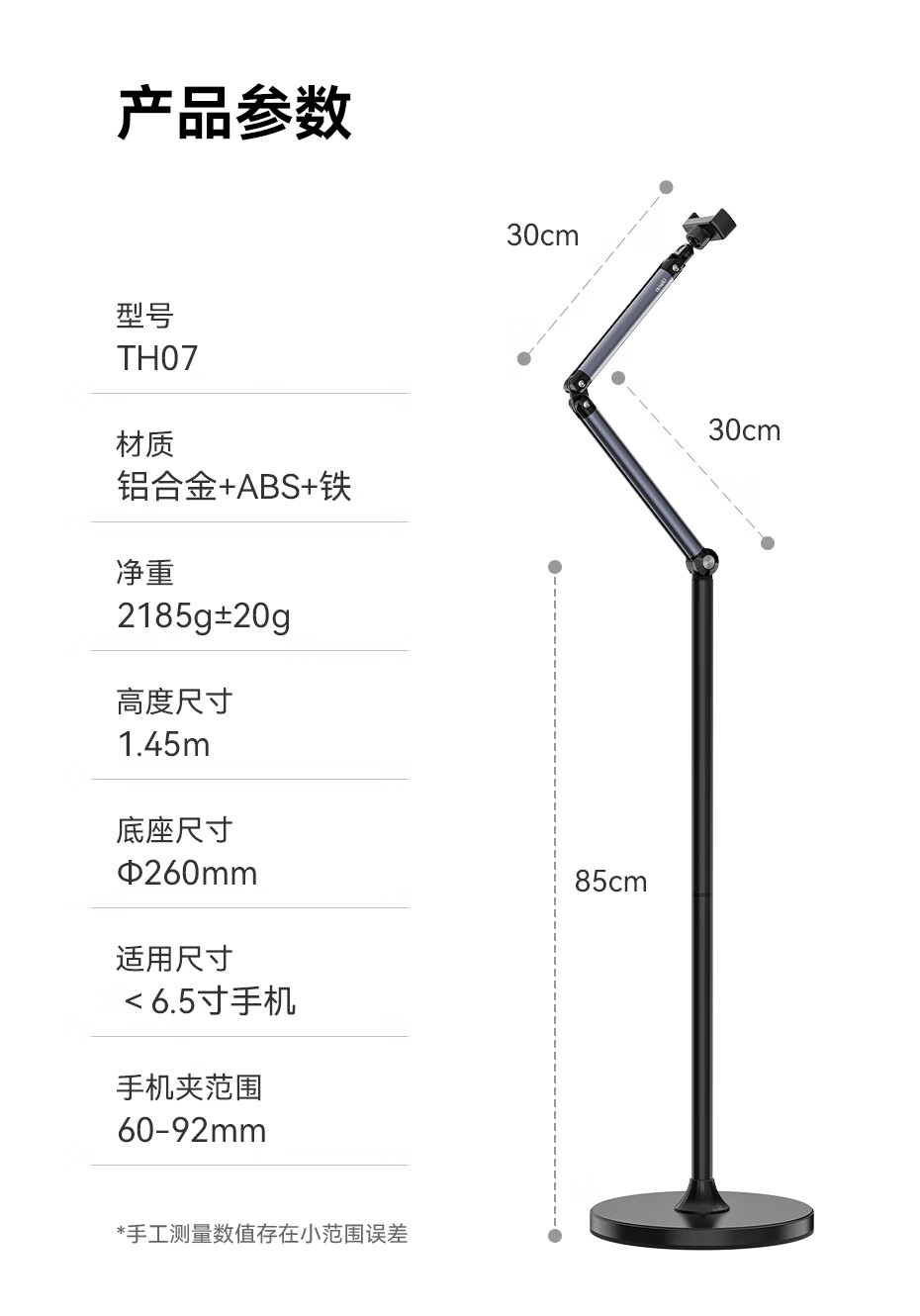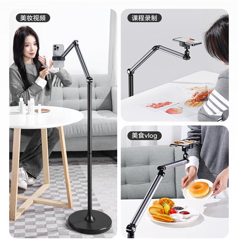 Ulanzi excellent basket TH07 overhead camera mobile phone holder 1.45 meters cantilever mobile phone holder pitch shot 360 degree horizontal and vertical switching live broadcast floor stand beauty food food live broadcast delivery standard TH07 overhead camera mobile phone holder