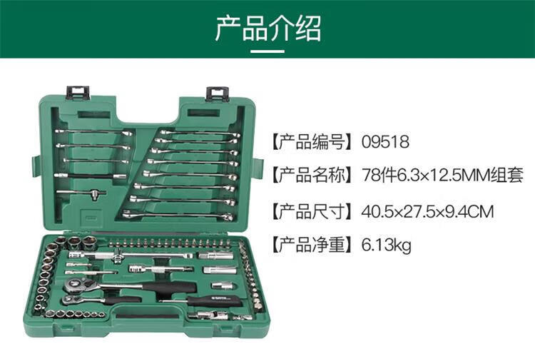 SATA auto repair set 78-piece set of commonly used tools for car repair, large and small fly wrench socket comprehensive set 09518/78-piece 6.3x12.5MM series comprehensive set