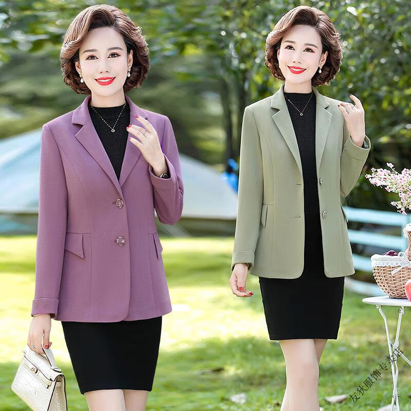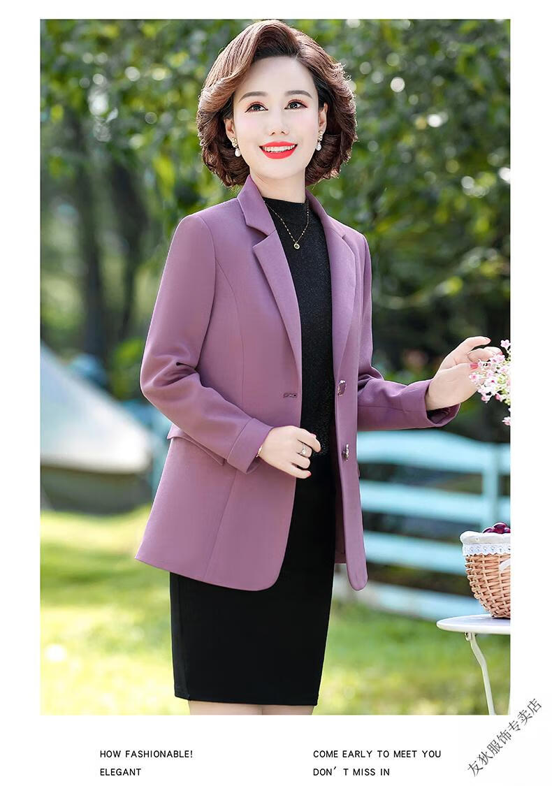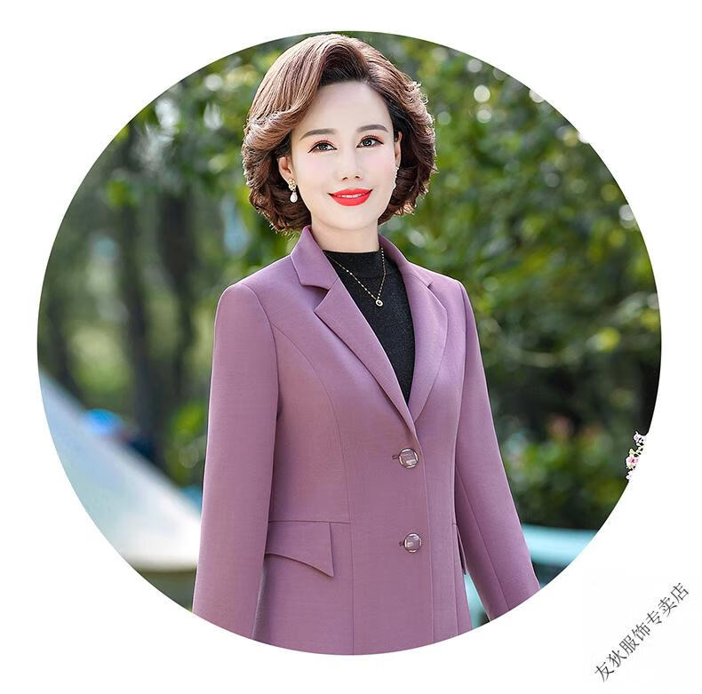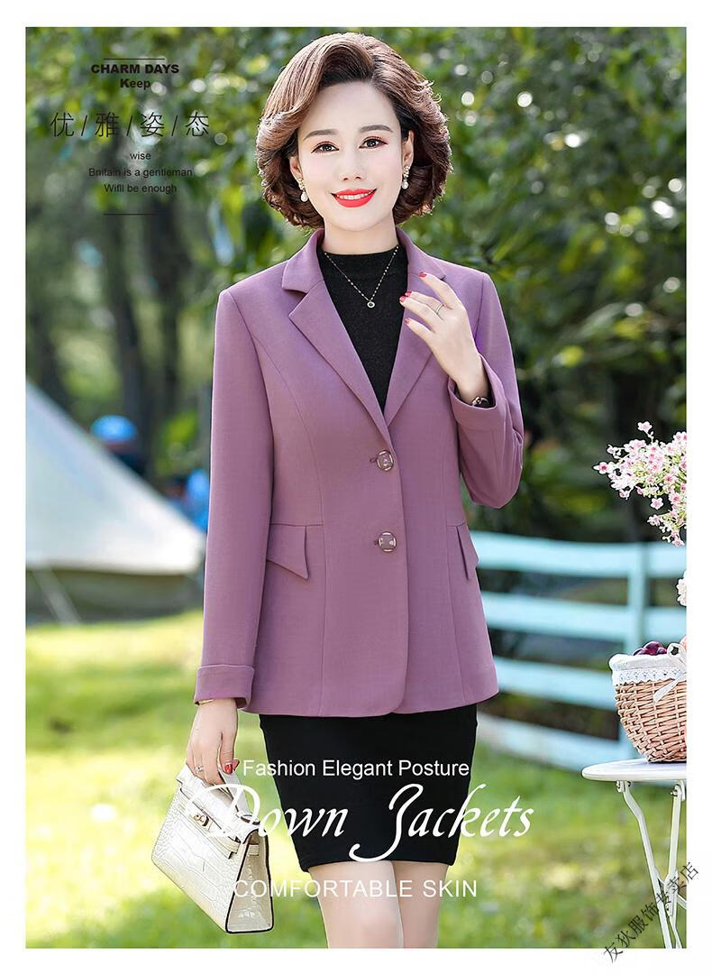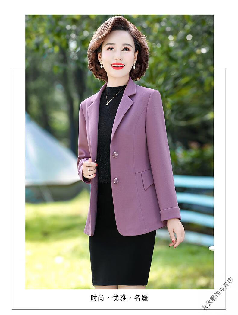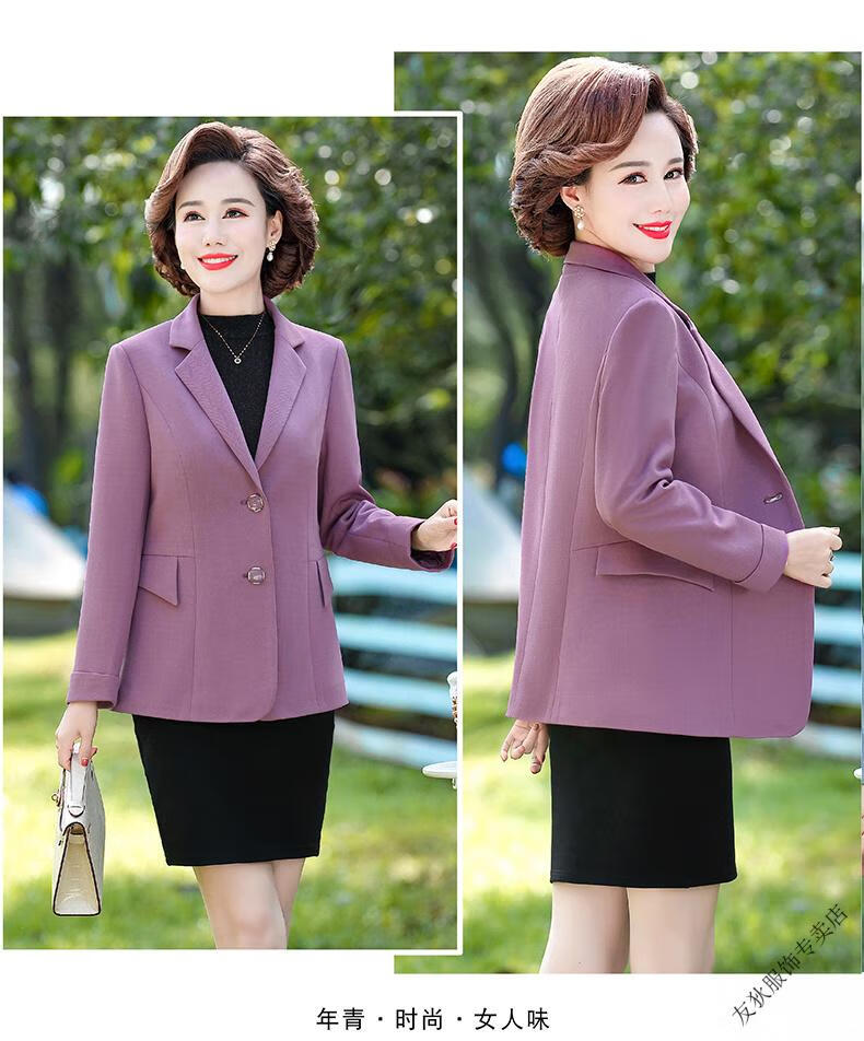 Sorrynam mother spring and autumn coat new fashion casual suit foreign style short middle-aged and elderly women's versatile small suit top purple casual suit jacket 2817 XL recommended 90-105 Jin Jin equals 0.5 kg