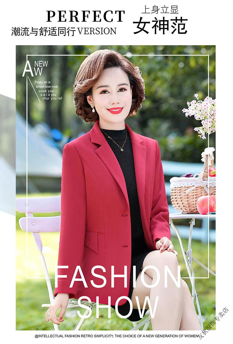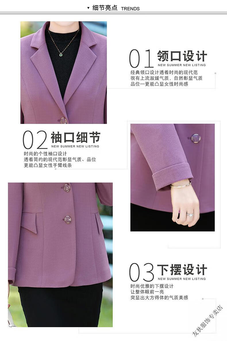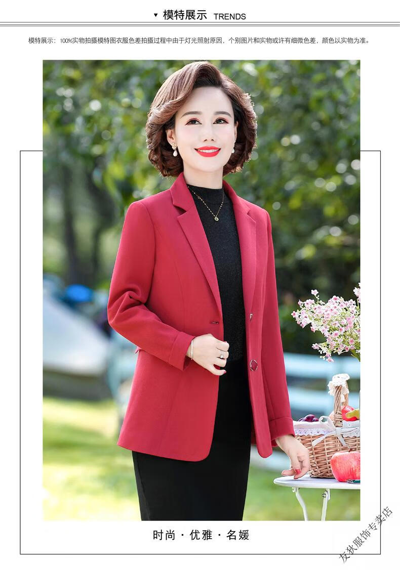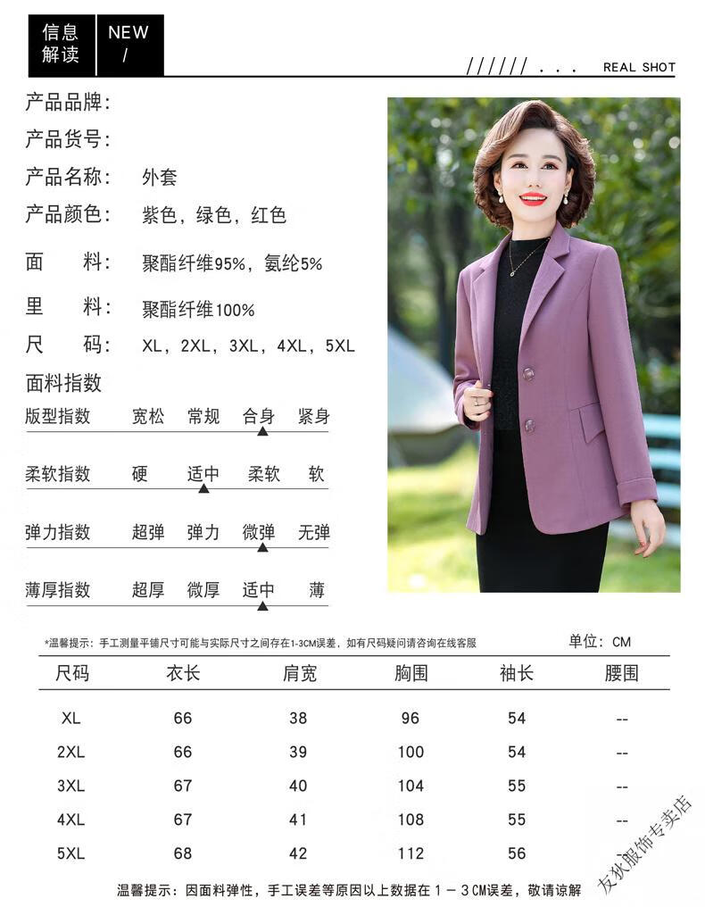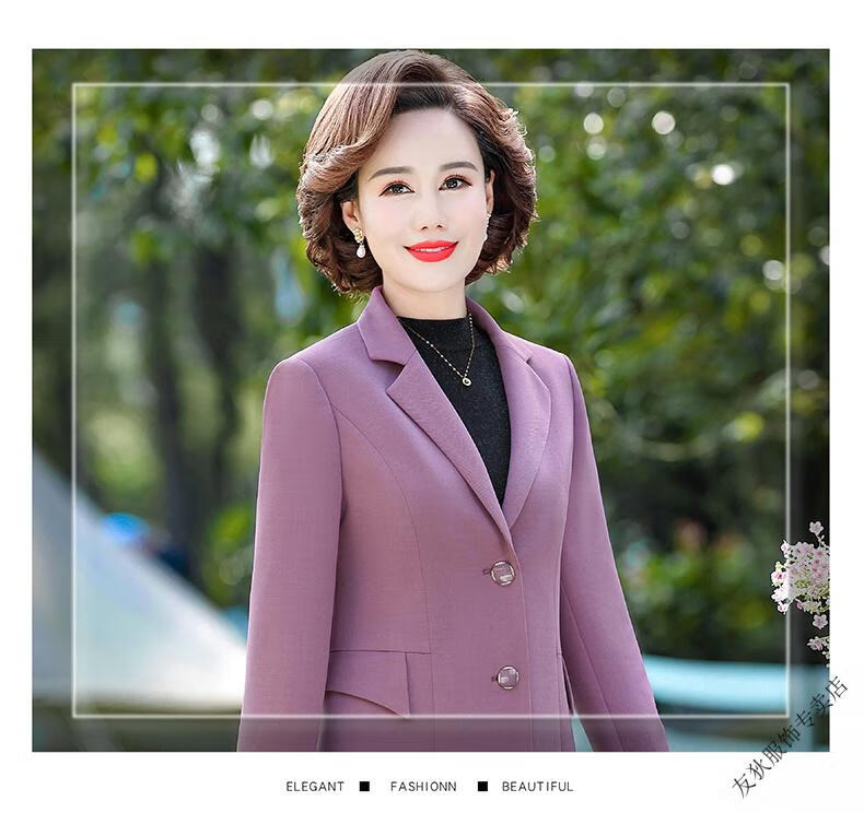 Sorrynam mother spring and autumn coat new fashion casual suit foreign style short middle-aged and elderly women's versatile small suit top purple casual suit jacket 2817 XL recommended 90-105 Jin Jin equals 0.5 kg