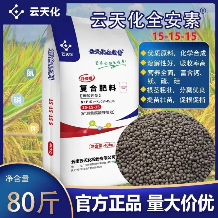 Yuntianhua Yuntianhua potassium sulfate type compound fertilizer 15-15-15 is suitable for all kinds of vegetables, fruits, trees, etc. Genuine 3Jin Jin equals 0.5kg (packed in ziplock bags)