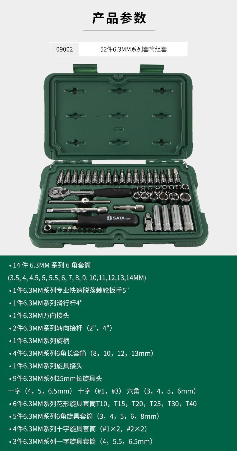 Shida 09002 tool 52-piece set 6.3mm Xiaofei tool box set car repair set 52-piece set/09002