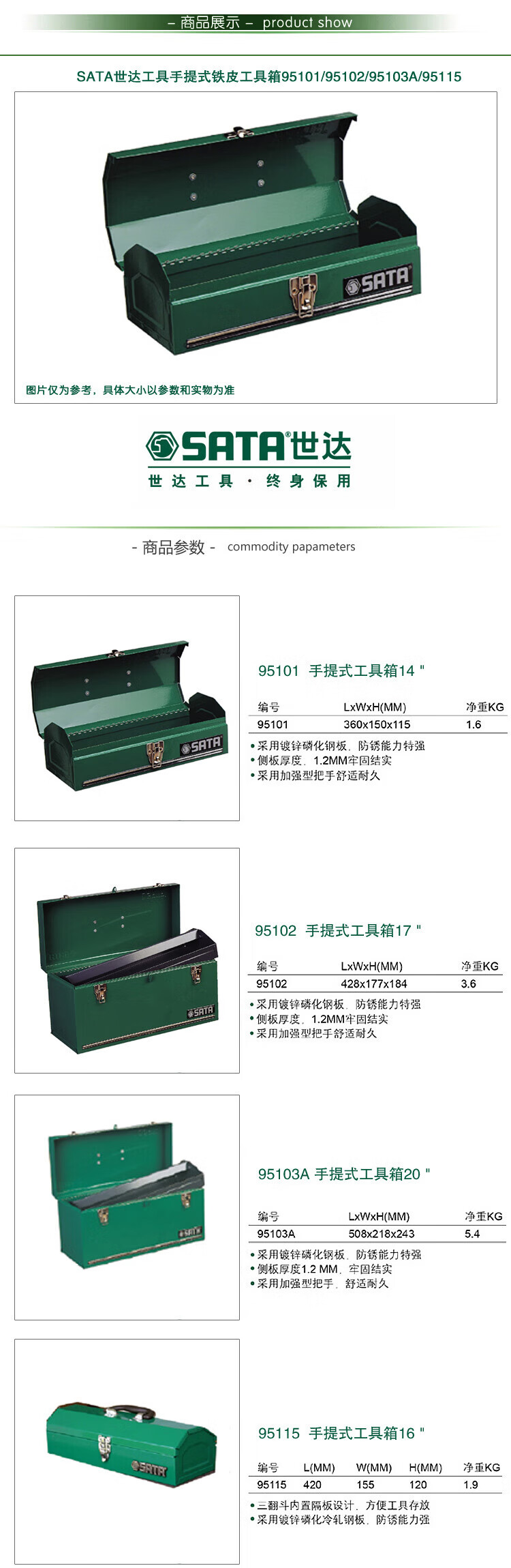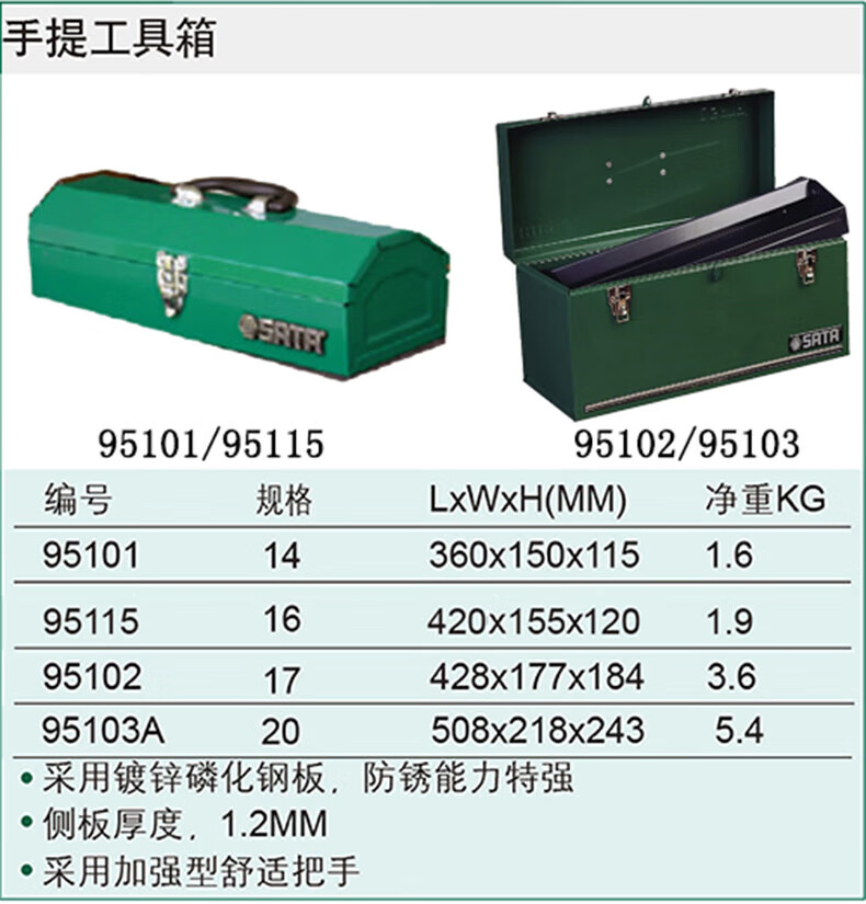 Shida 95101 95102 95115 95103A/14 inch-20 inch tool portable iron box household tool box 17 inch/95102