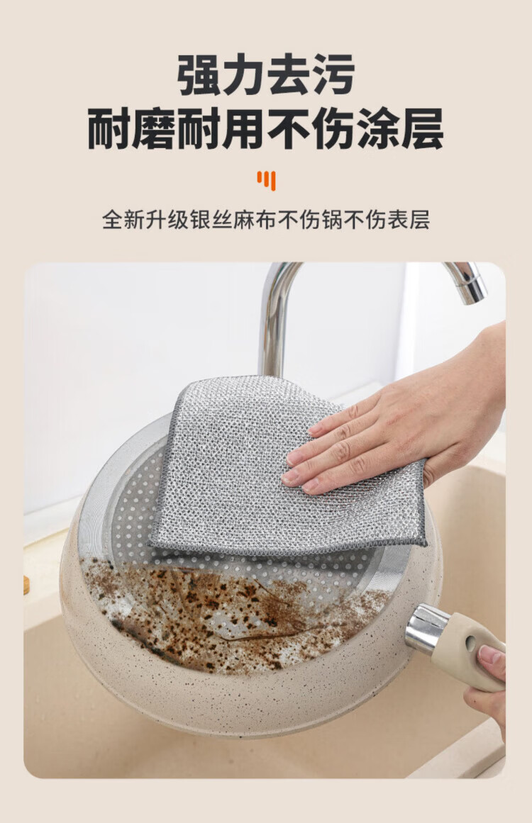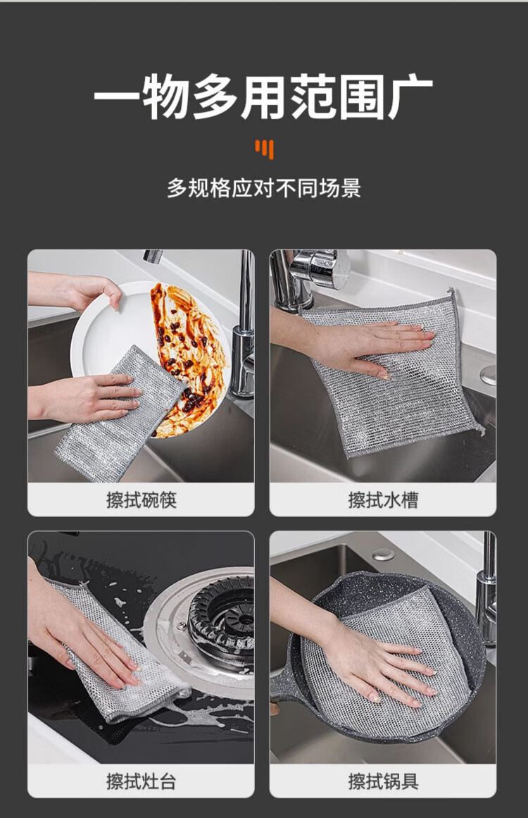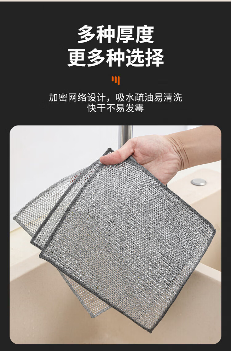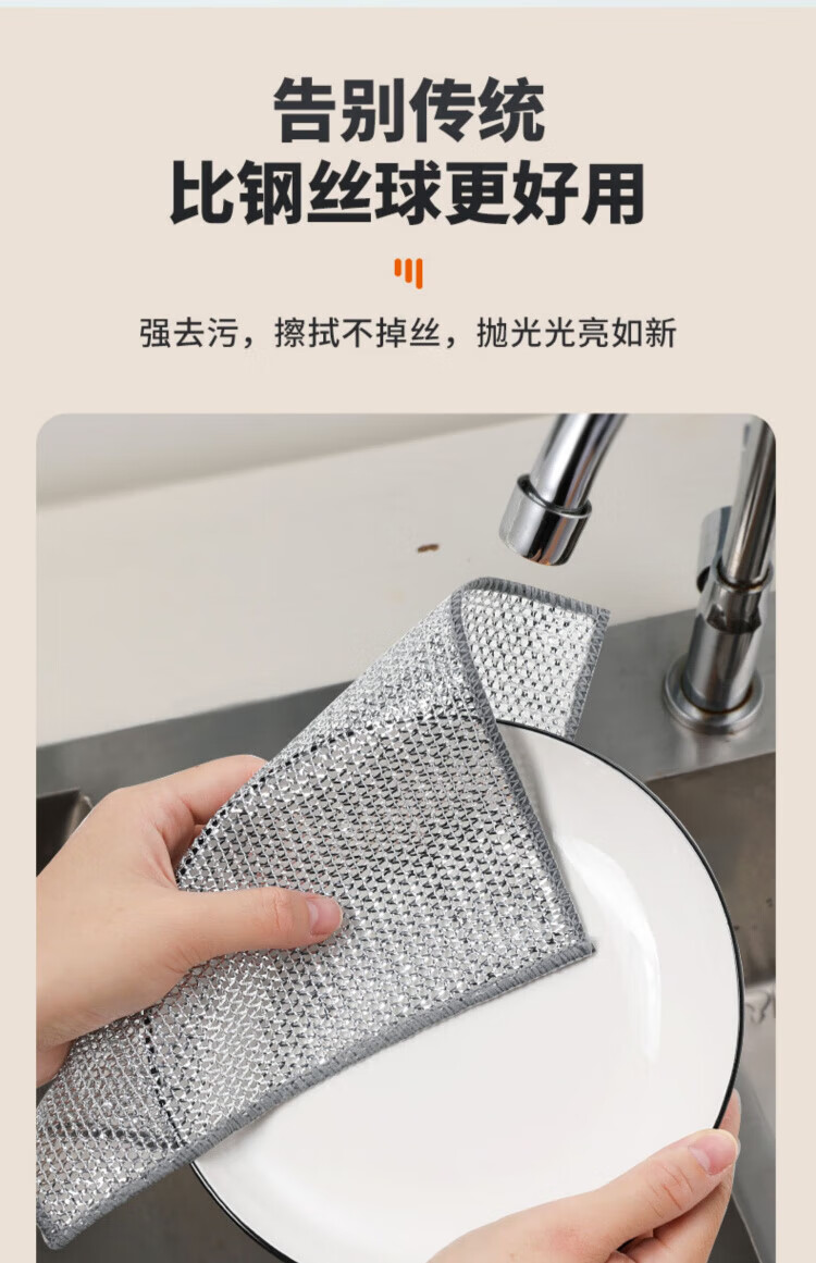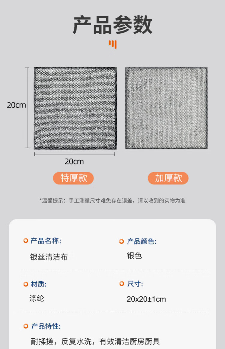 TYZAYR Japanese steel wire dishcloth, steel wire ball rag, kitchen special metal wire cleaning cloth, double-sided silver wire imitation steel, high quality thickened double layer, 20 pieces, 20*20cm