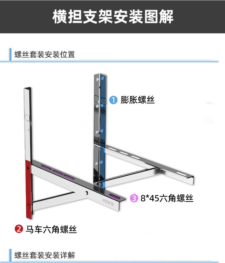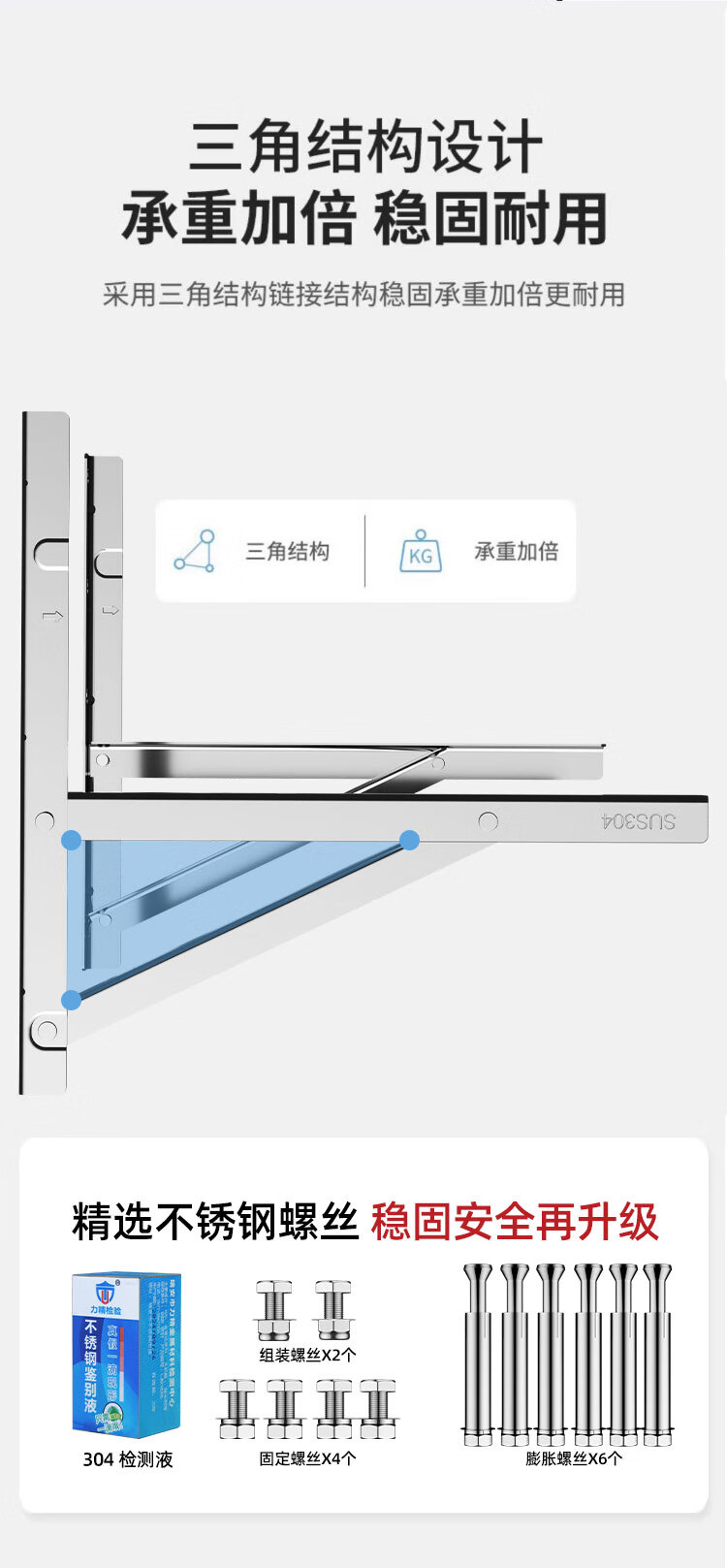Maiku Gree adapted air conditioner bracket thickened stainless steel air conditioner outdoor unit bracket reinforced air conditioner outdoor shelf air conditioner hanger 1-1.5-2-3P 1-1.5P flagship 304 air conditioner bracket-thickness 2MM-free accessories