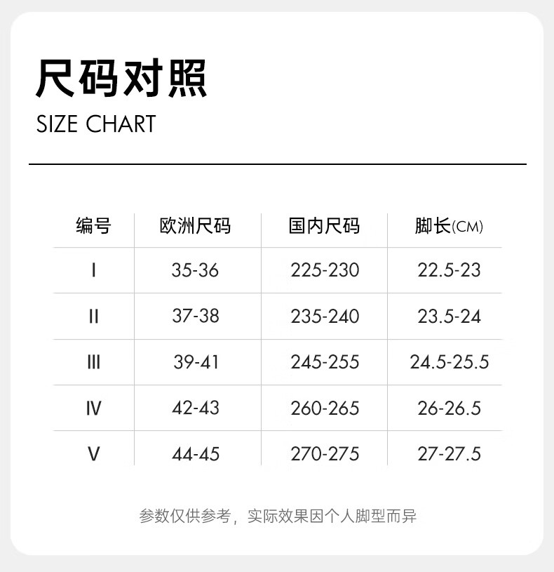 China (cm) 36 - 37 38 - 39 40 - 42 43 - 44 45 - 47