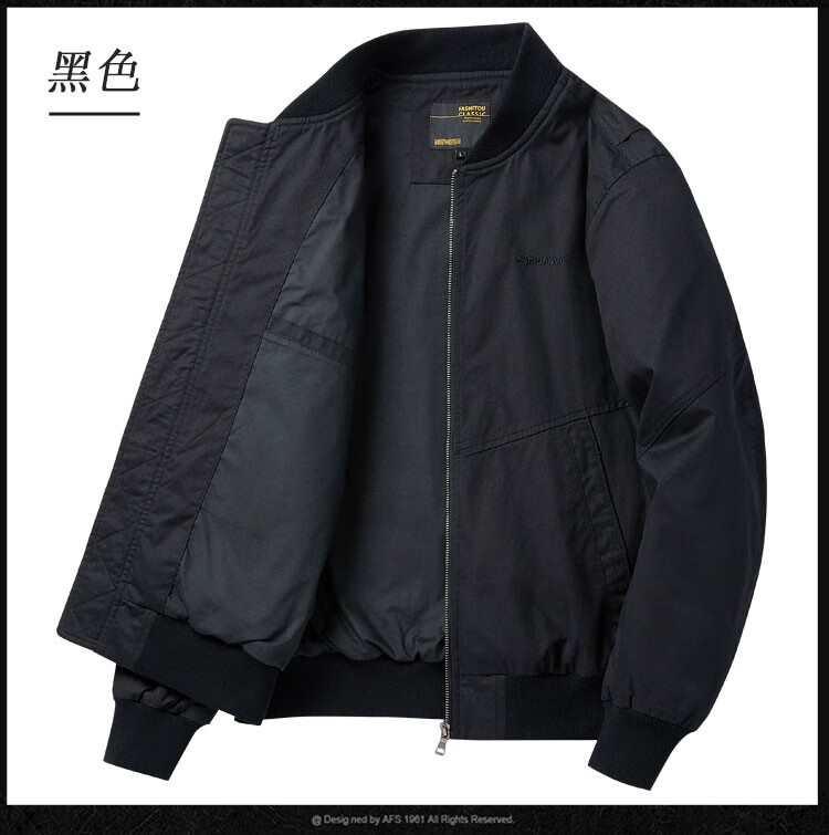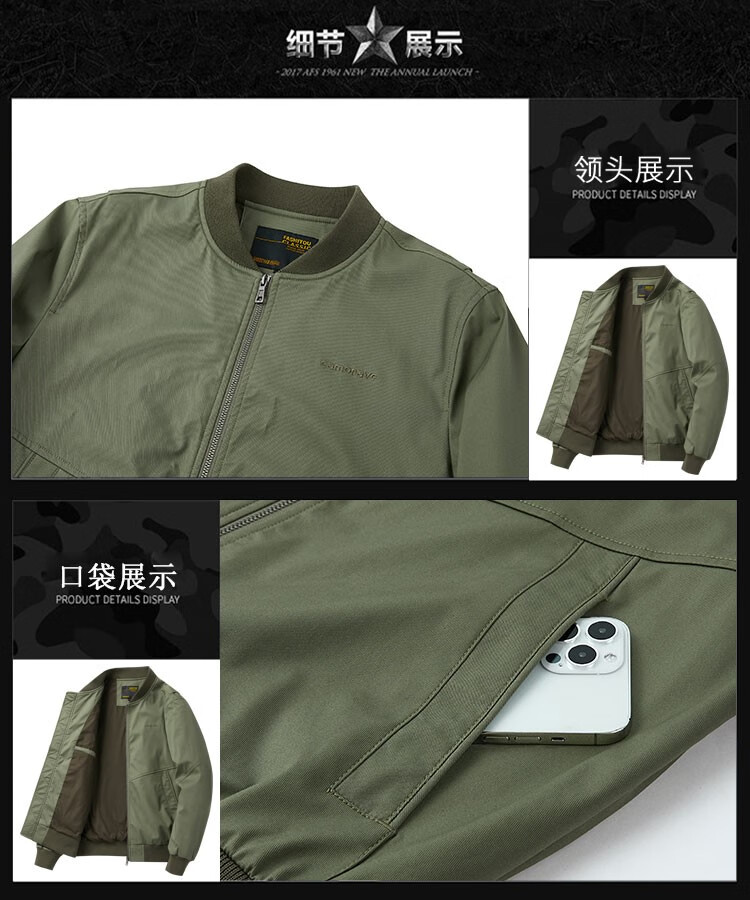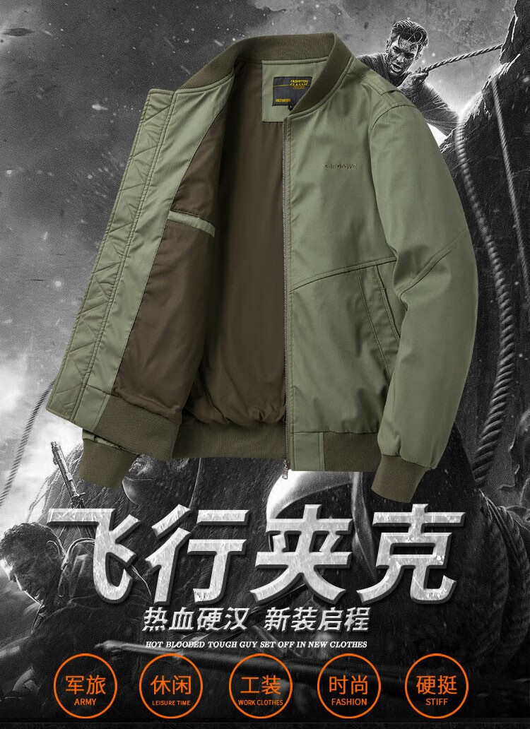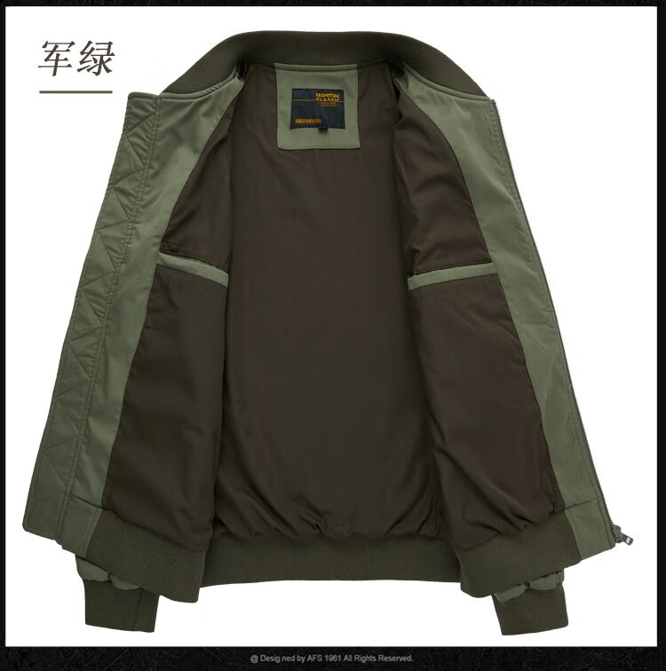 Luo Meng high-end bomber jacket men's jacket autumn and winter 2025 new work clothes cotton thickened men's baseball uniform military green regular style 8019 L 125-140Jin Jin equals 0.5 kg