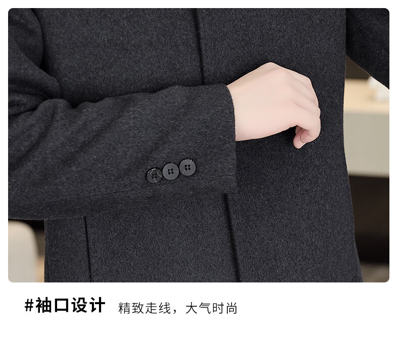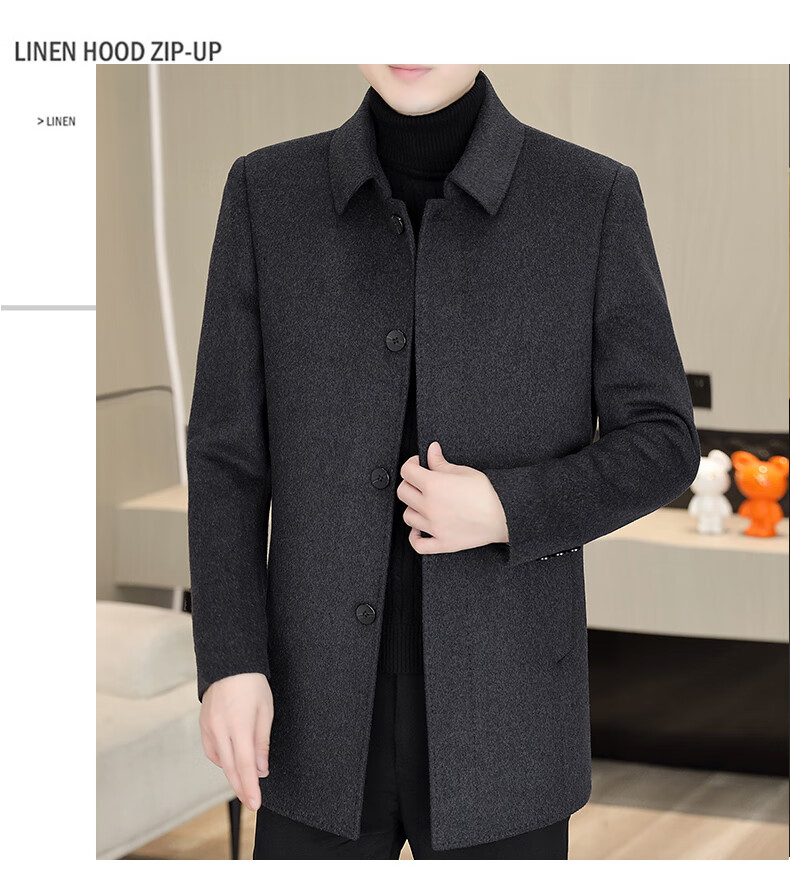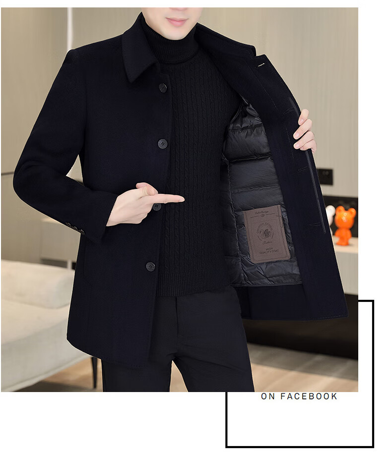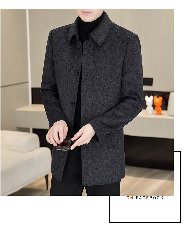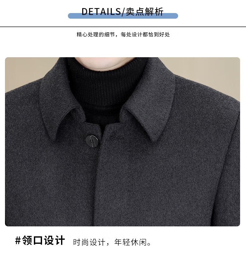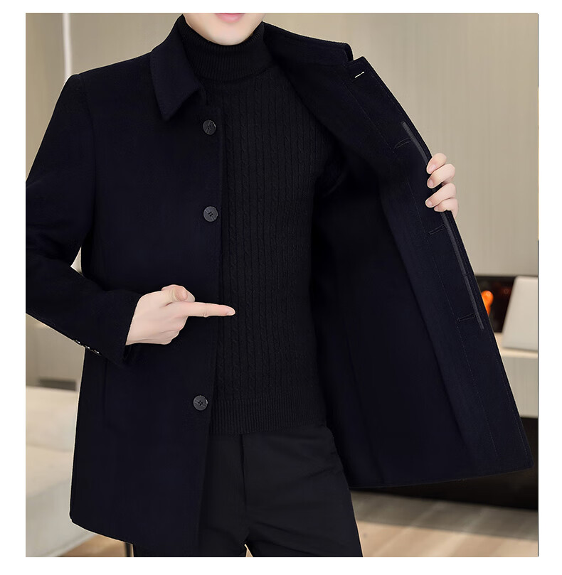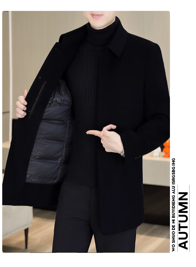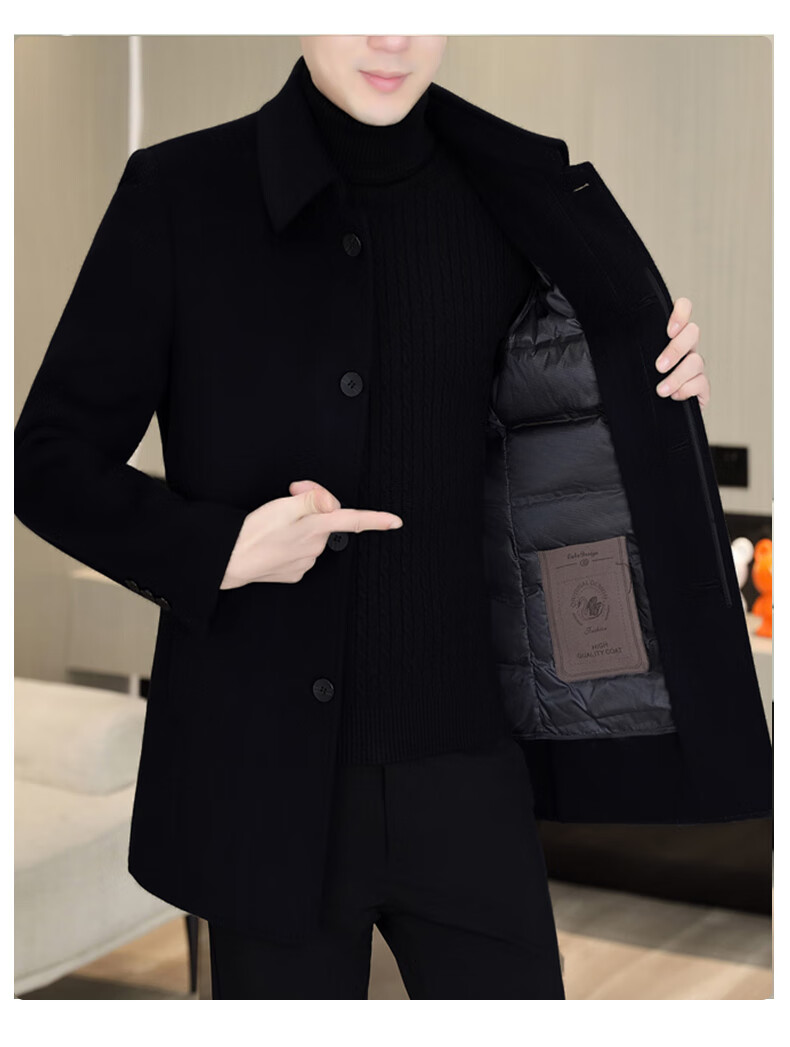 Pierre Cardin Wool Double-sided Wool Coat Men's Mid-Length Lapel Windbreaker Men's 2025 Winter Lined Jacket Black F11 (Double-sided Wool + Goose Down Lined) M Recommended 95-115 Jin Jin equals 0.5 kg