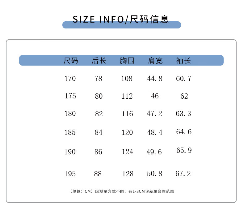 China (cm) 165 / 88-90 170 / 96-98 175 / 108-110 180 / 118-122 185 / 126-130